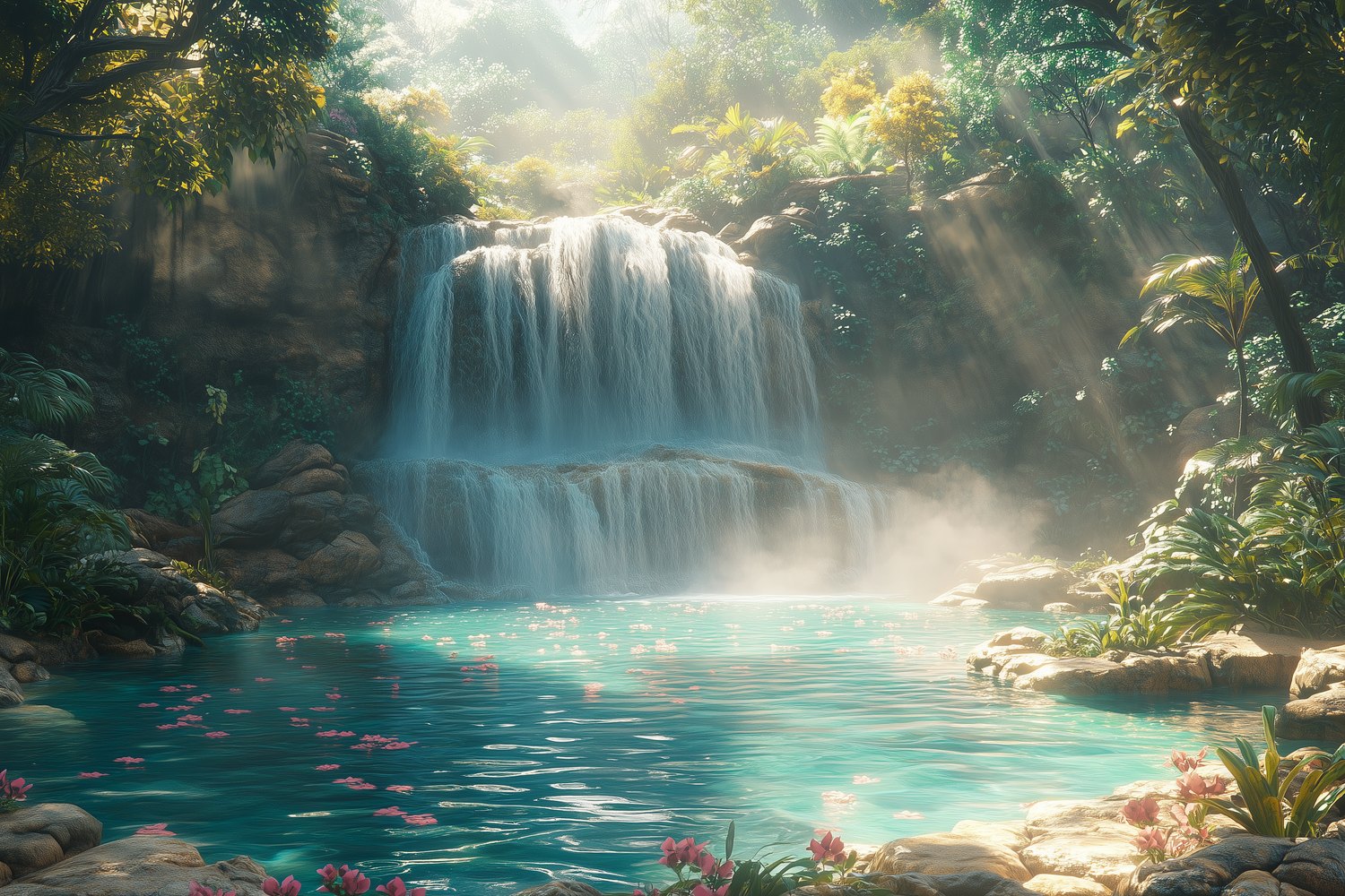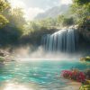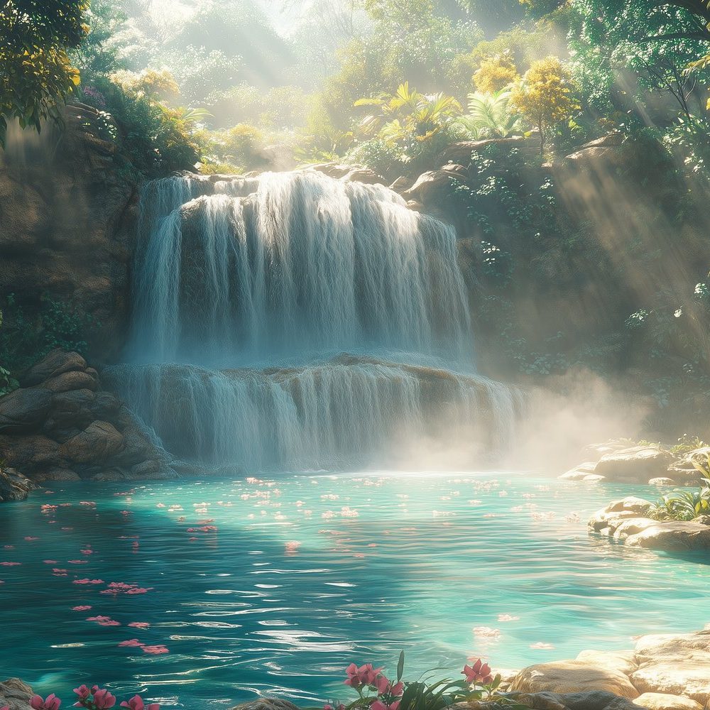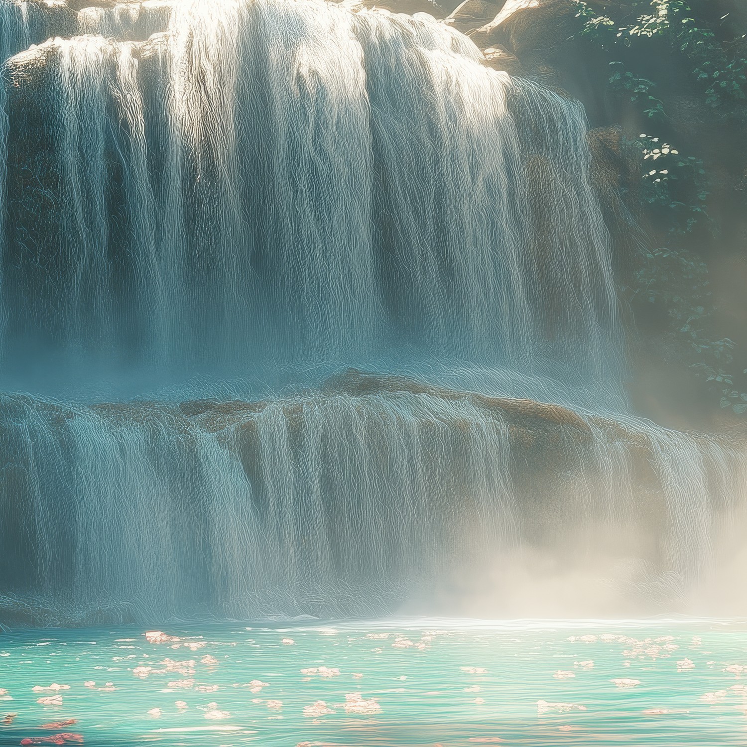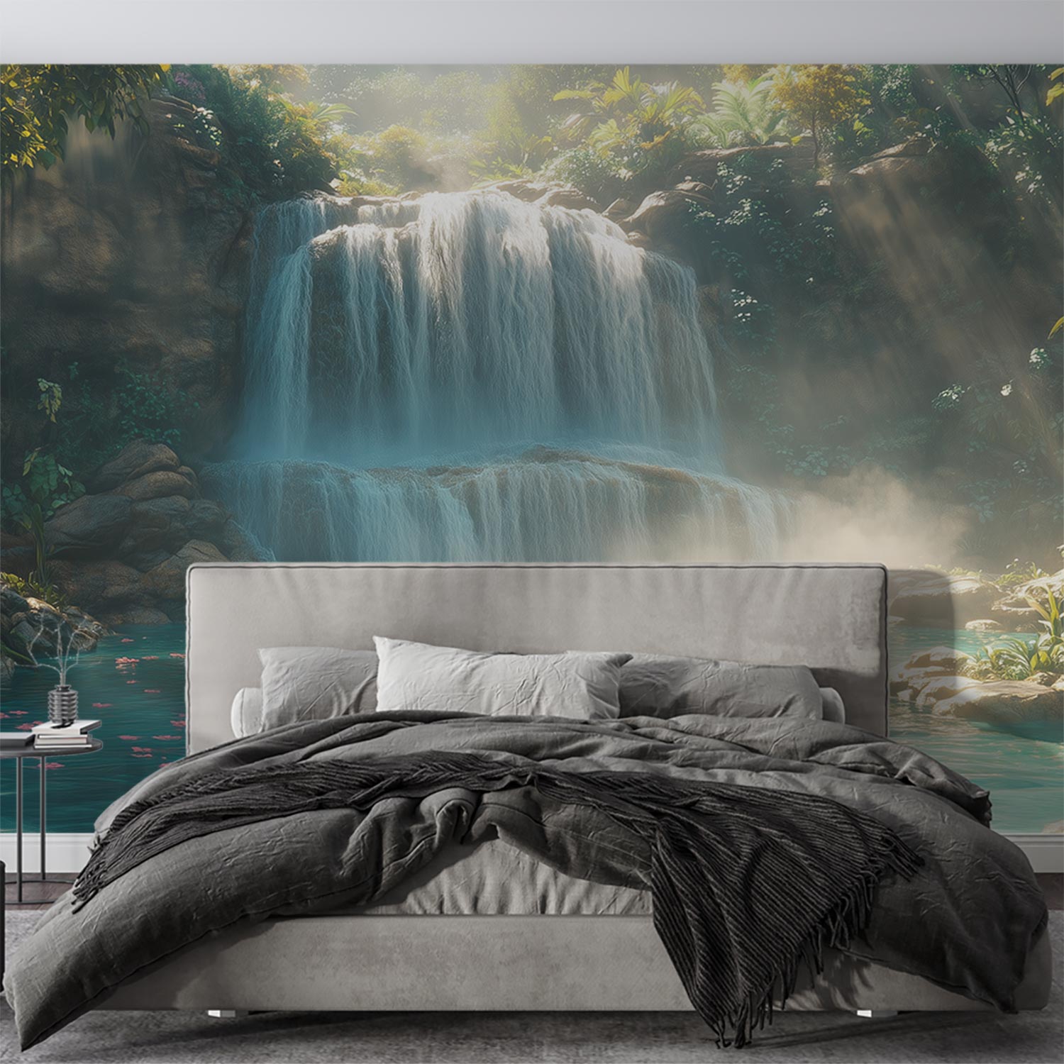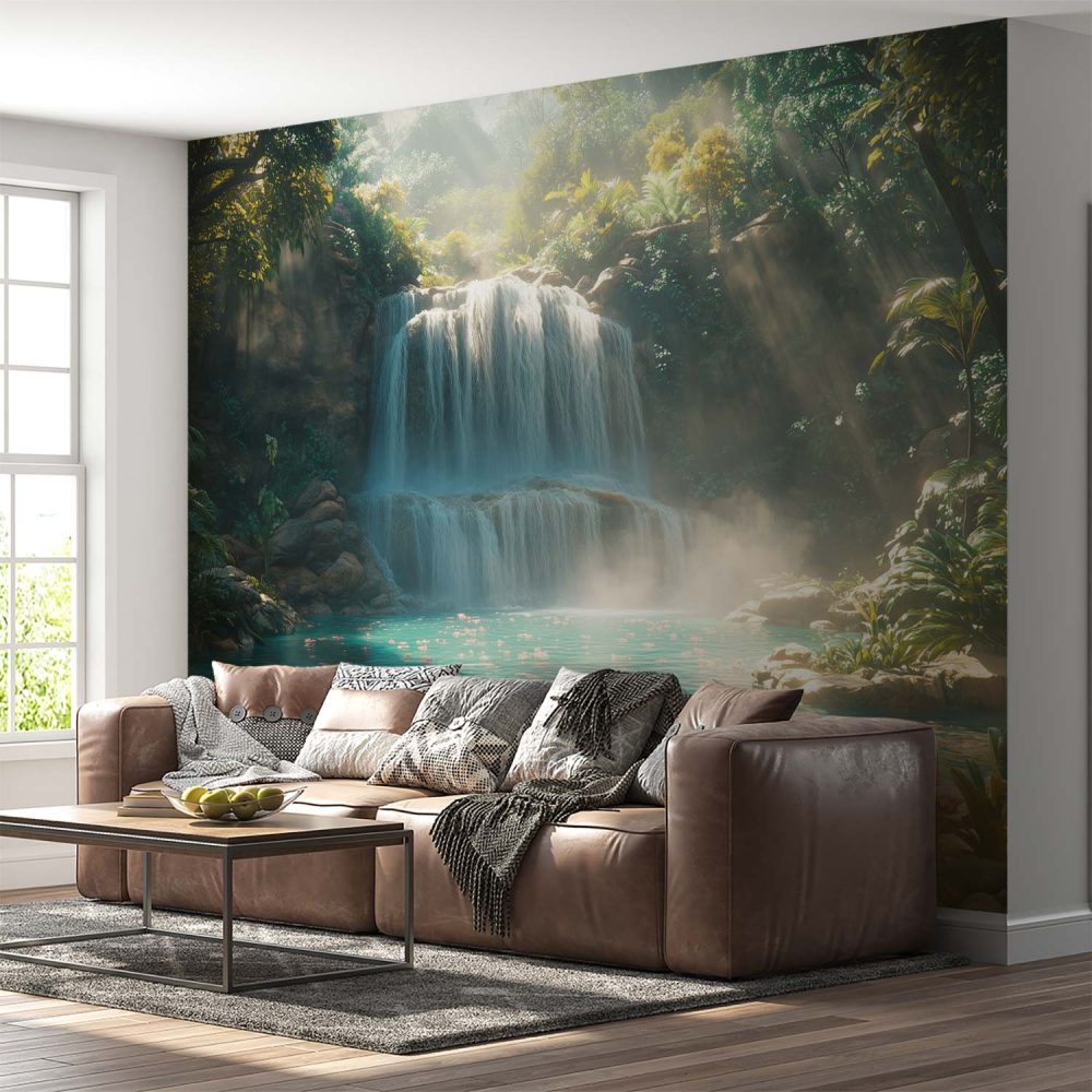 Mistige waterval in natuur behang