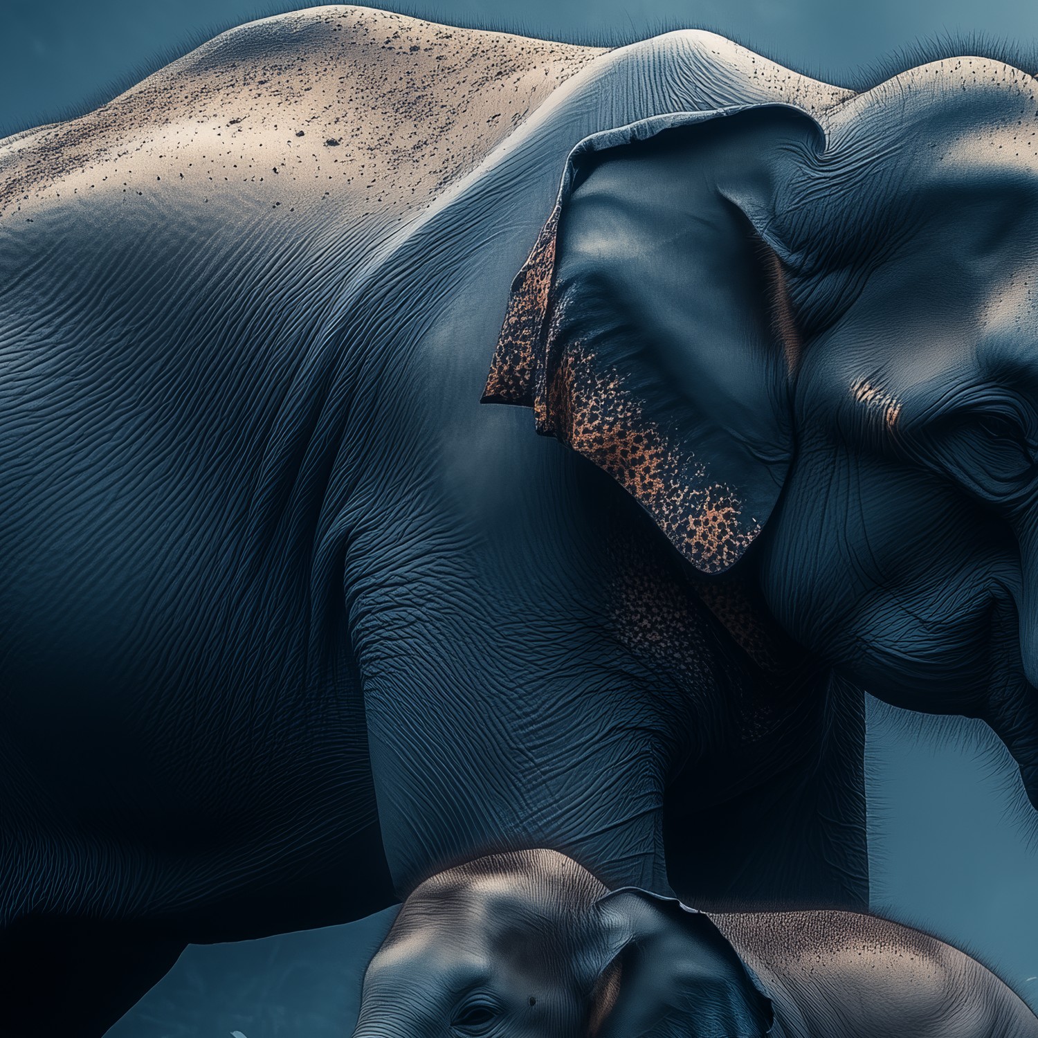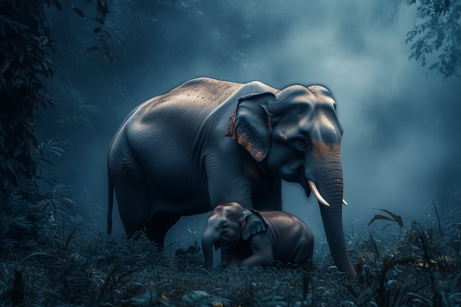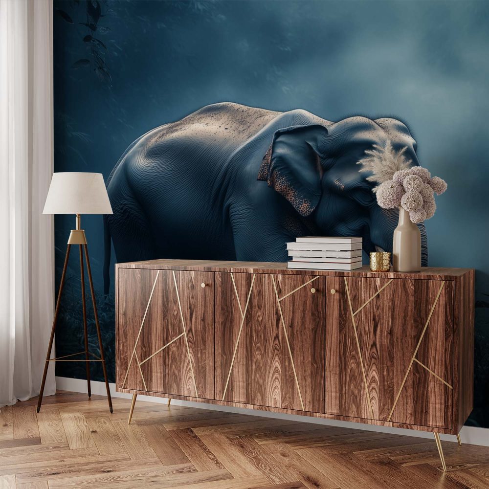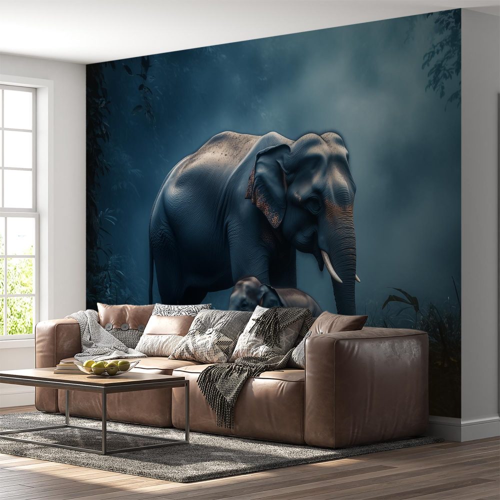 Moeder en baby olifantbos behang