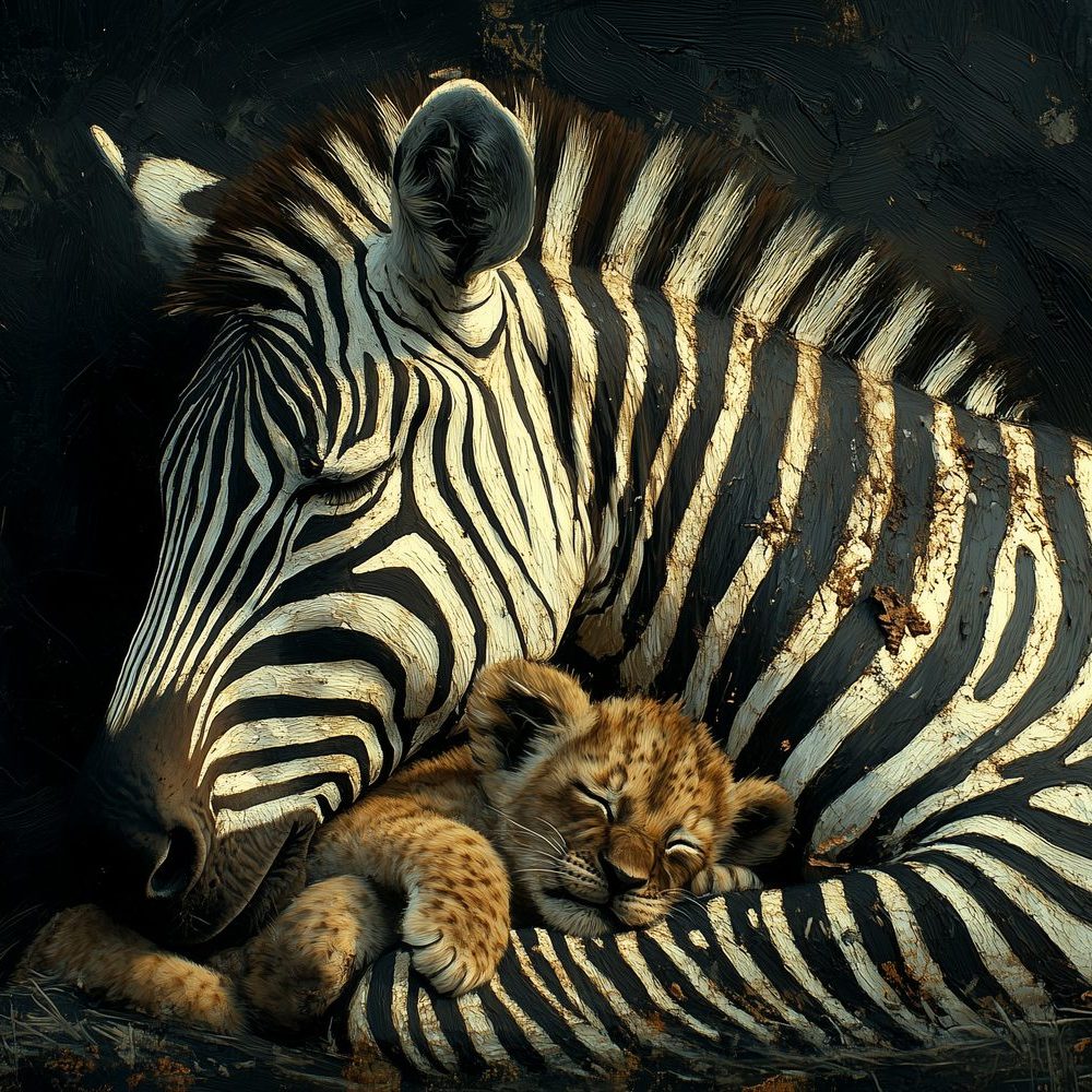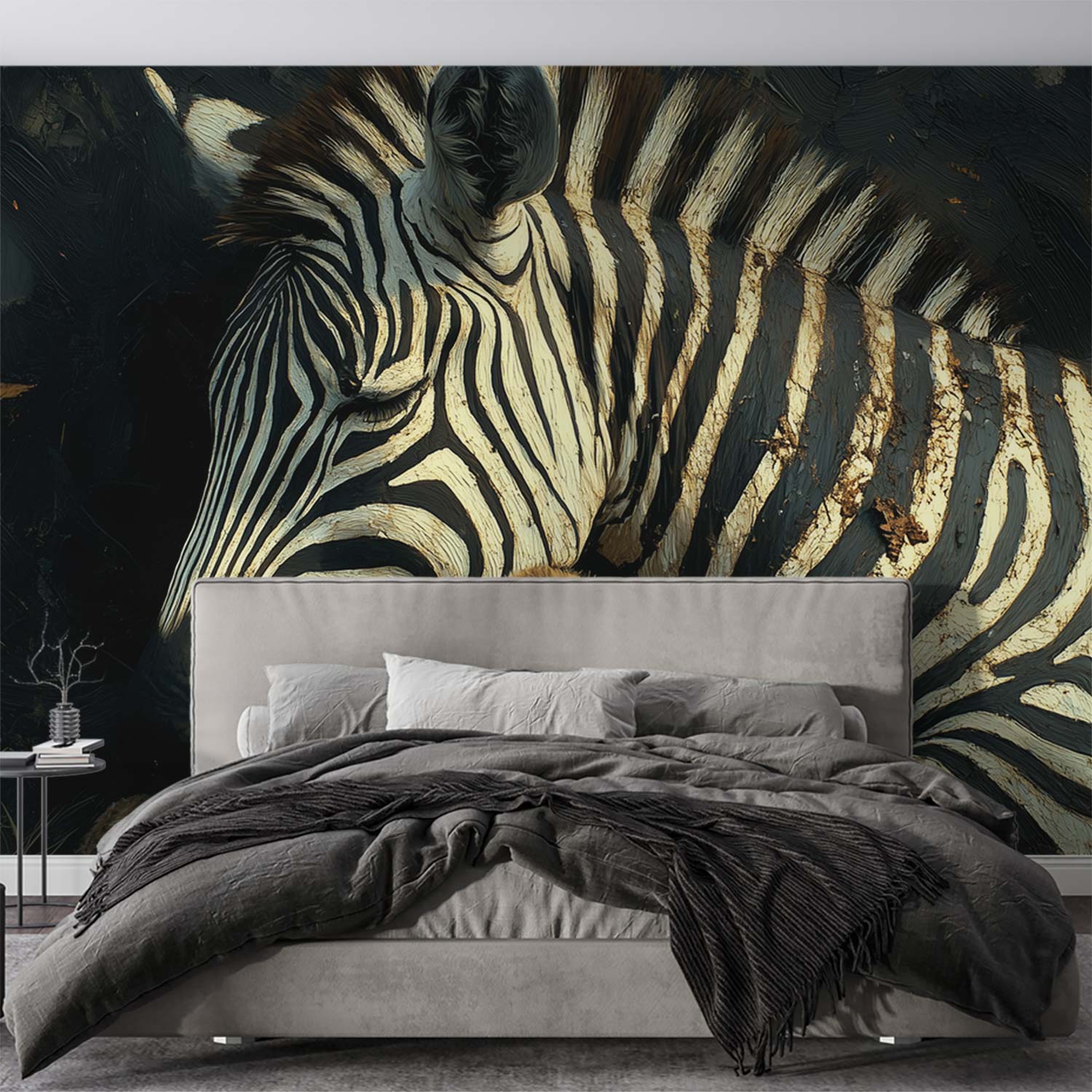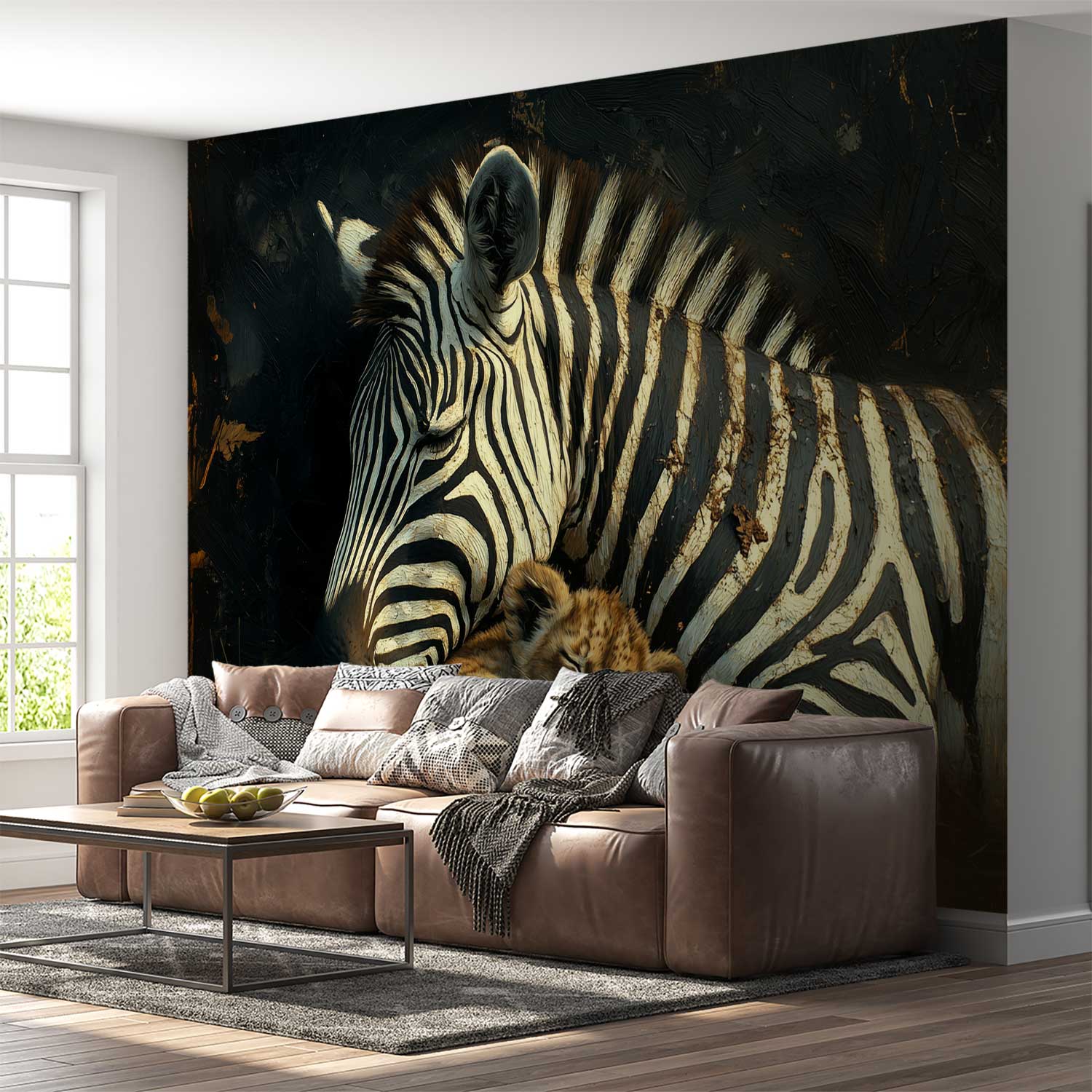 Terug naar collectie / Behang / Moeder en baby zebra behang