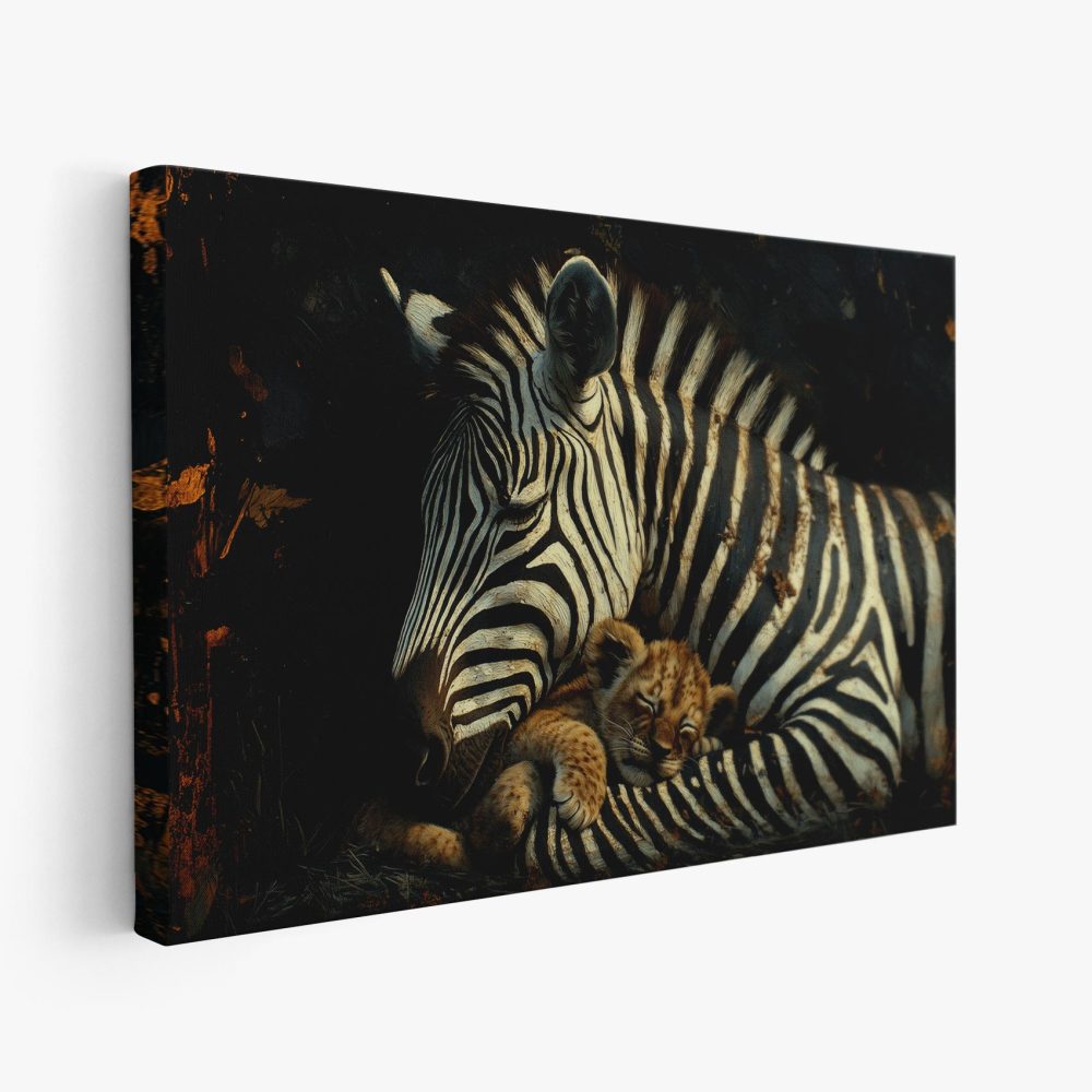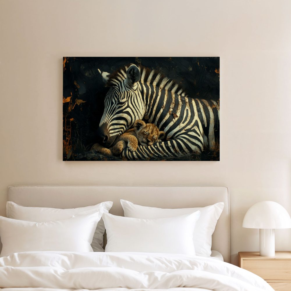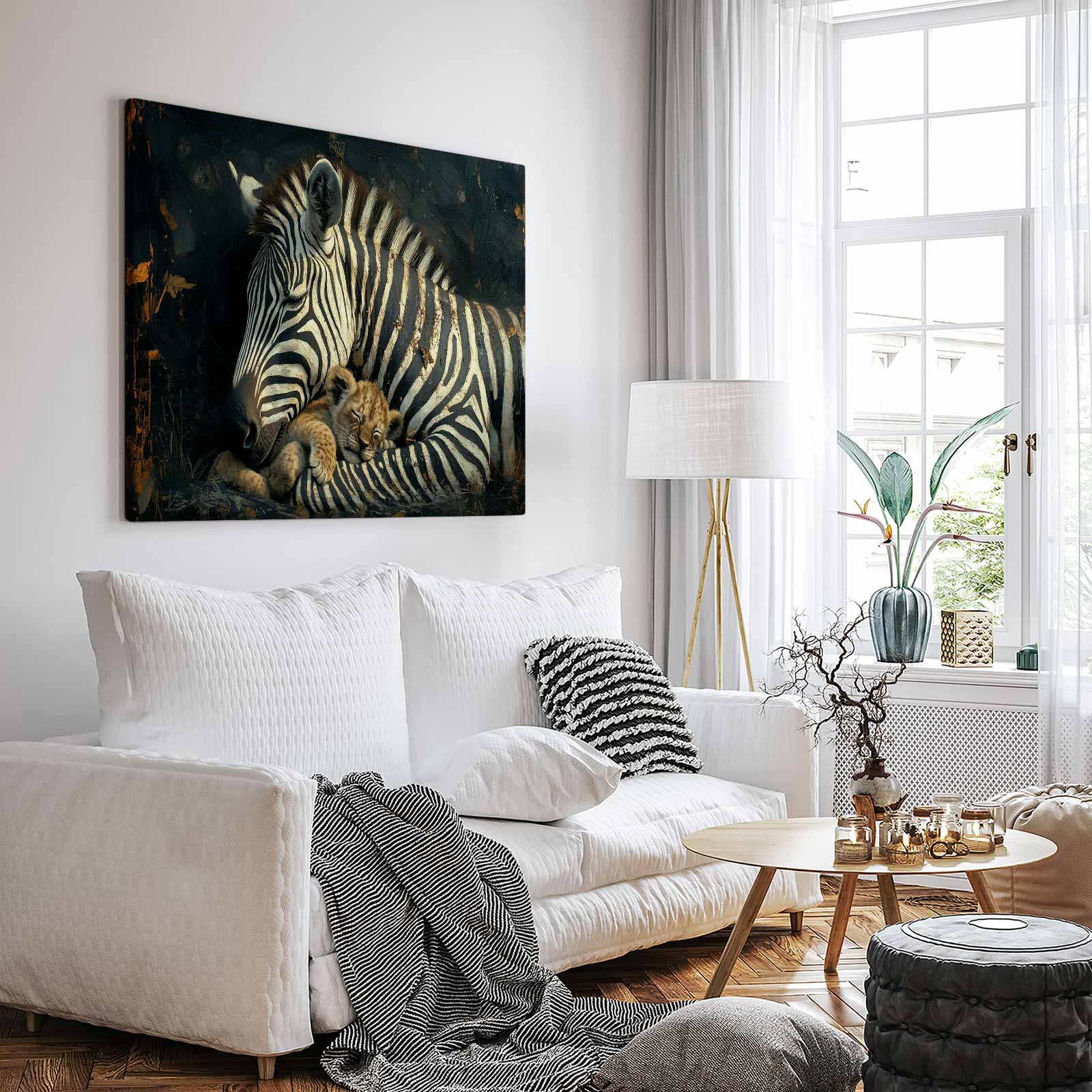 Terug naar collectie / Schilderijen / Dieren Schilderij / Moeder en baby zebra rusten