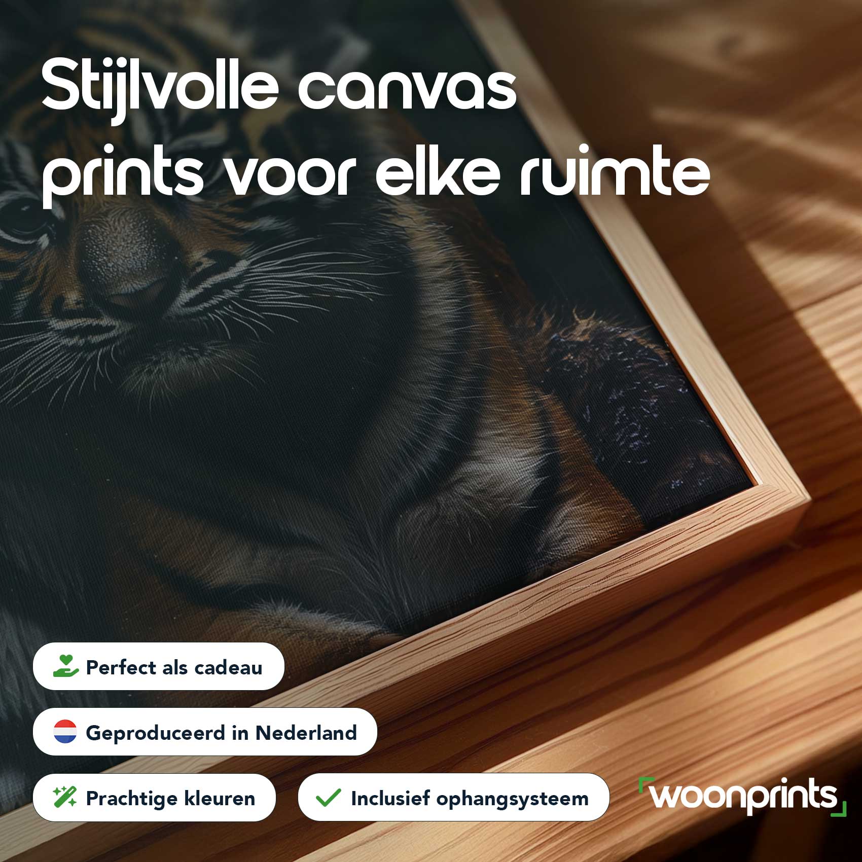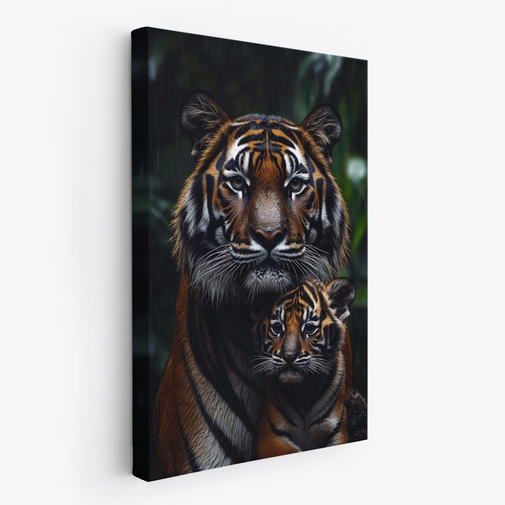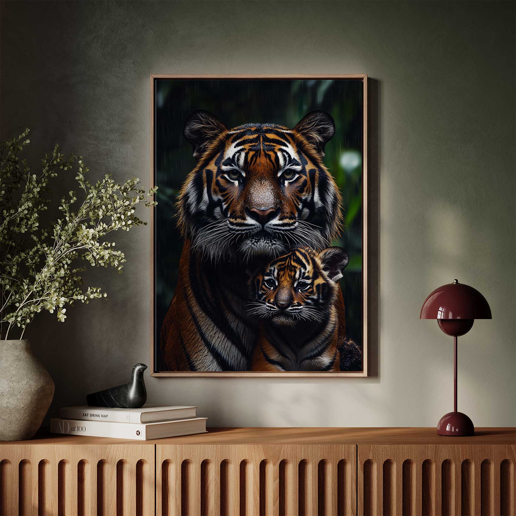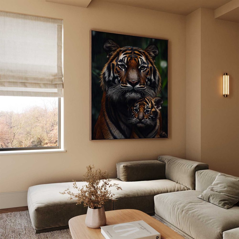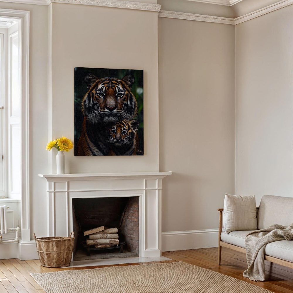 Terug naar collectie / Schilderijen / Bossen Schilderij / Moeder tijger beschermt welp