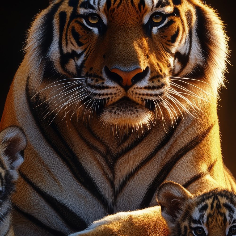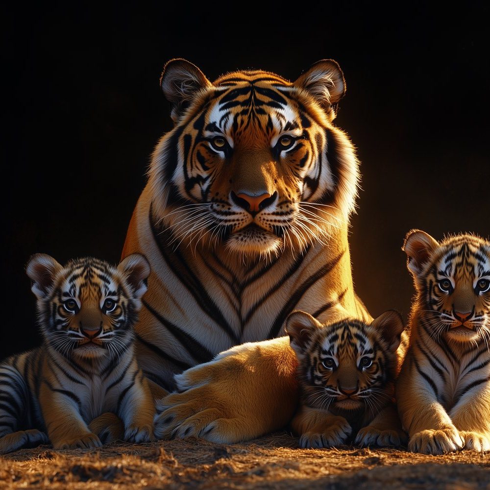 Terug naar collectie / Behang / Moeder tijger beschermt welpen behang