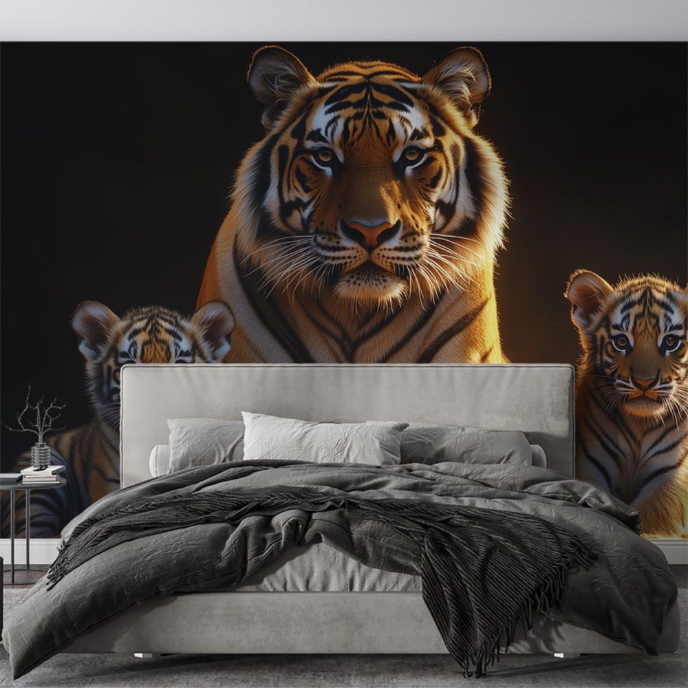 Moeder tijger beschermt welpen behang