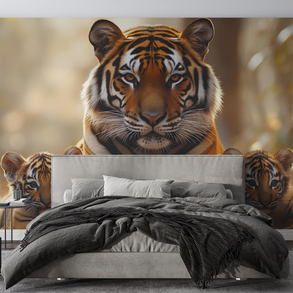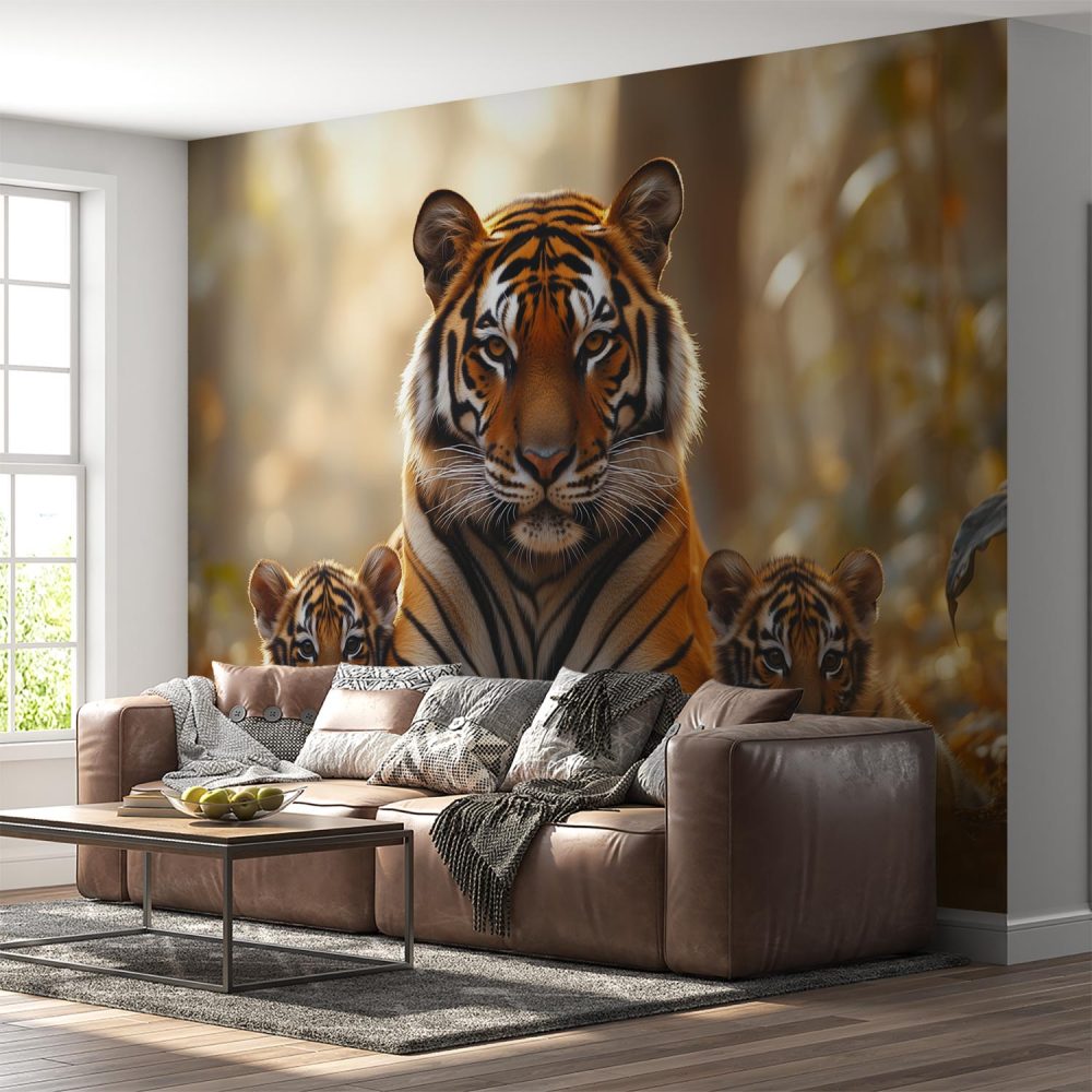 Moeder tijger met welpen behang