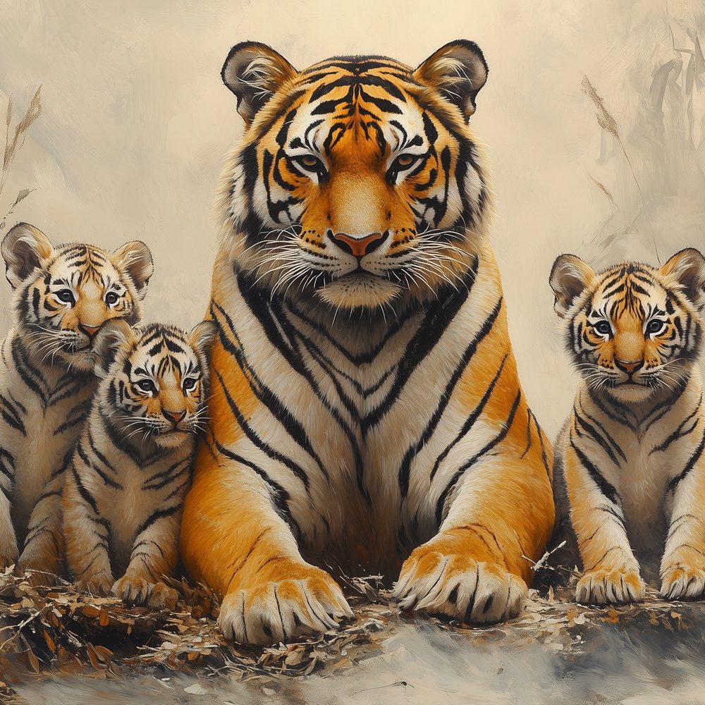 Moeder Tijger Met Welpen behang