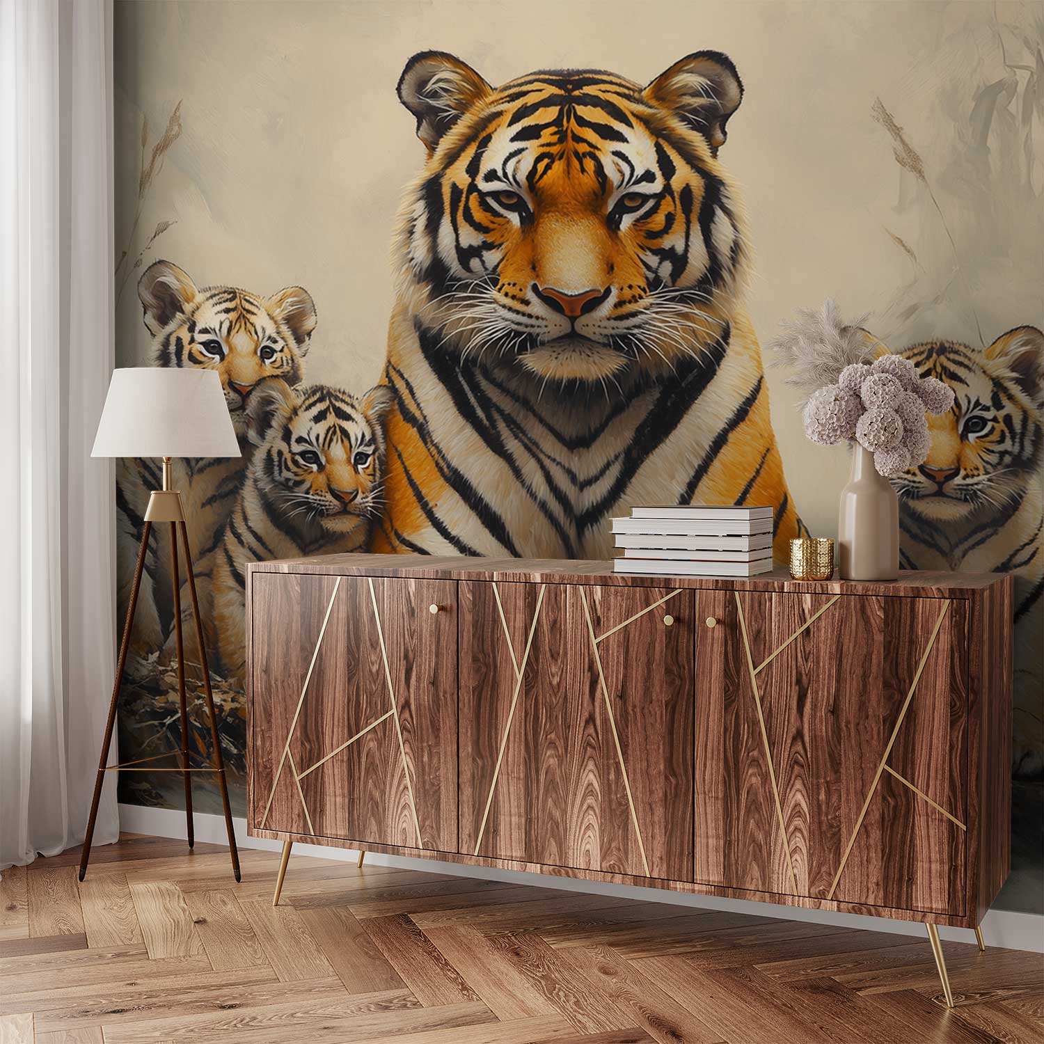 Terug naar collectie / Behang / Moeder Tijger Met Welpen behang