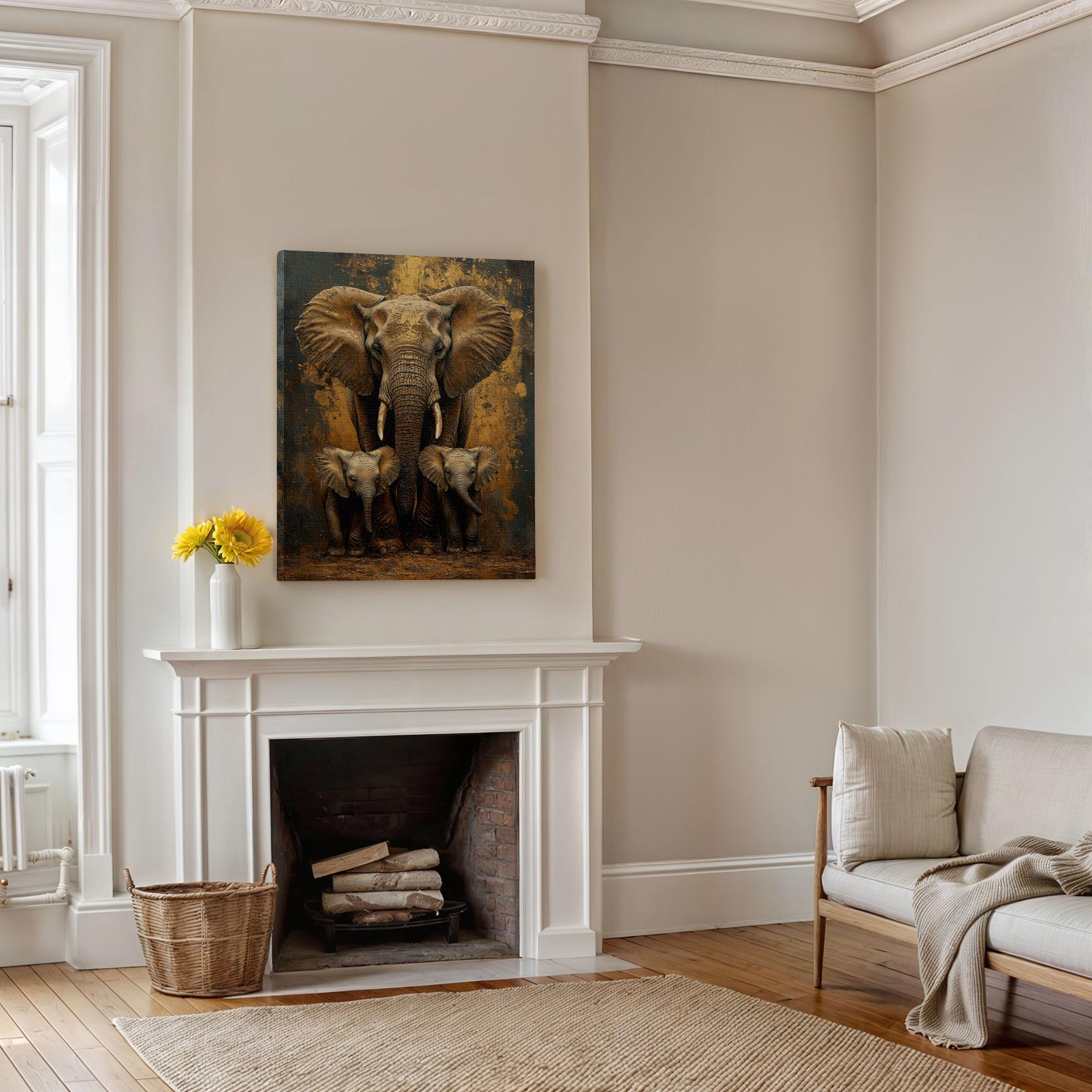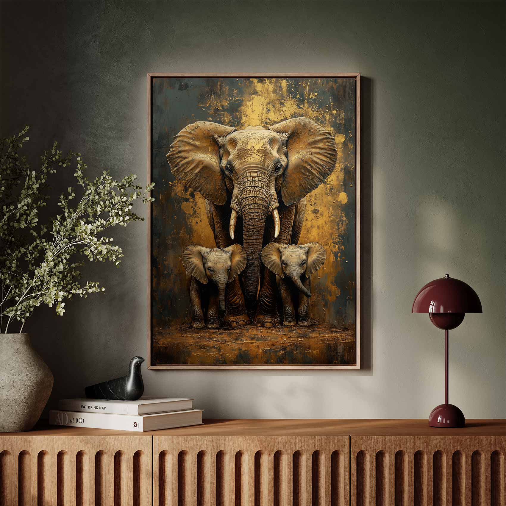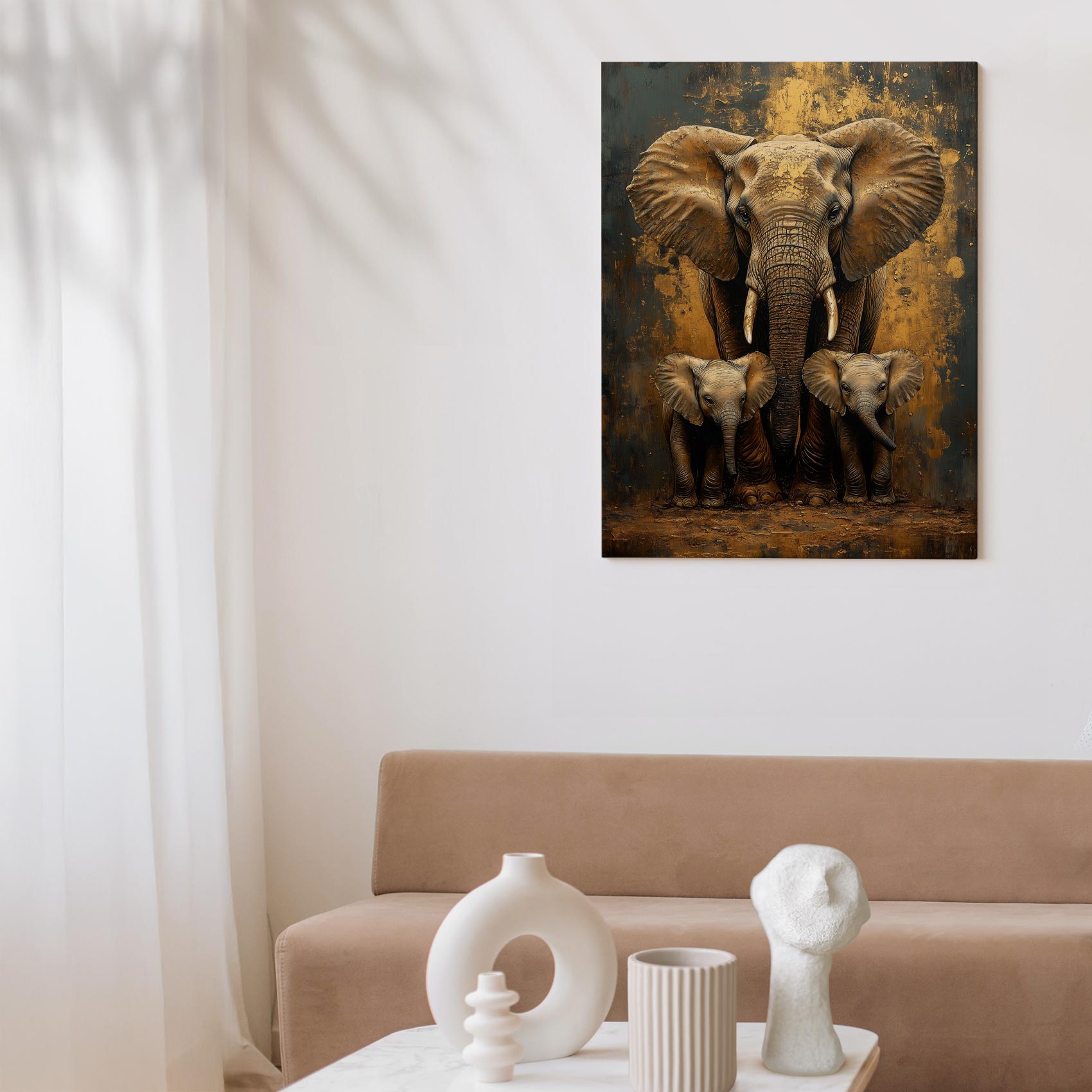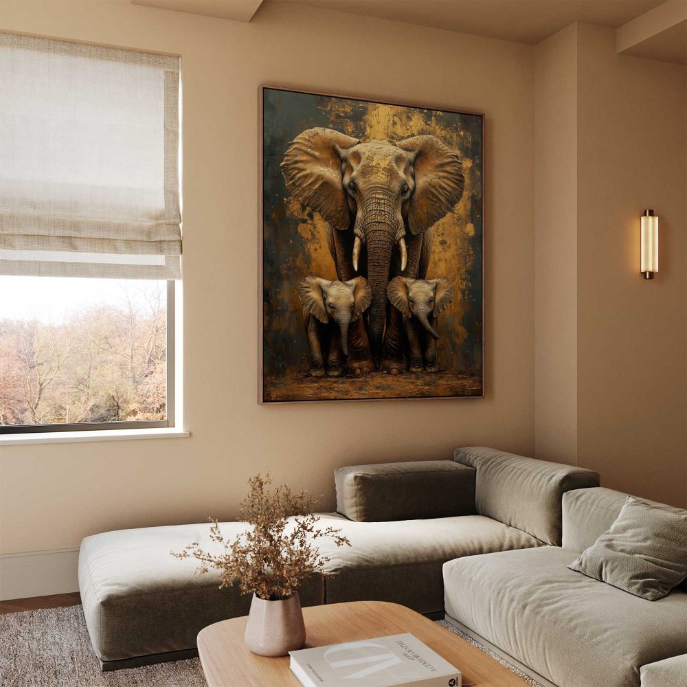 Terug naar collectie / Schilderijen / Dieren Schilderij / Moederolifant met kleintjes