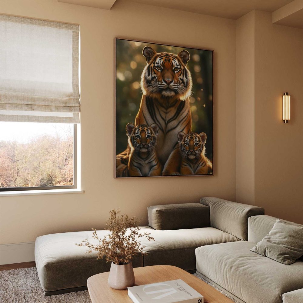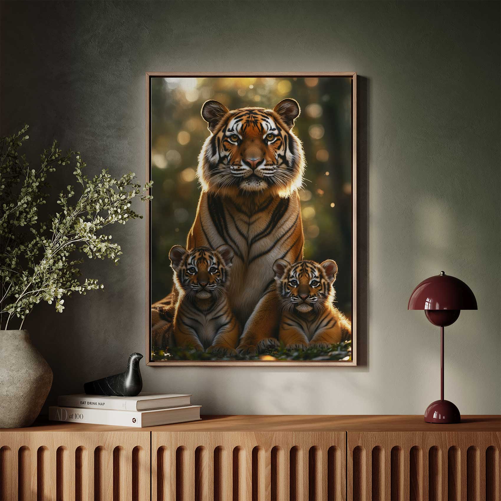 Terug naar collectie / Schilderijen / Bossen Schilderij / Moedertijger met welpjes