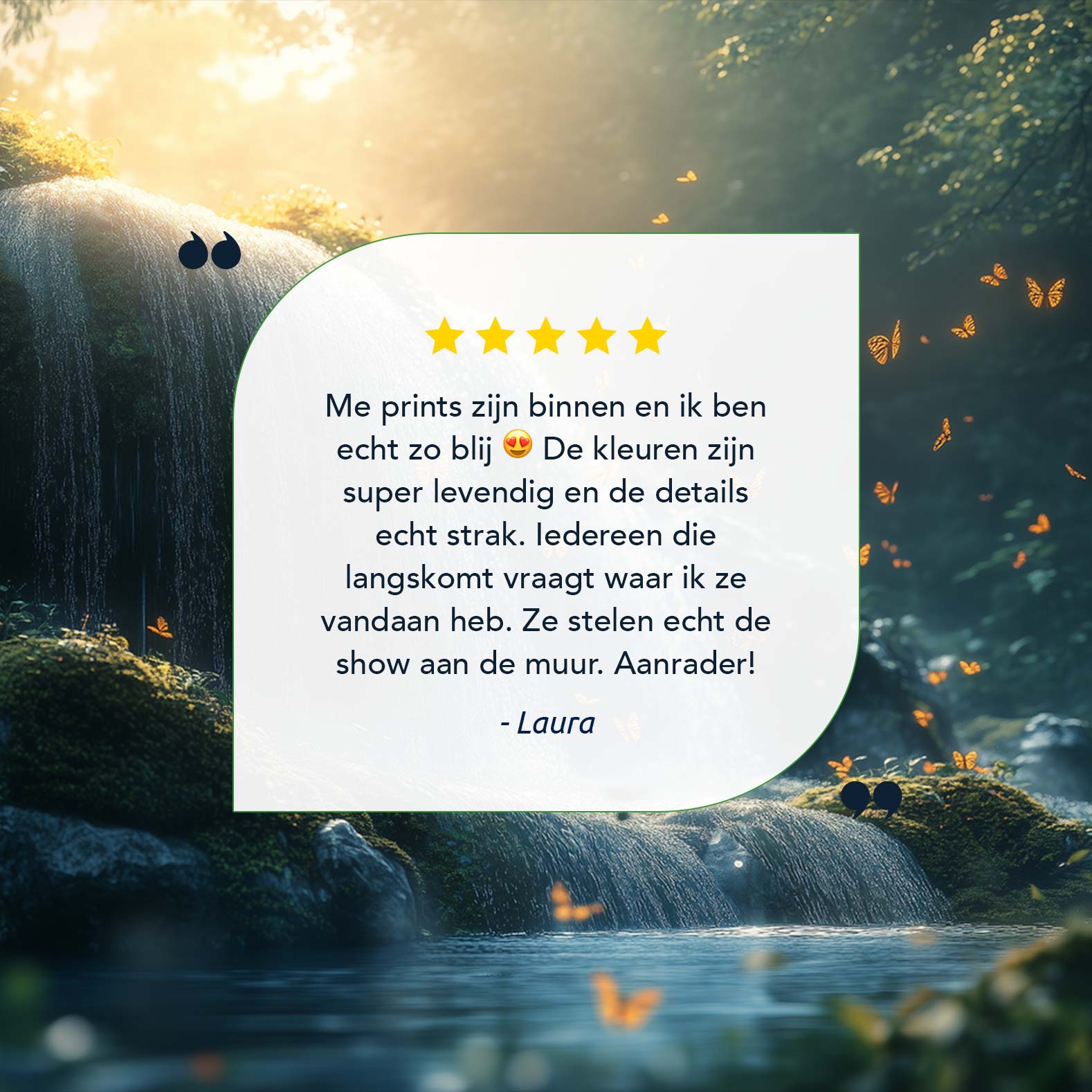 Mossige waterval met vlinders
