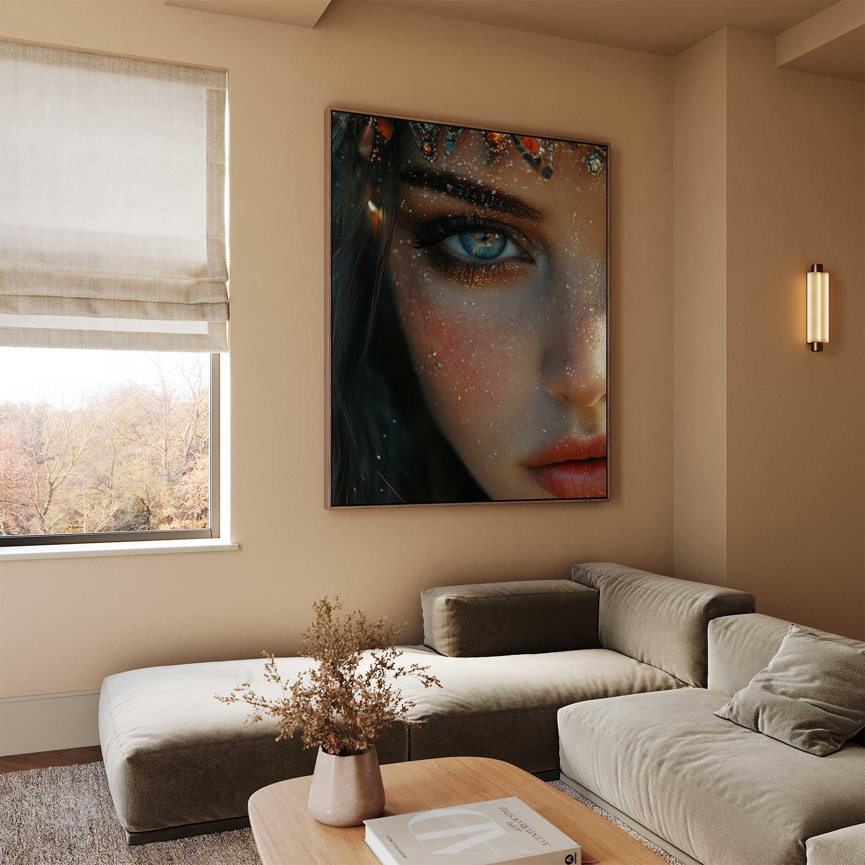 Terug naar collectie / Schilderijen / Exotisch Schilderij / Mysterieus sierhoofd vrouwenportret