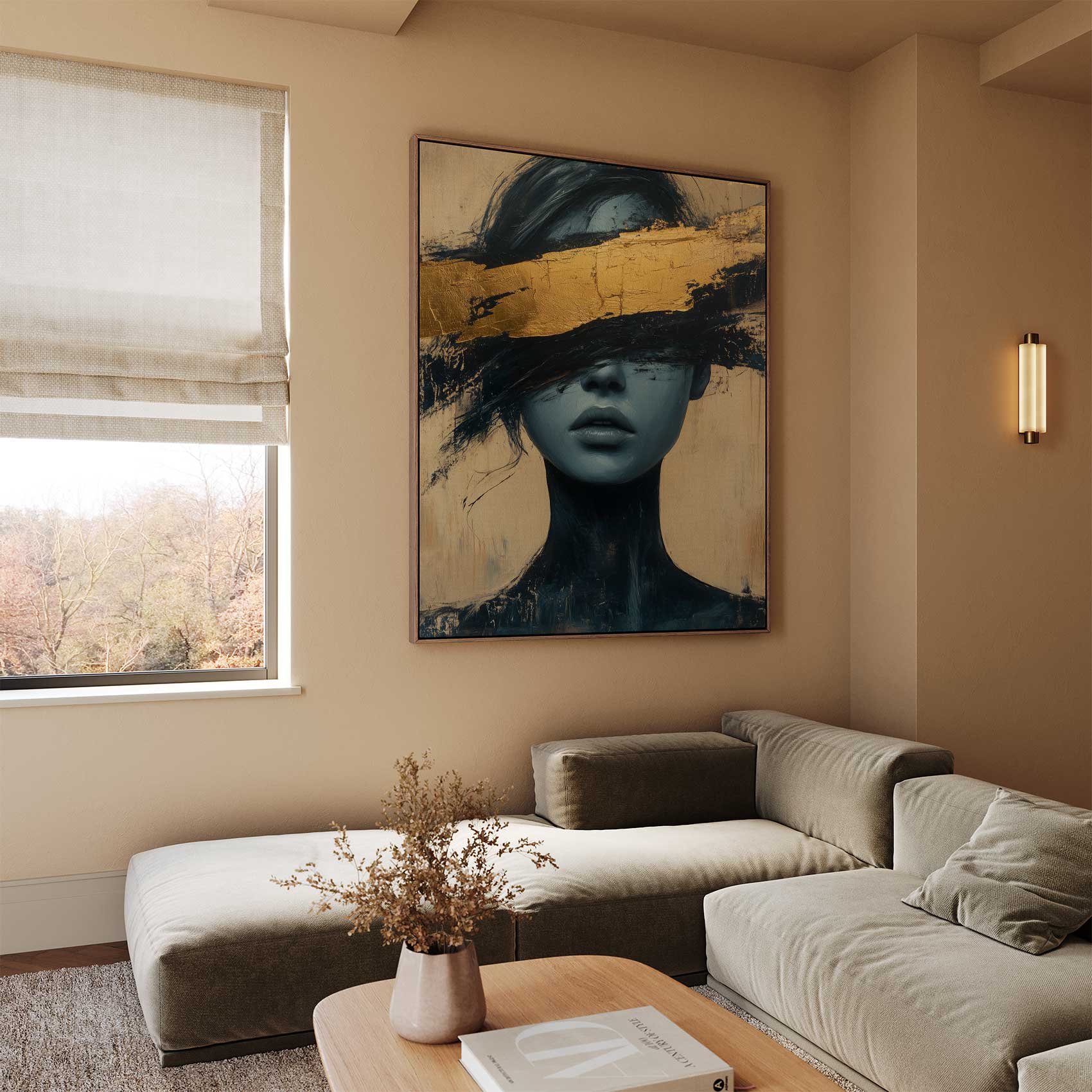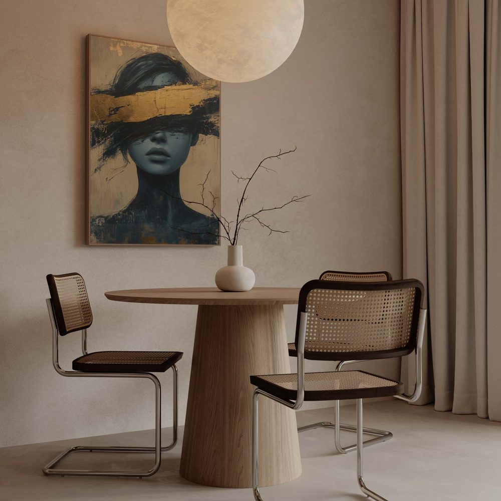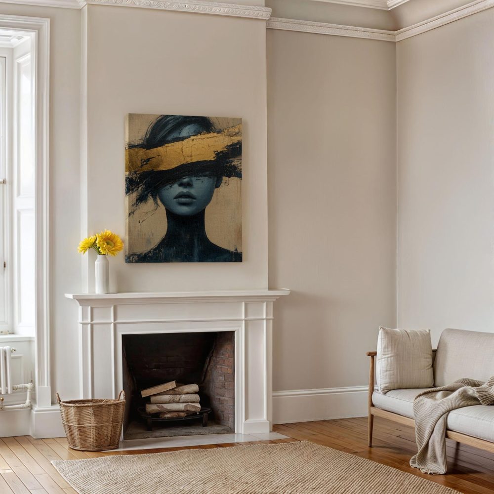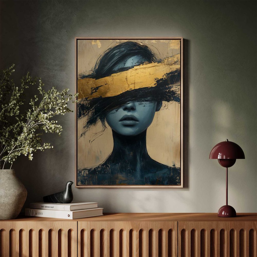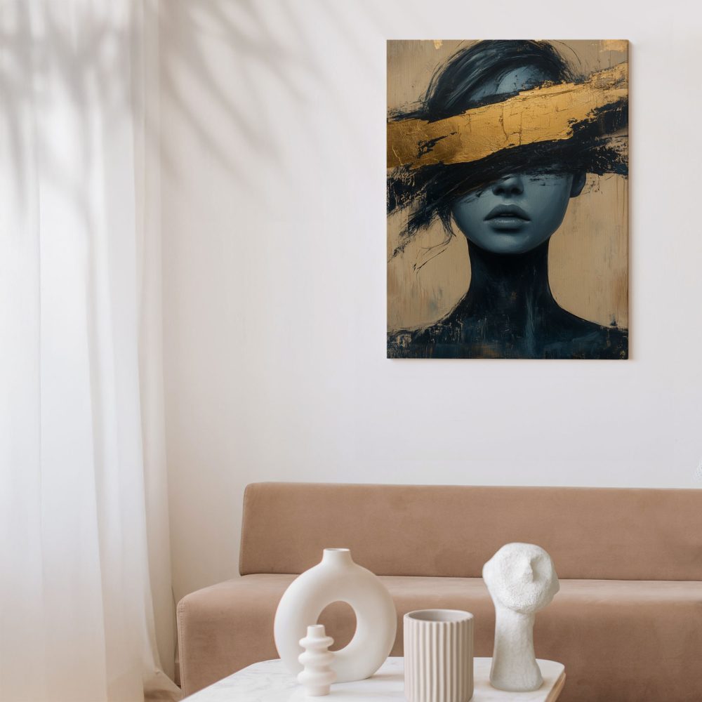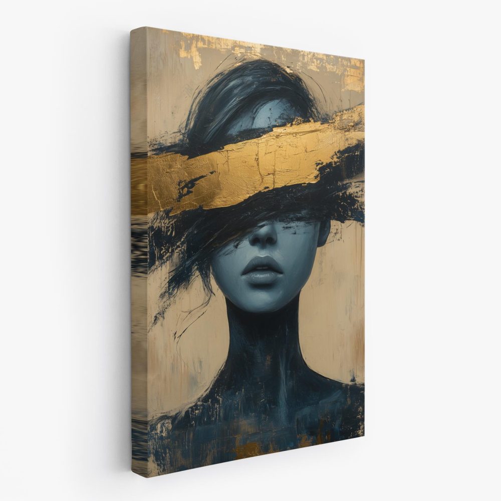 Terug naar collectie / Schilderijen / Abstract Schilderij / Mysterieuze blauwe dame op goud