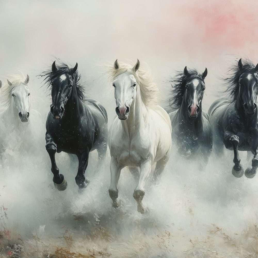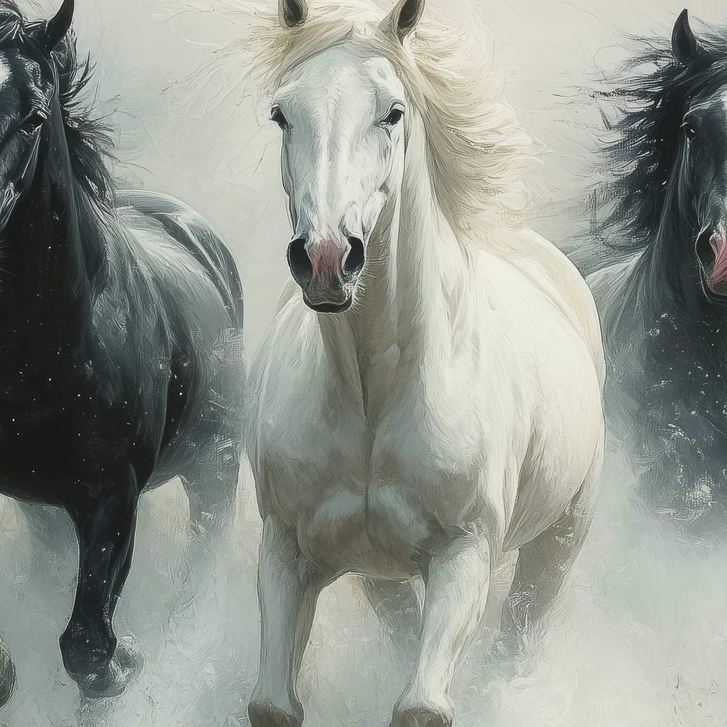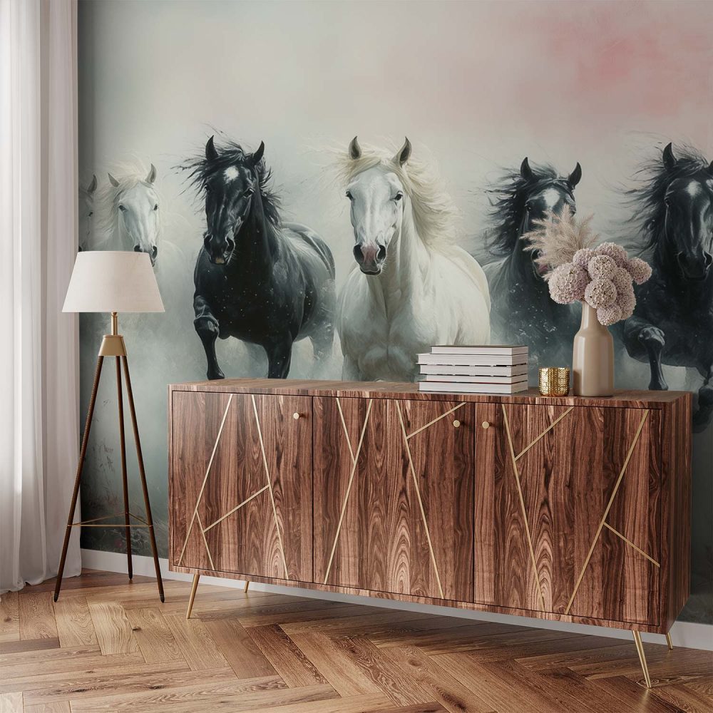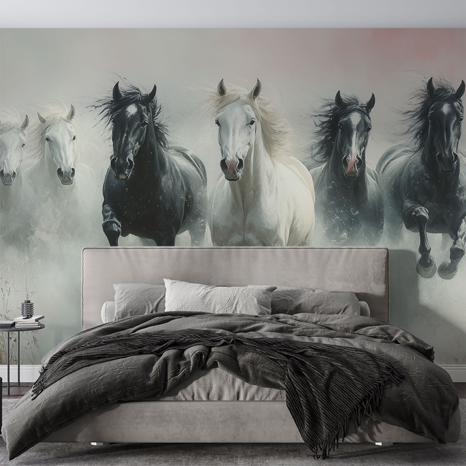 Terug naar collectie / Behang / Mysterieuze galopperende paarden behang