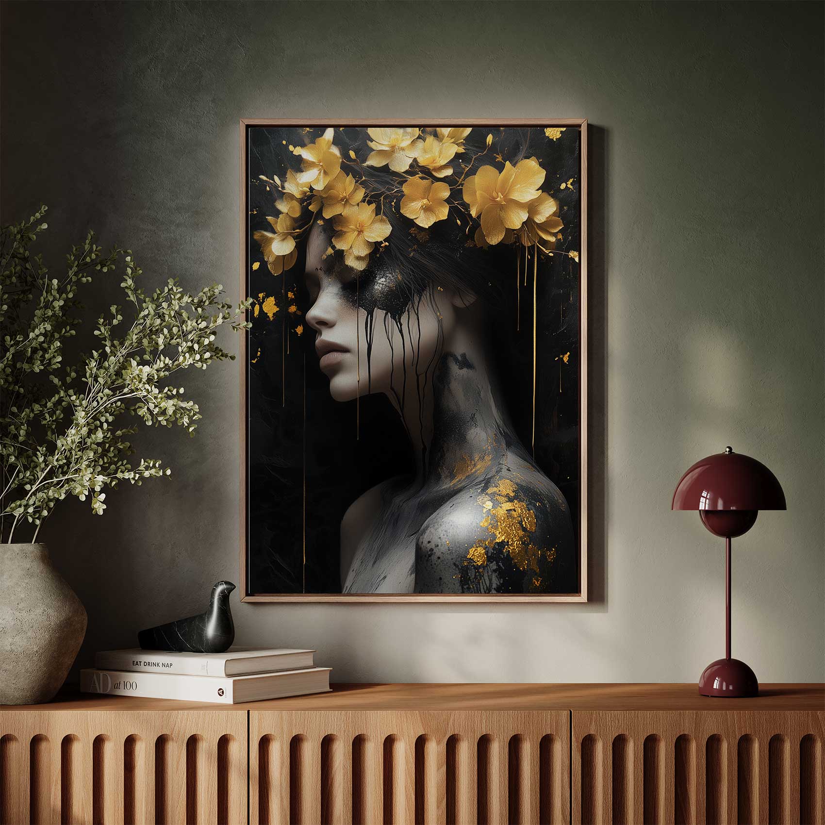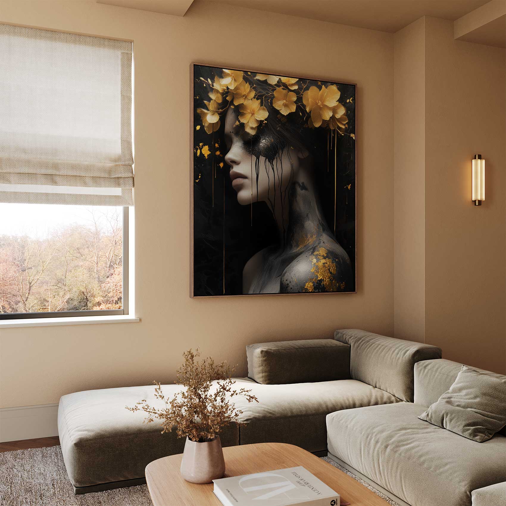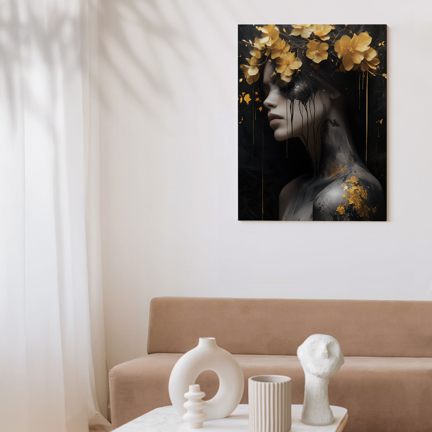 Terug naar collectie / Schilderijen / Abstract Schilderij / Mysterieuze Gouden Bloemendame