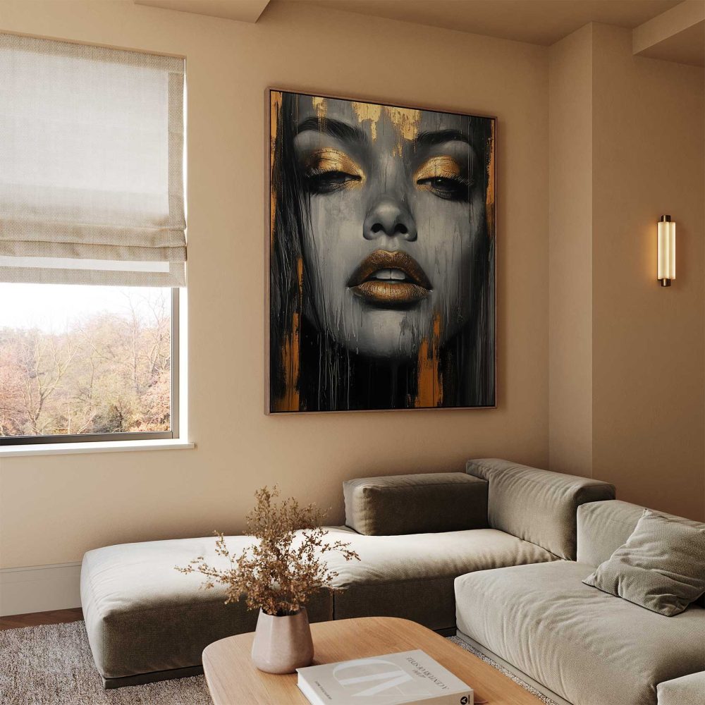 Terug naar collectie / Schilderijen / Exotisch Schilderij / Mysterieuze Gouden Schoonheid