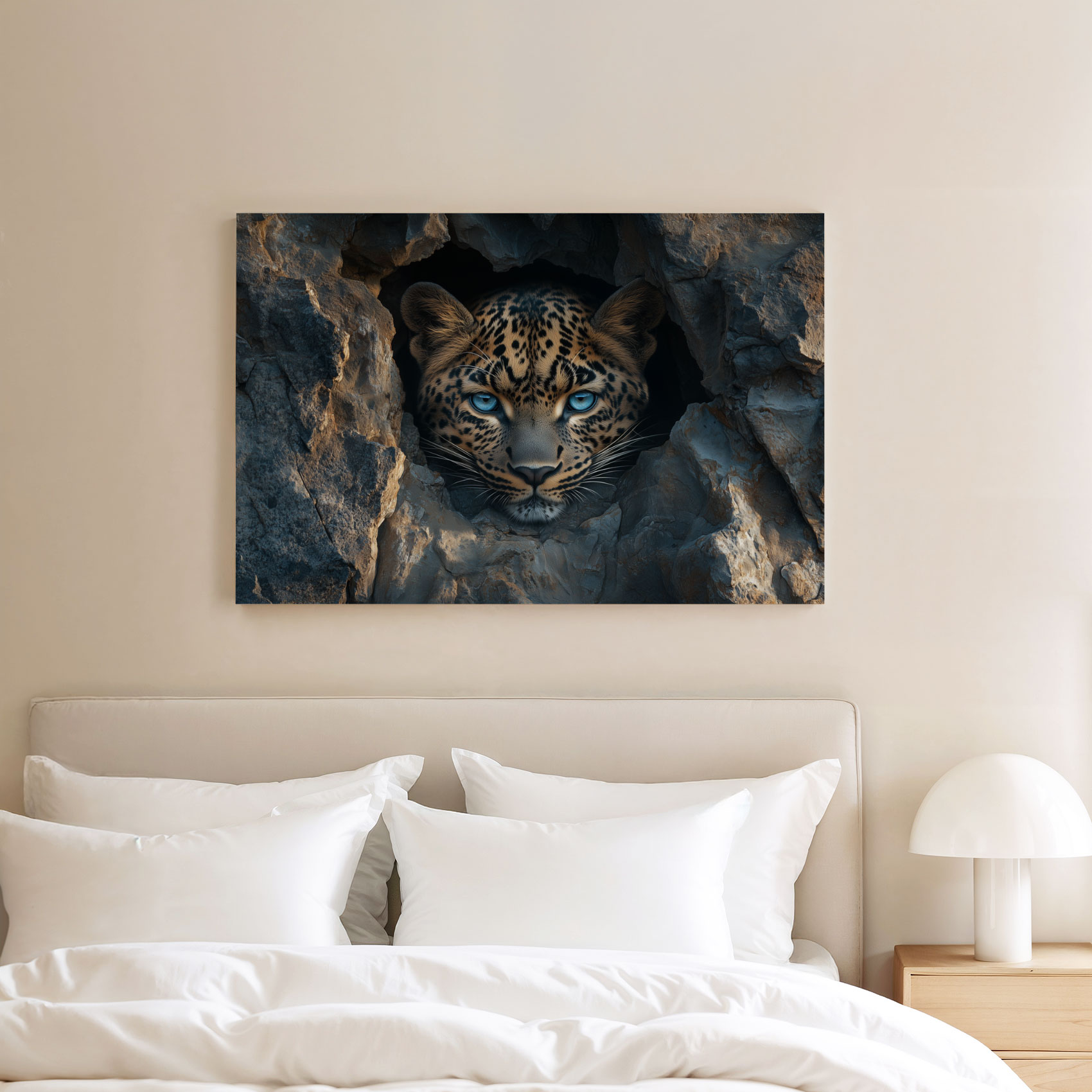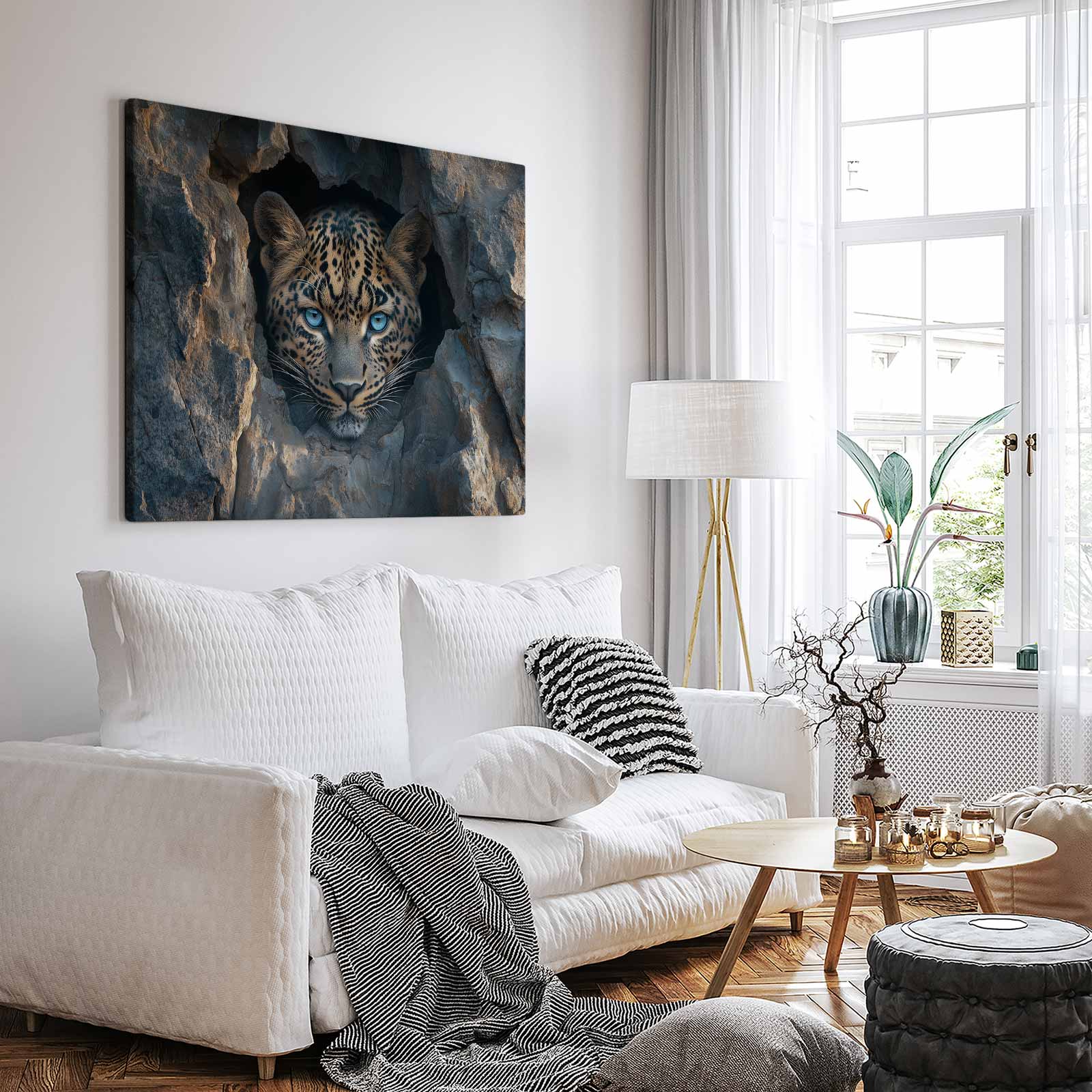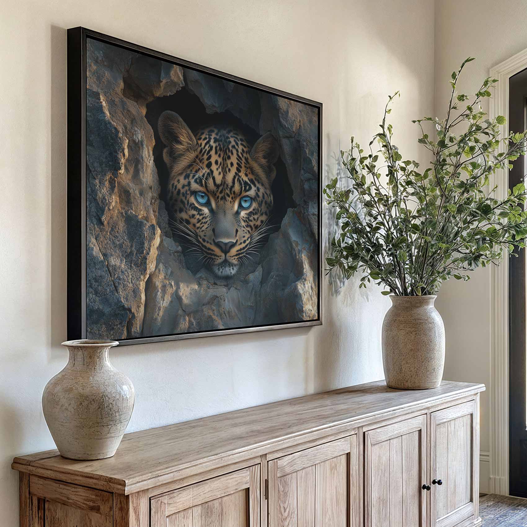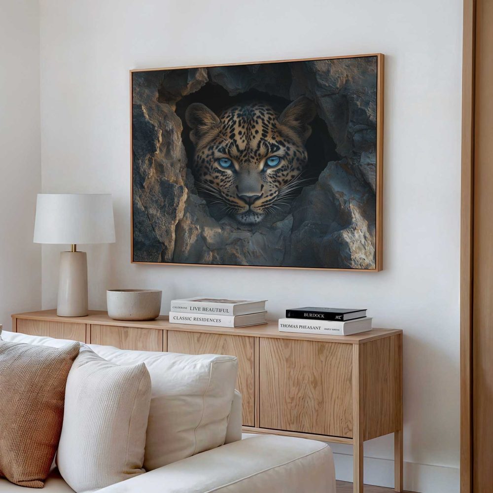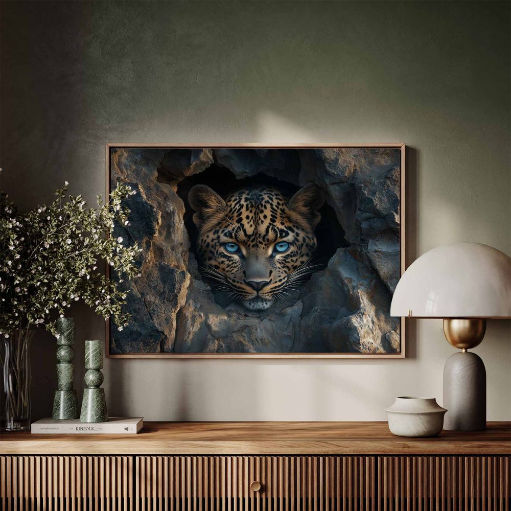 Terug naar collectie / Schilderijen / Dieren Schilderij / Mysterieuze luipaard in rots