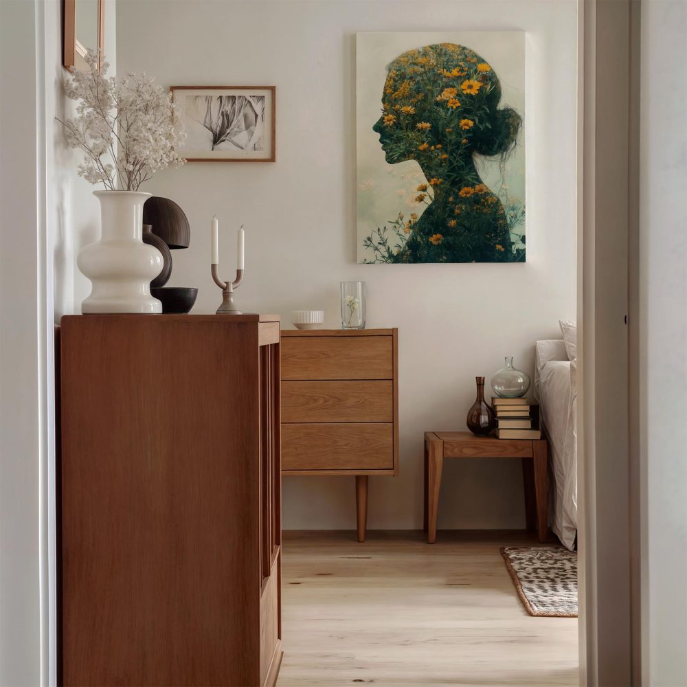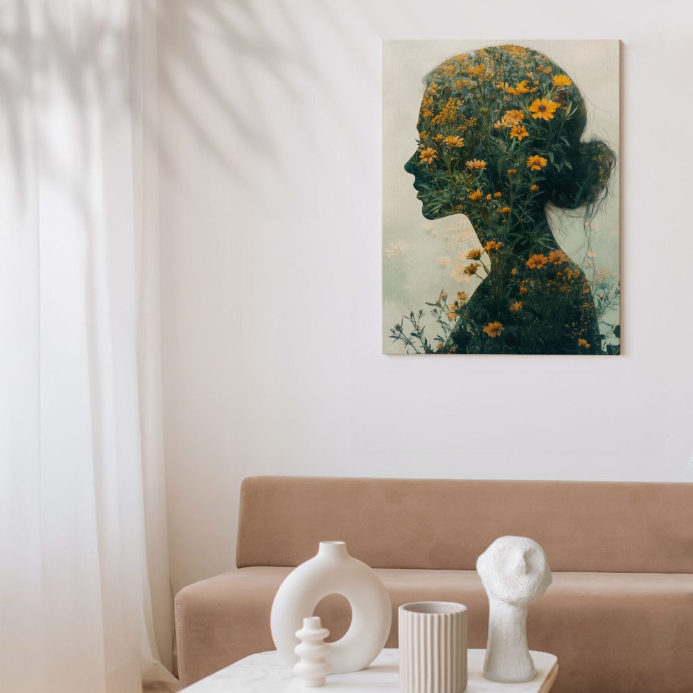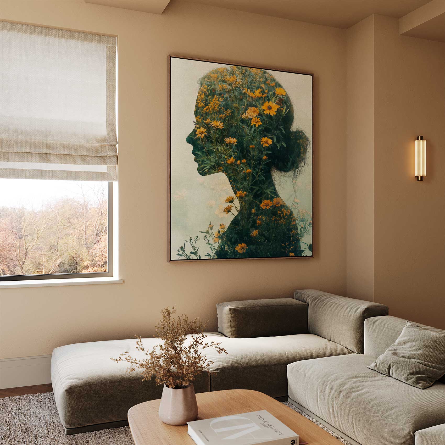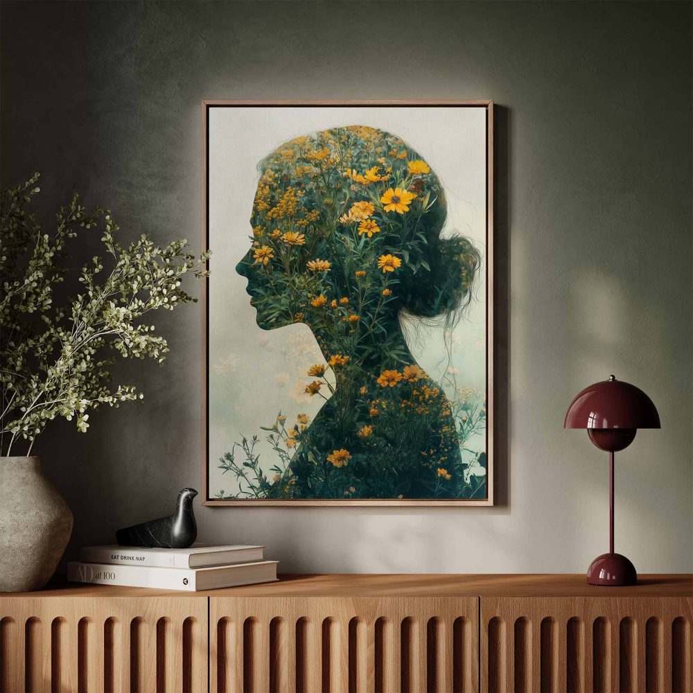 Terug naar collectie / Schilderijen / Bloemen Schilderij / Mysterieuze vrouw in bloemenpracht