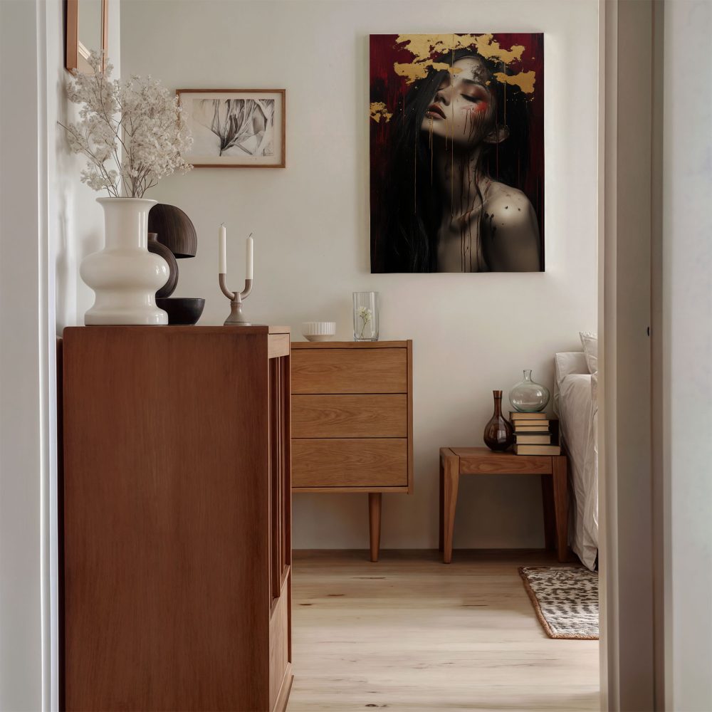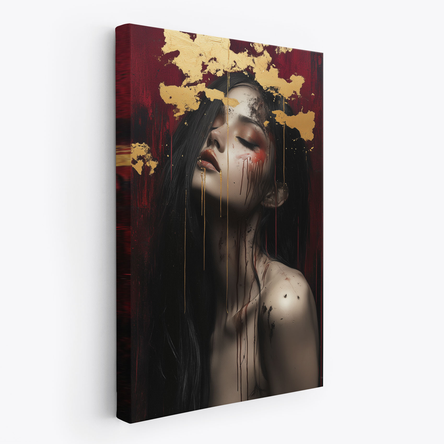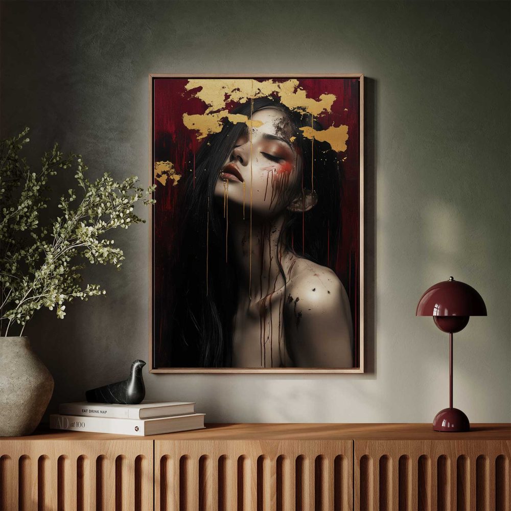 Terug naar collectie / Schilderijen / Abstract Schilderij / Mysterieuze vrouw met goudblad