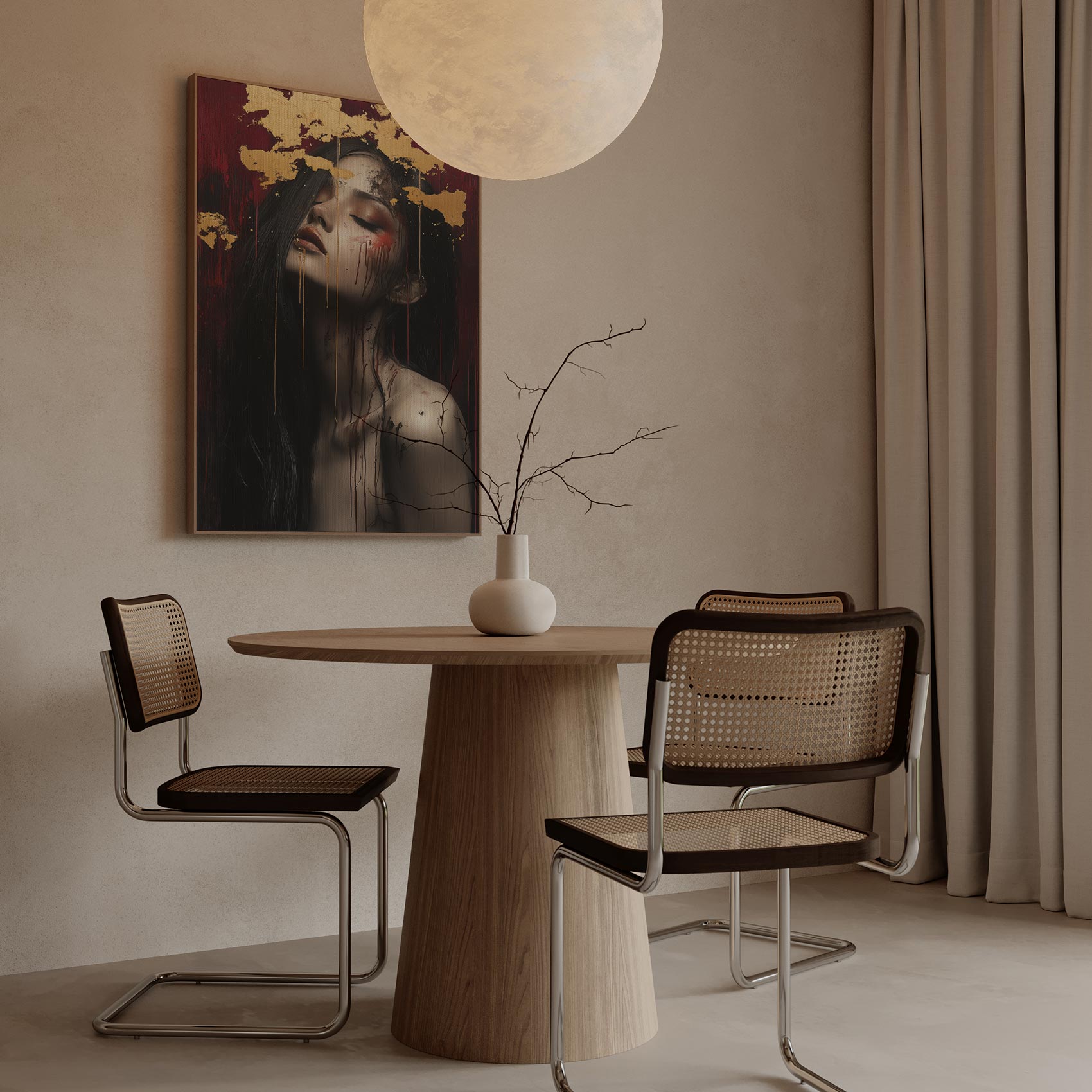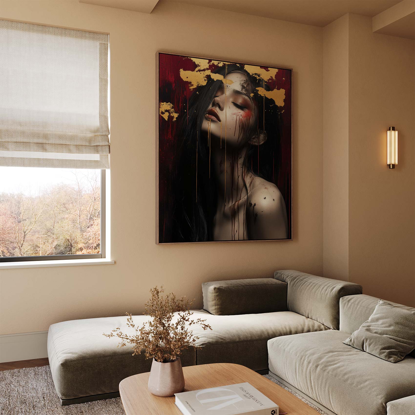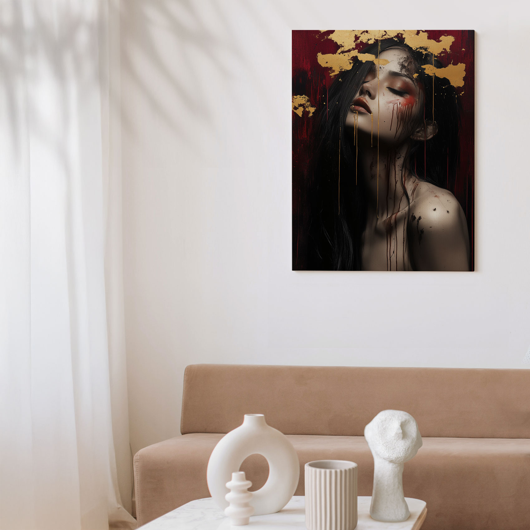 Terug naar collectie / Schilderijen / Abstract Schilderij / Mysterieuze vrouw met goudblad