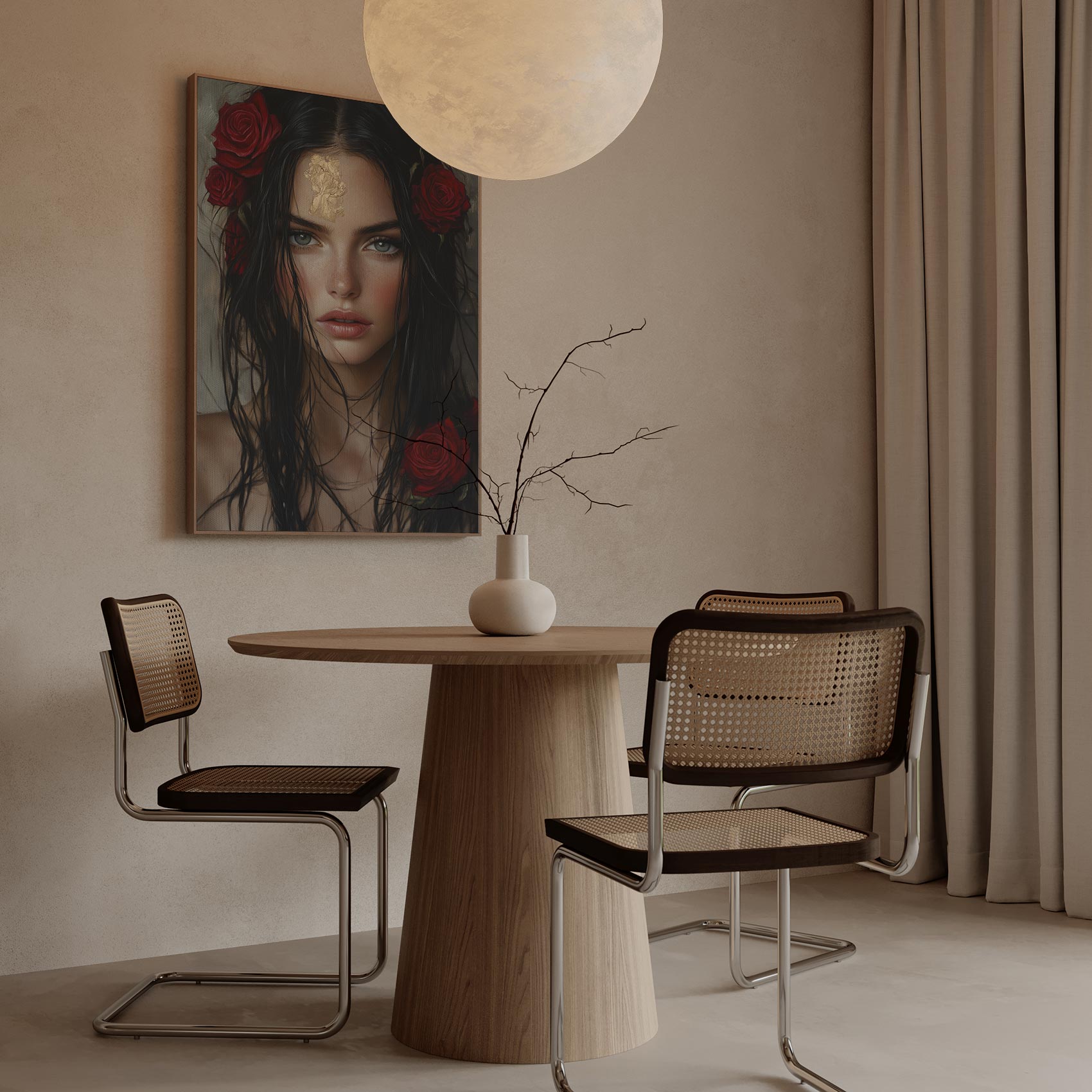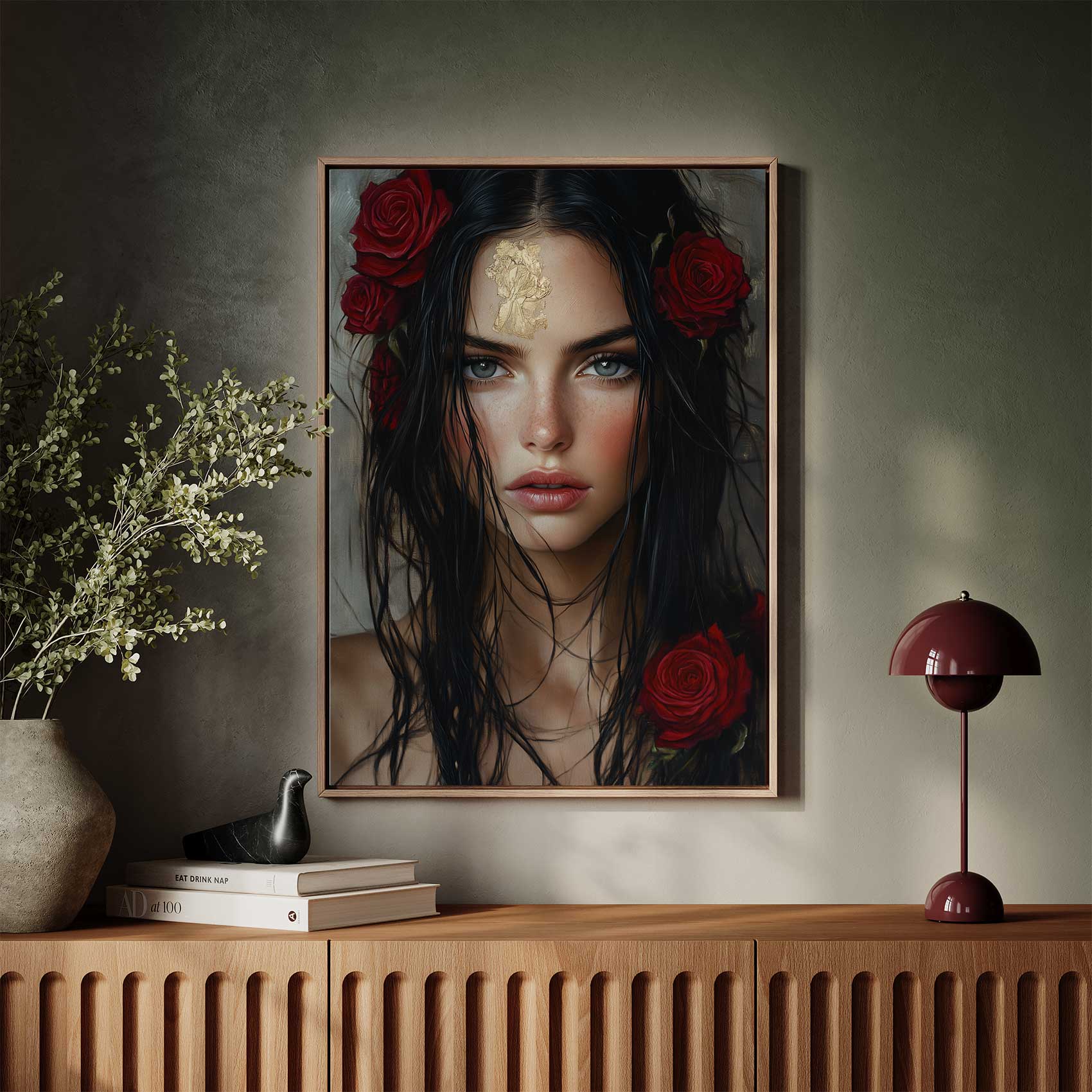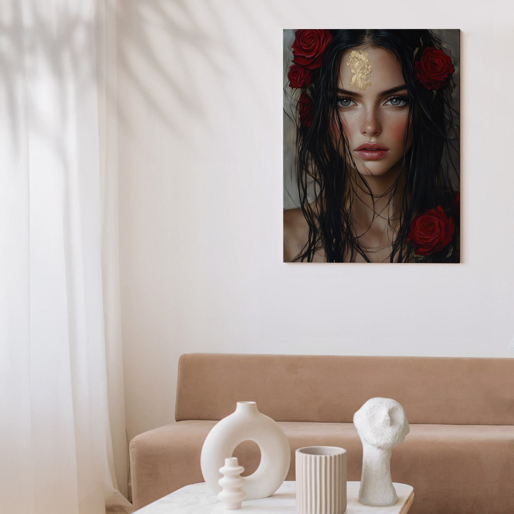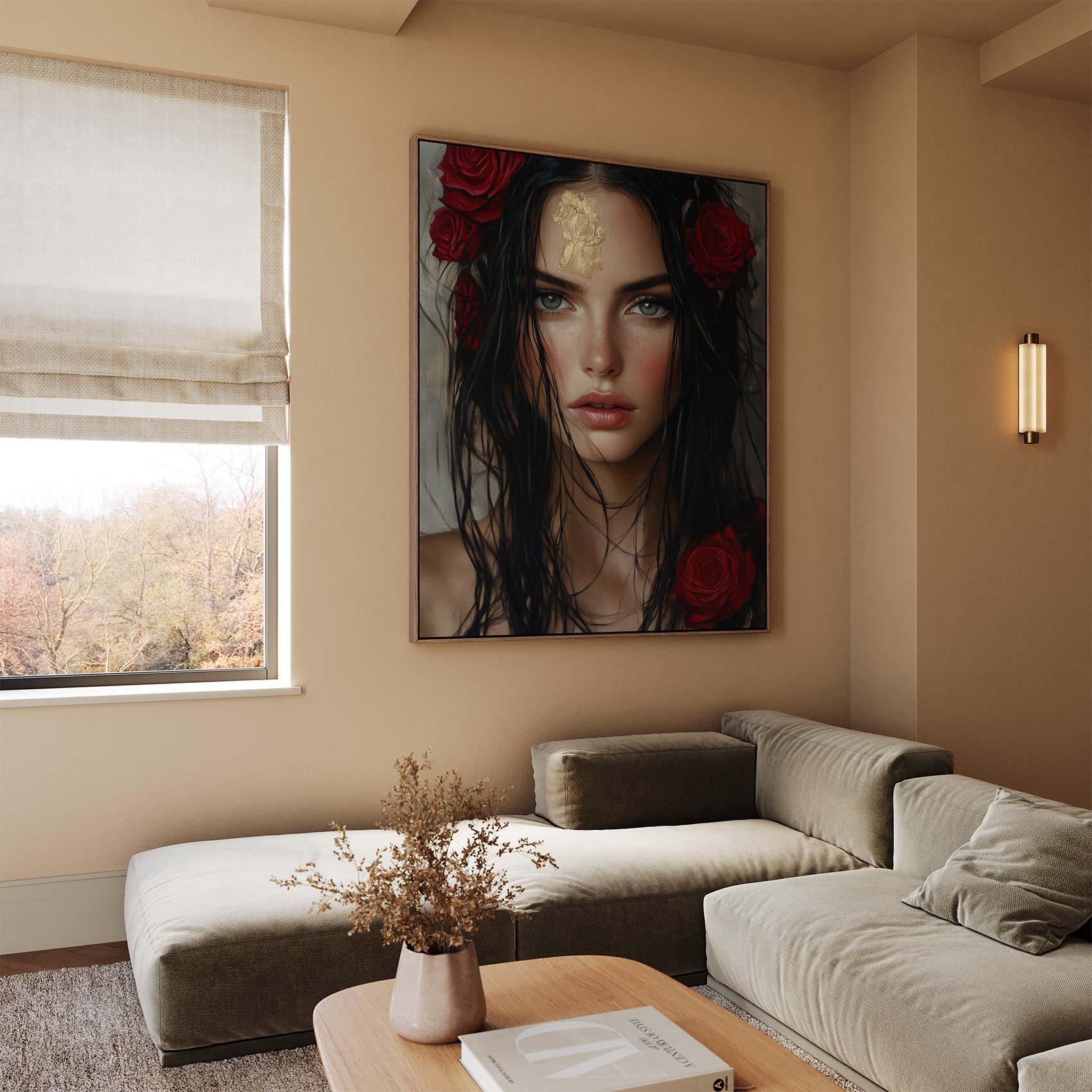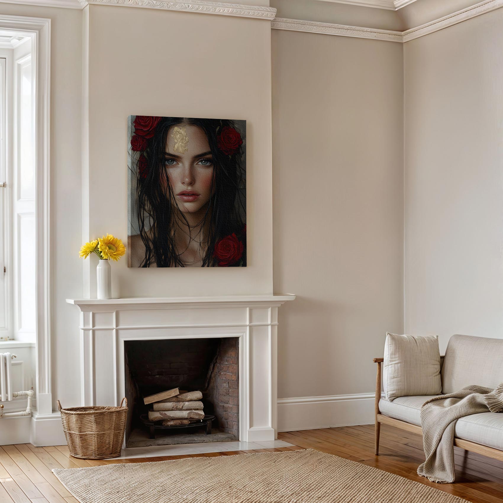 Terug naar collectie / Schilderijen / Bloemen Schilderij / Mysterieuze vrouw met goudbloem