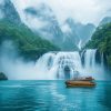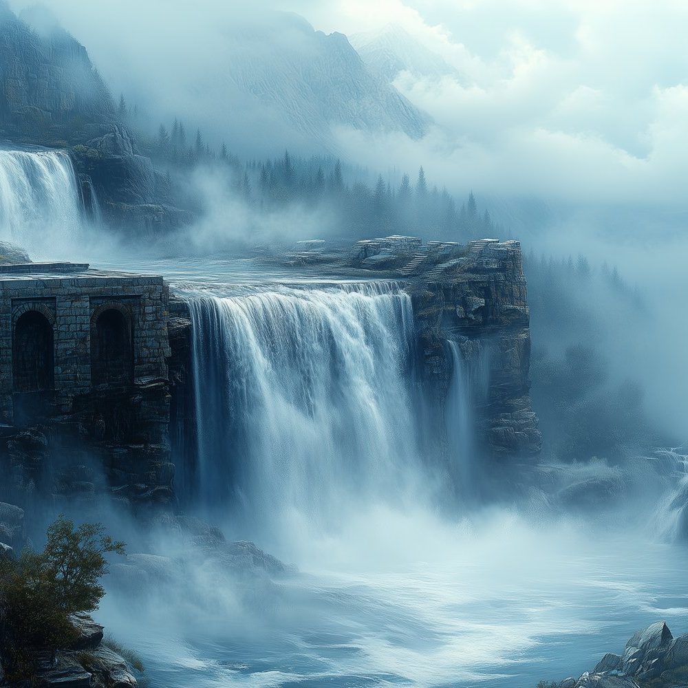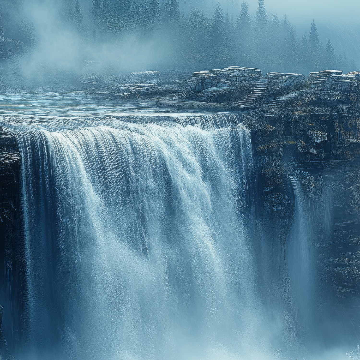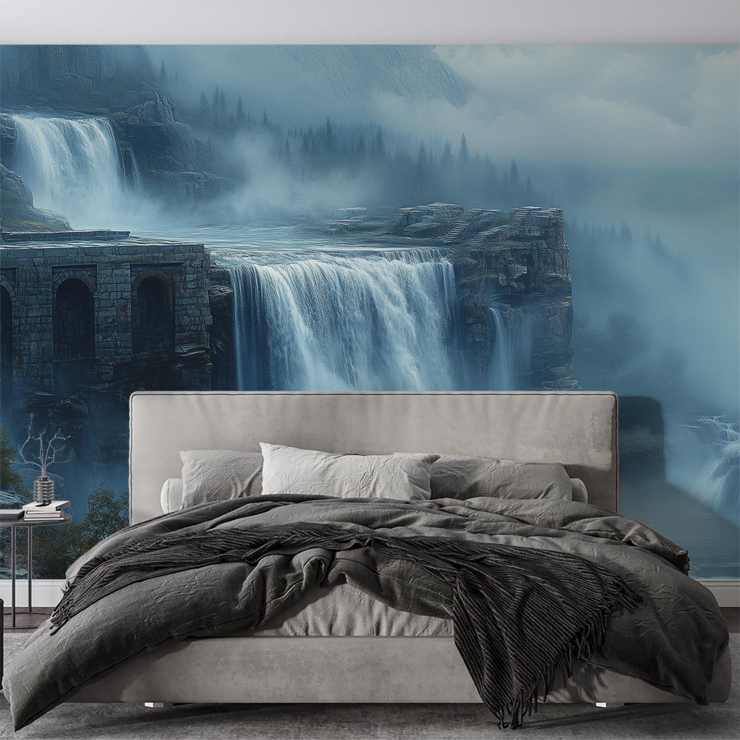 Terug naar collectie / Behang / Mysterieuze waterval in mist behang