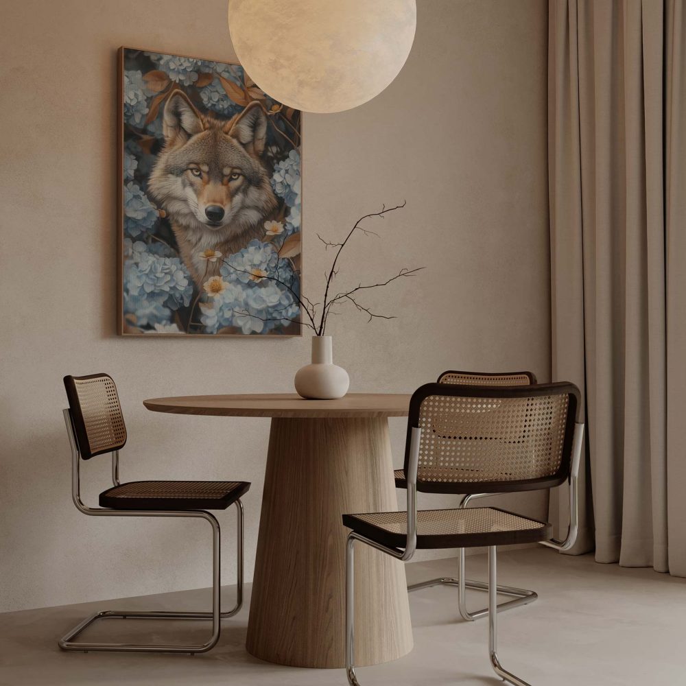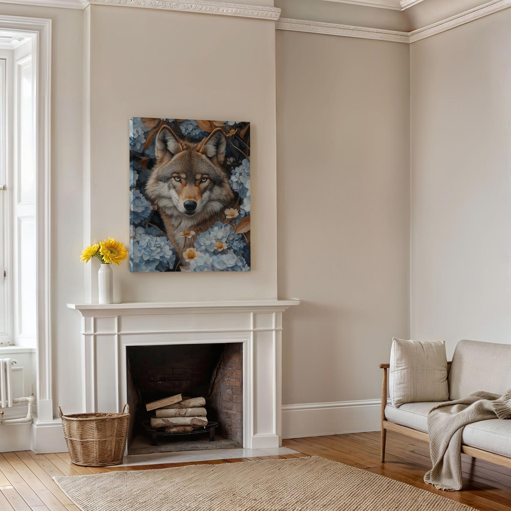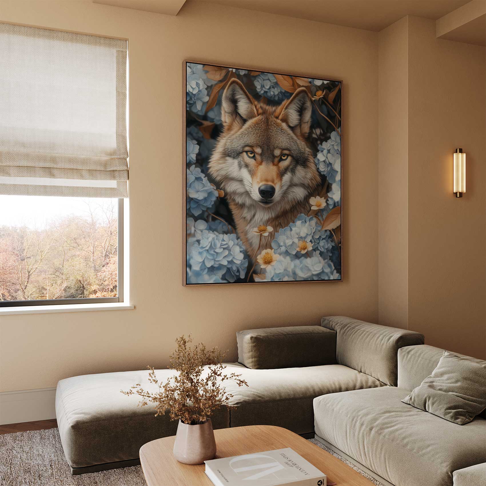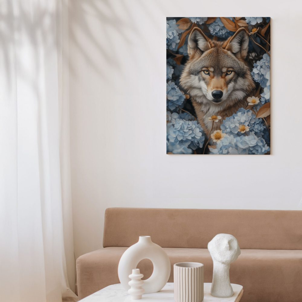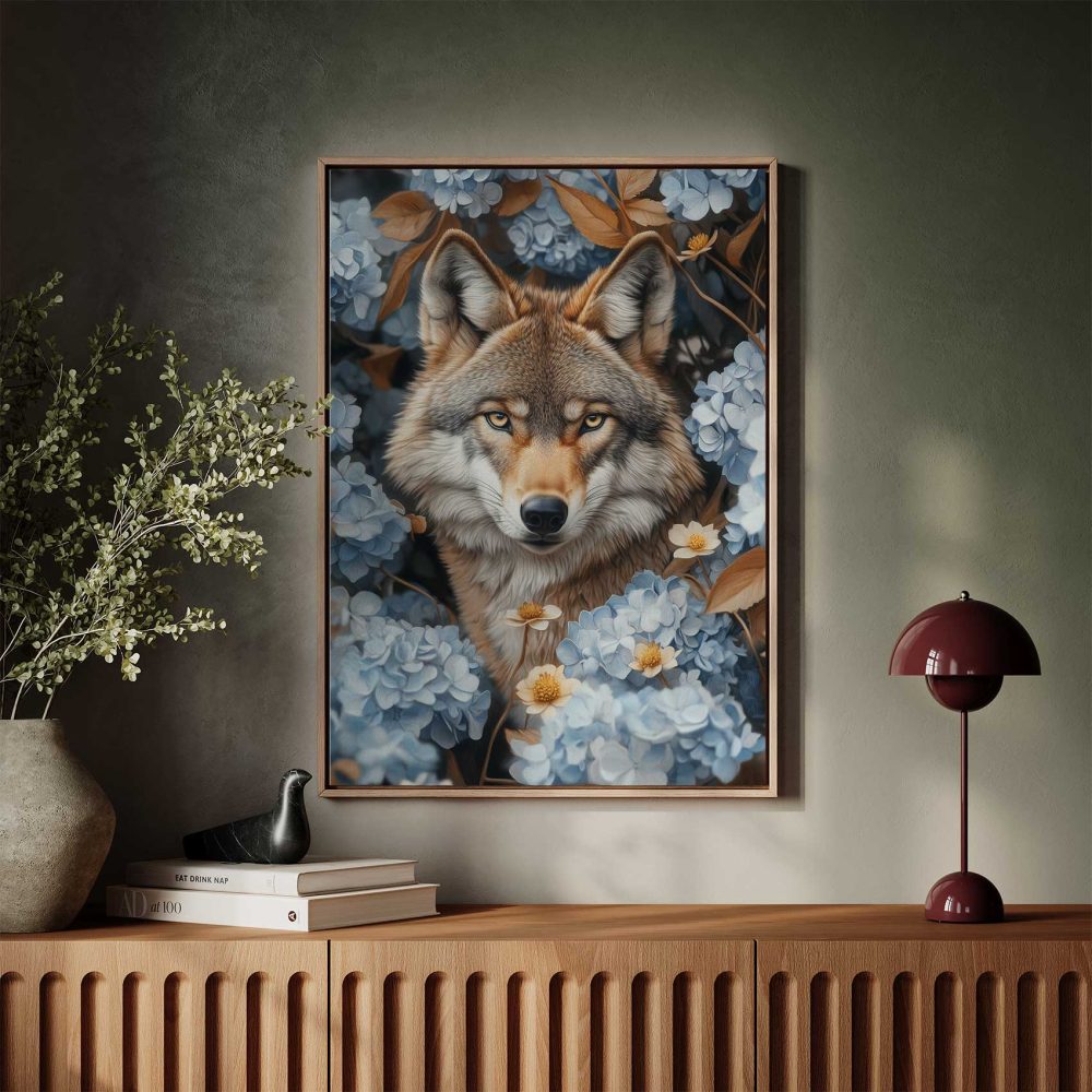 Terug naar collectie / Schilderijen / Bloemen Schilderij / Mysterieuze wolf tussen bloemen