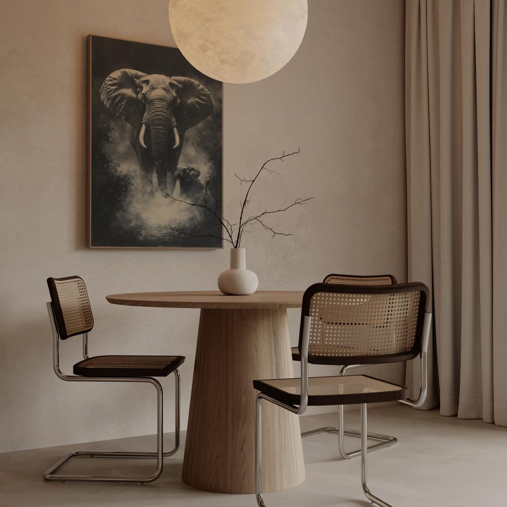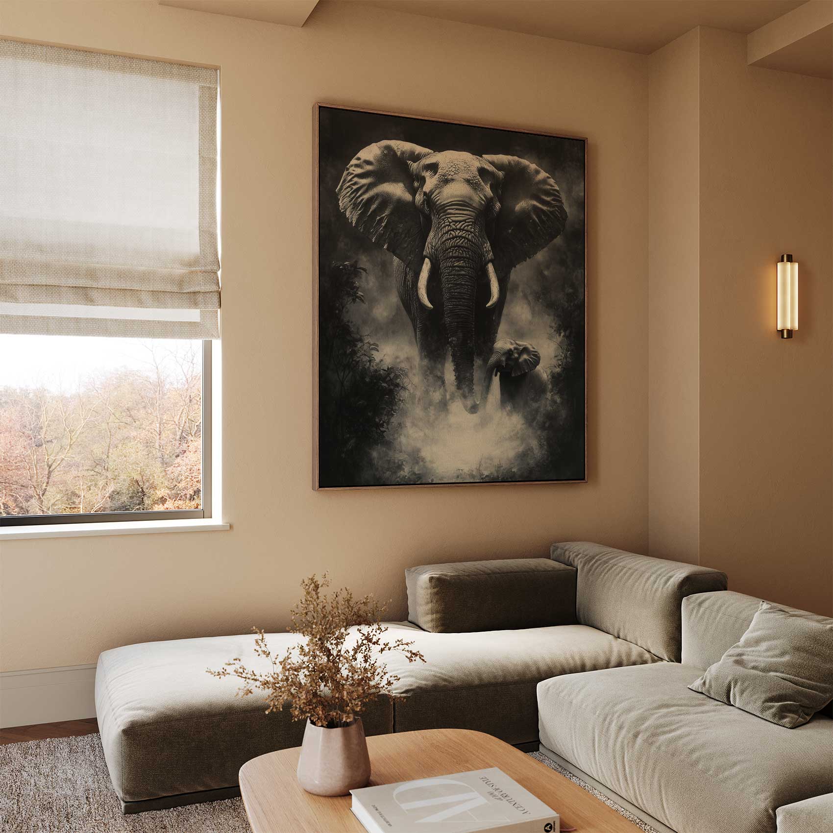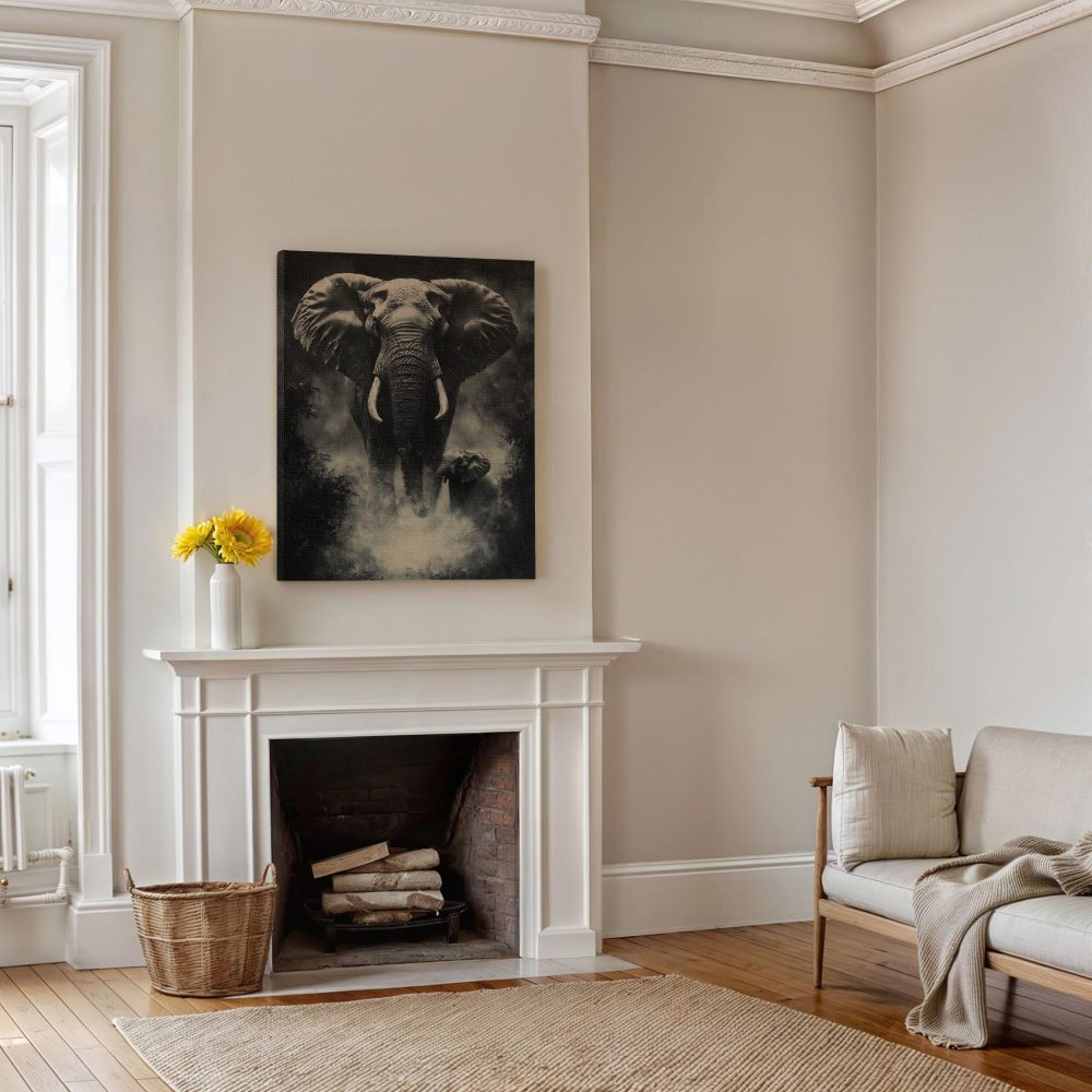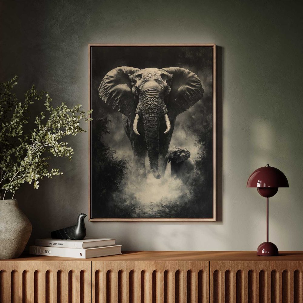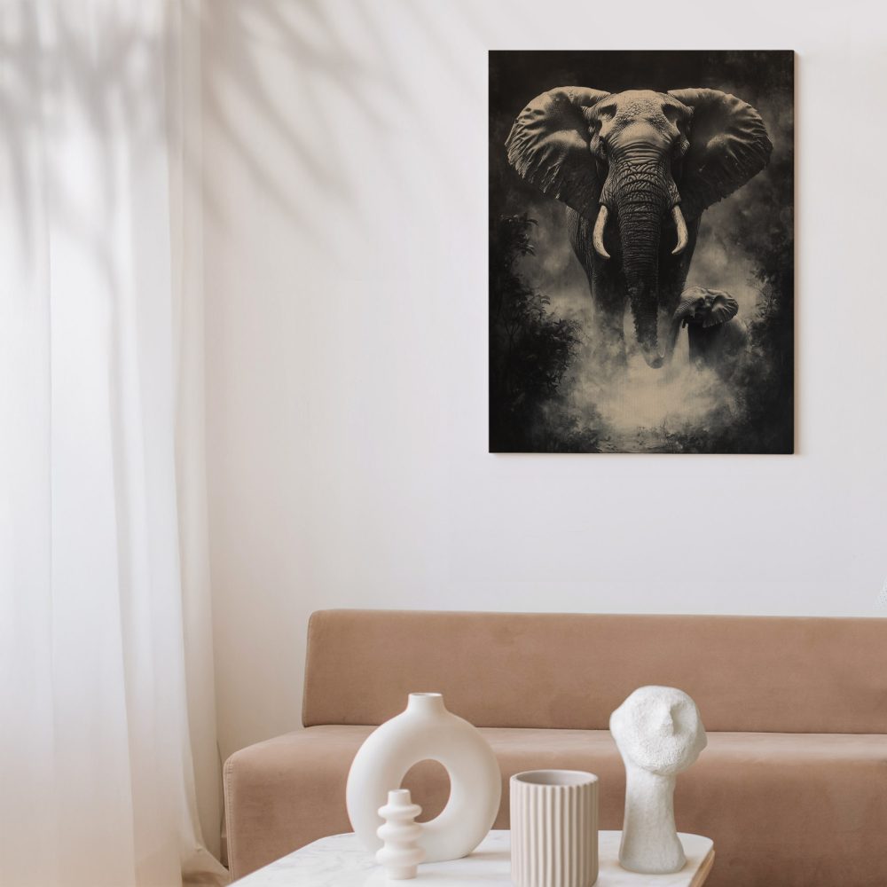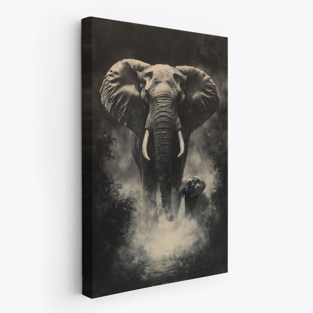 Terug naar collectie / Schilderijen / Dieren Schilderij / Mysterieuze zwart-wit olifantfoto