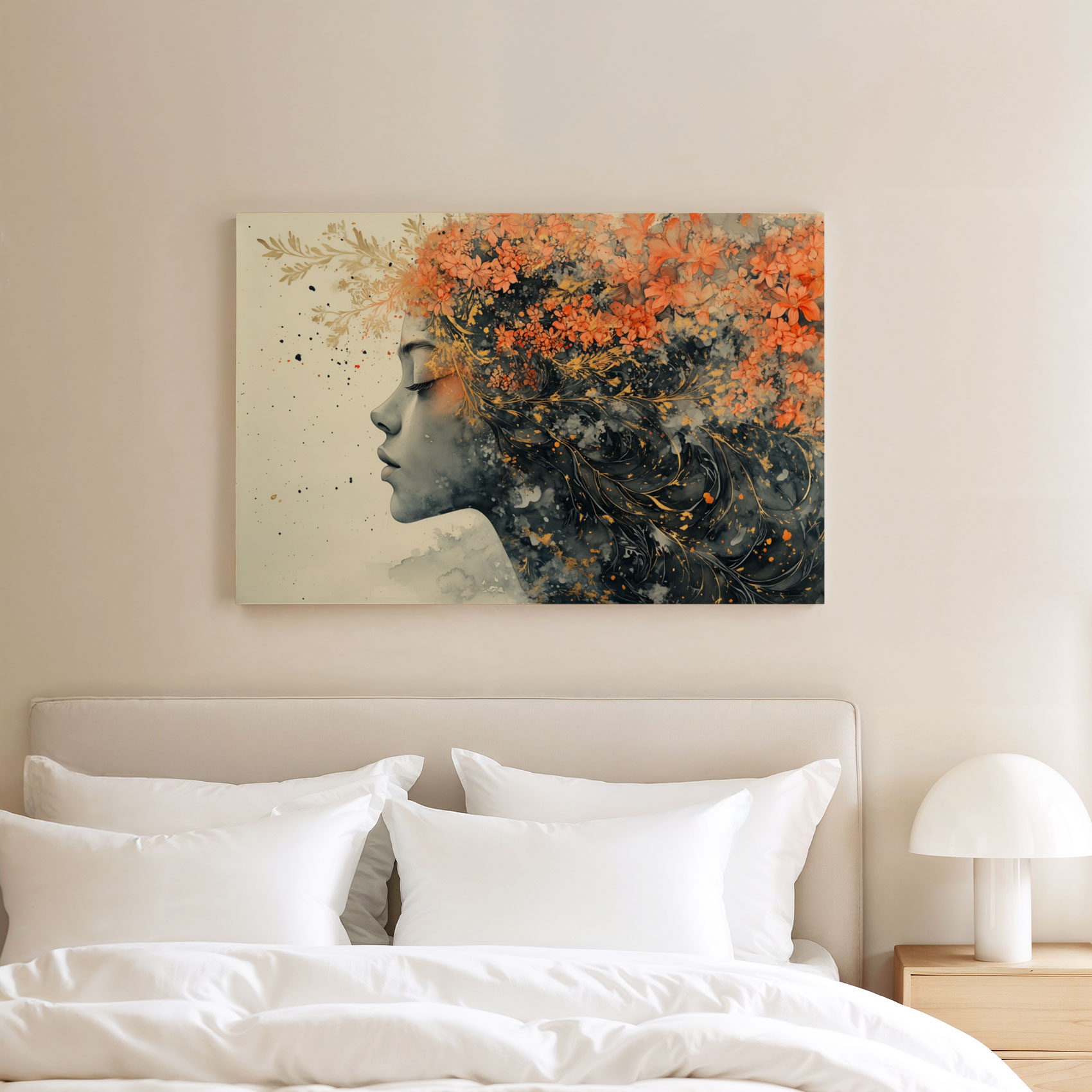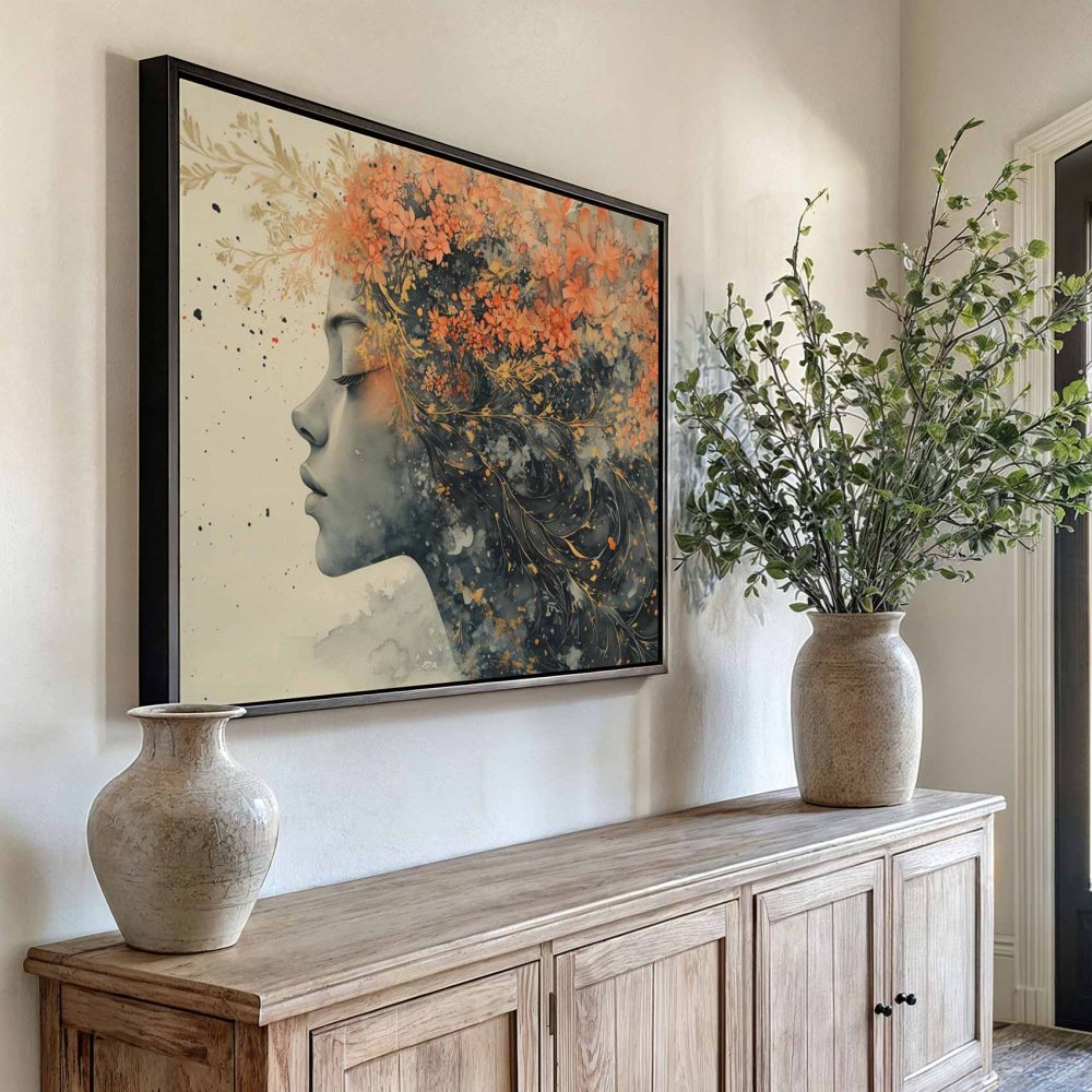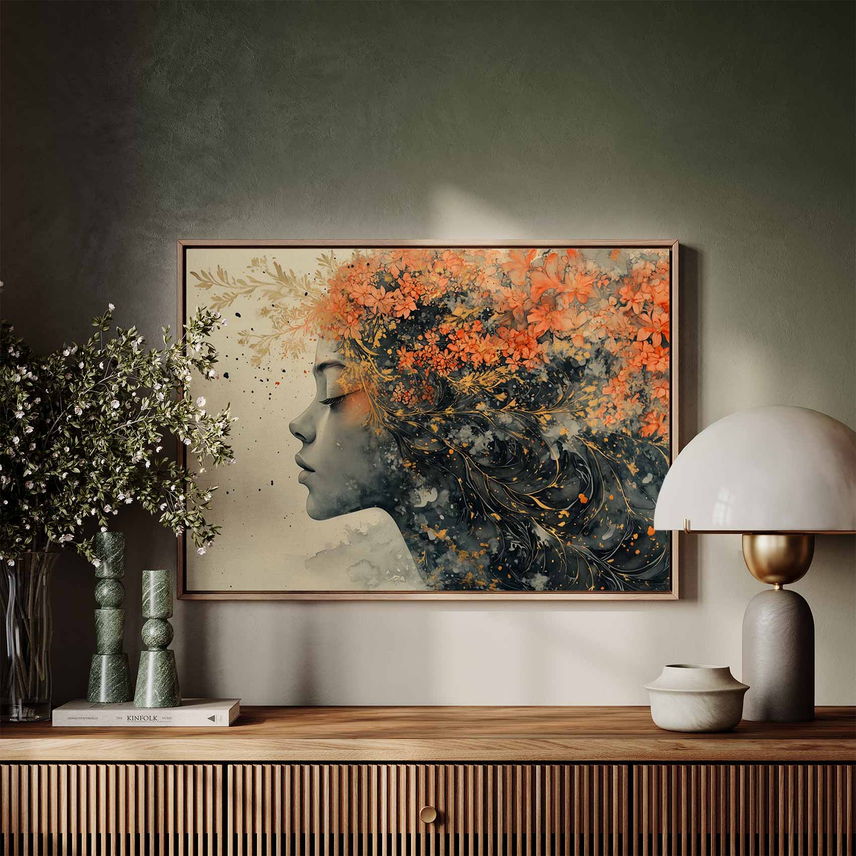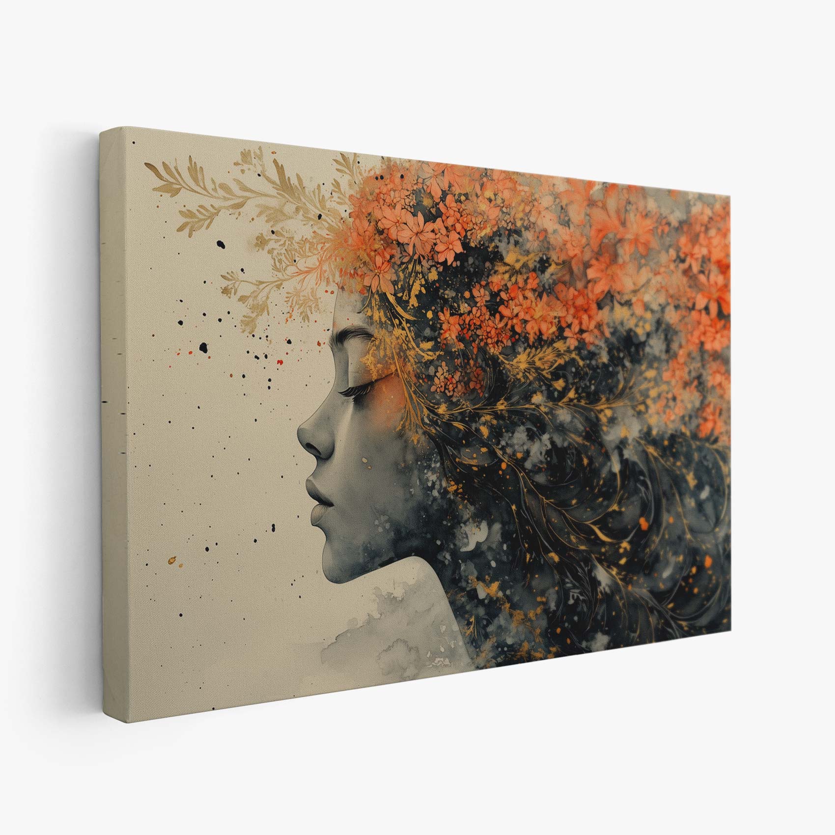Terug naar collectie / Schilderijen / Abstract Schilderij / Mystieke bloemenvrouw in oranje