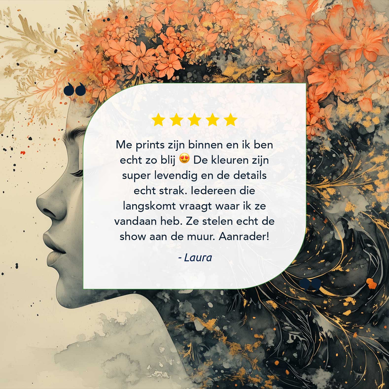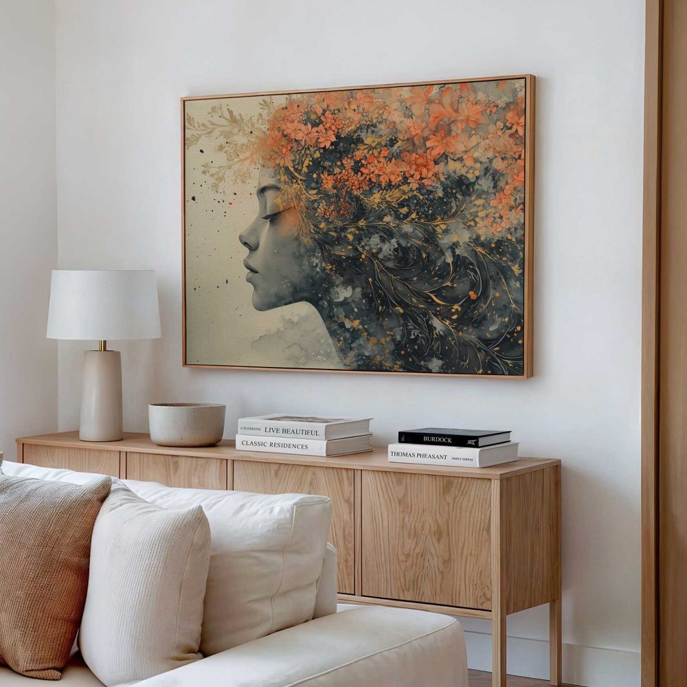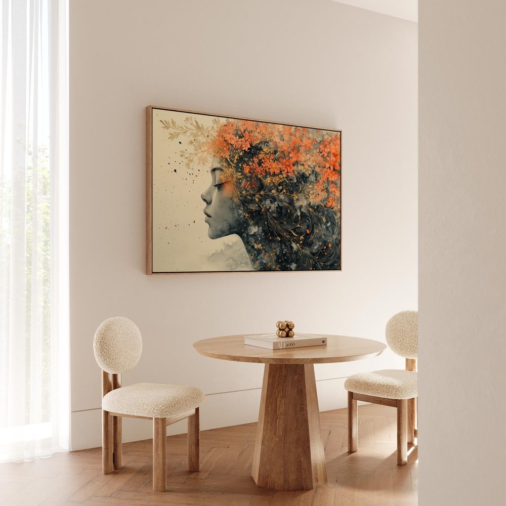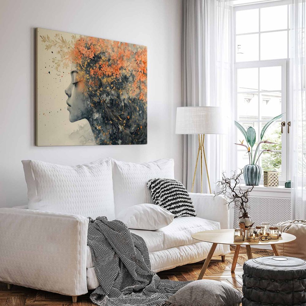Terug naar collectie / Schilderijen / Abstract Schilderij / Mystieke bloemenvrouw in oranje