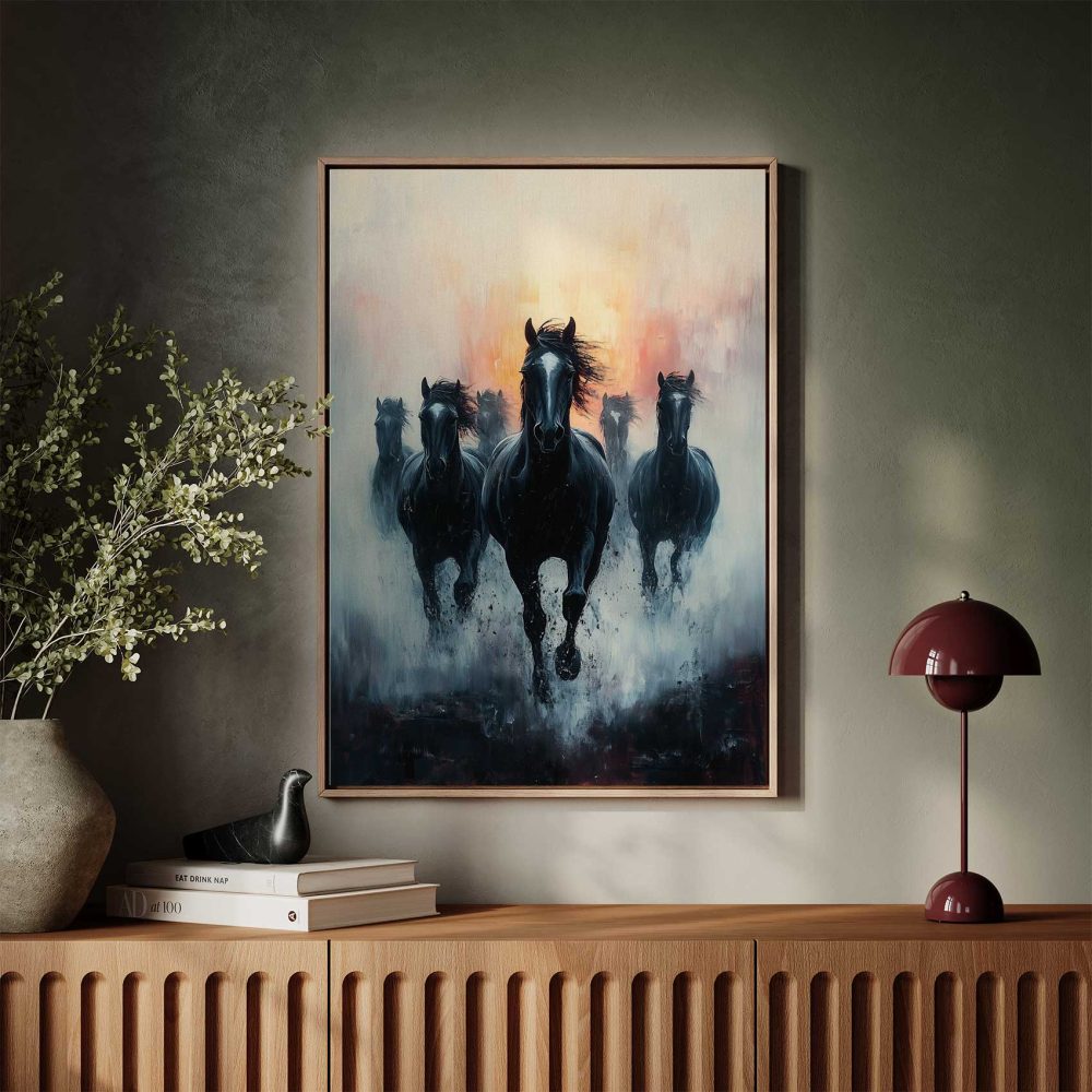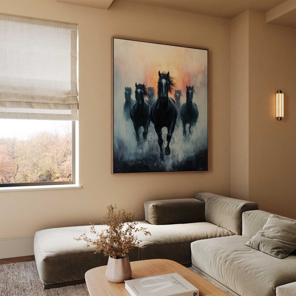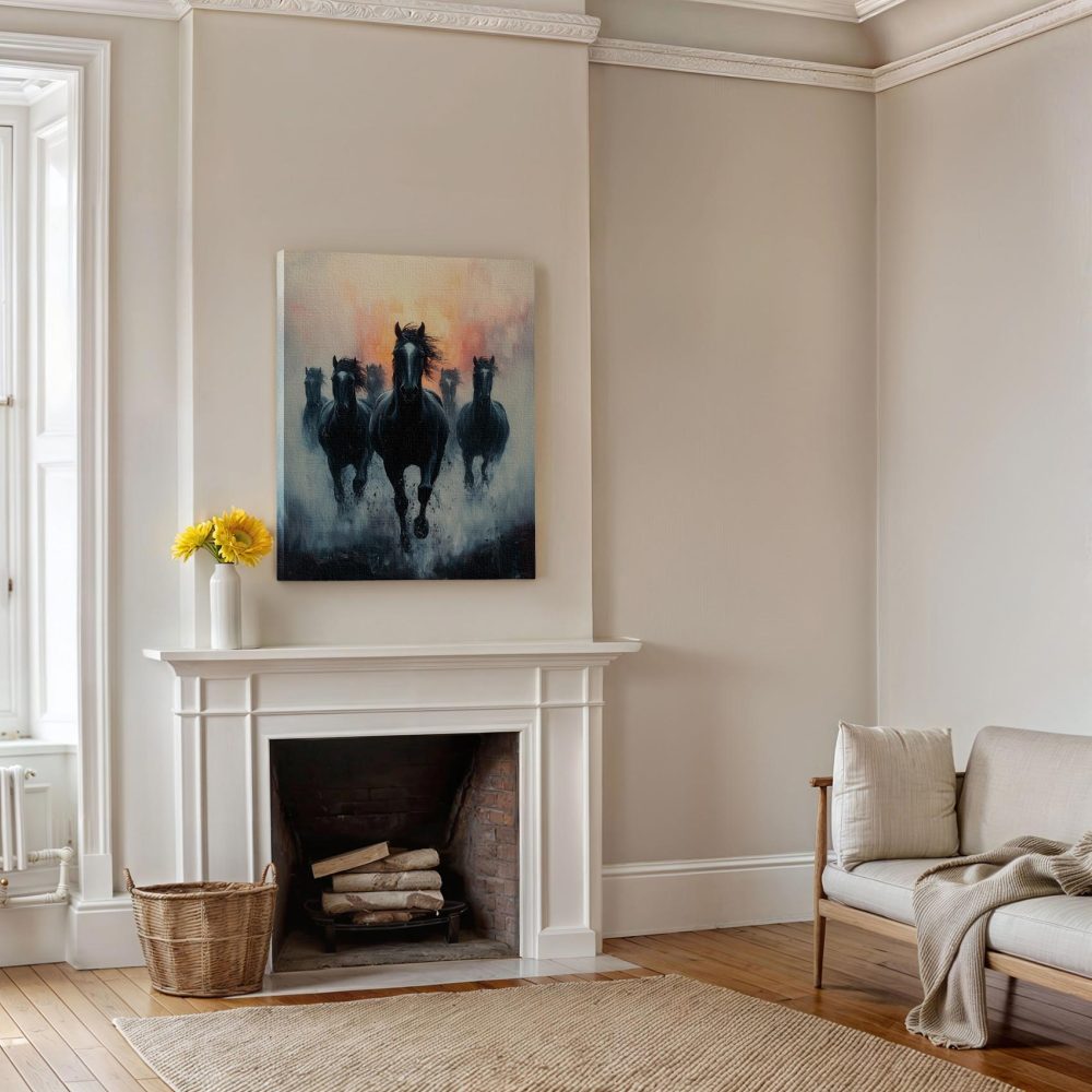 Terug naar collectie / Schilderijen / Abstract Schilderij / Mystieke galopperende paarden