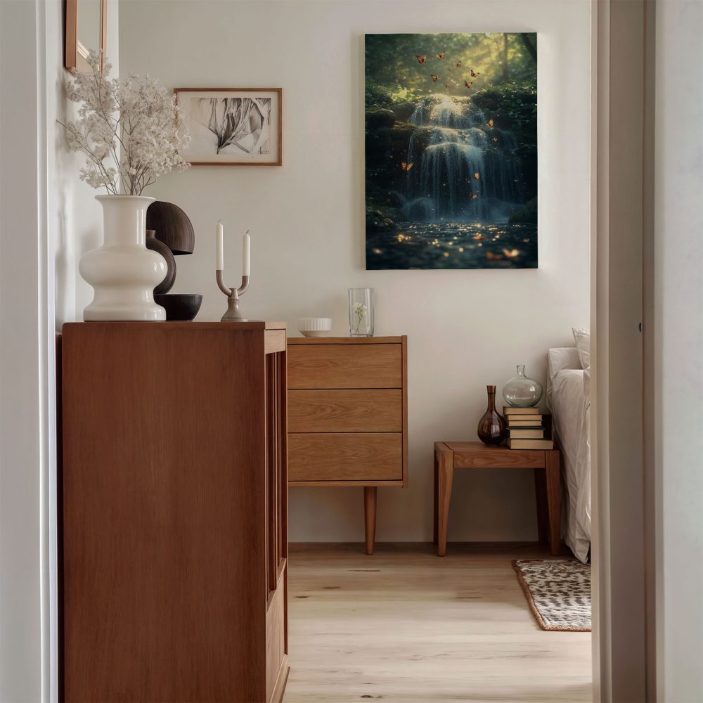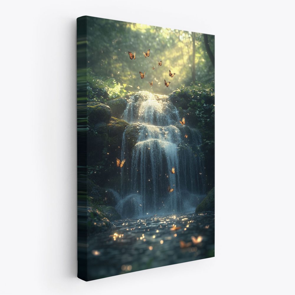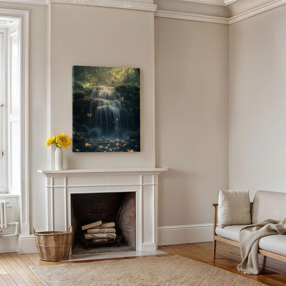 Terug naar collectie / Schilderijen / Bergen Schilderij / Mystieke waterval in sprookjesbos