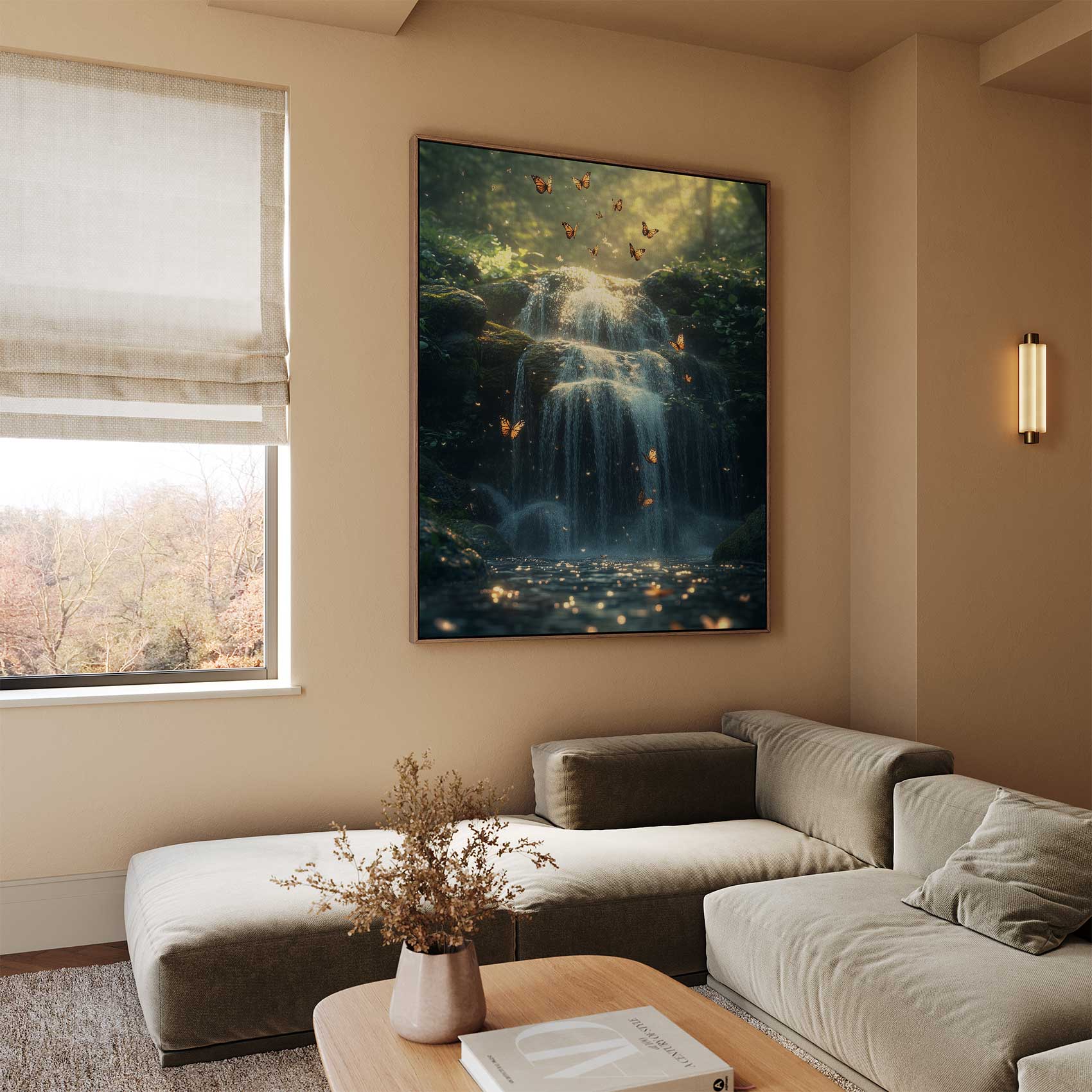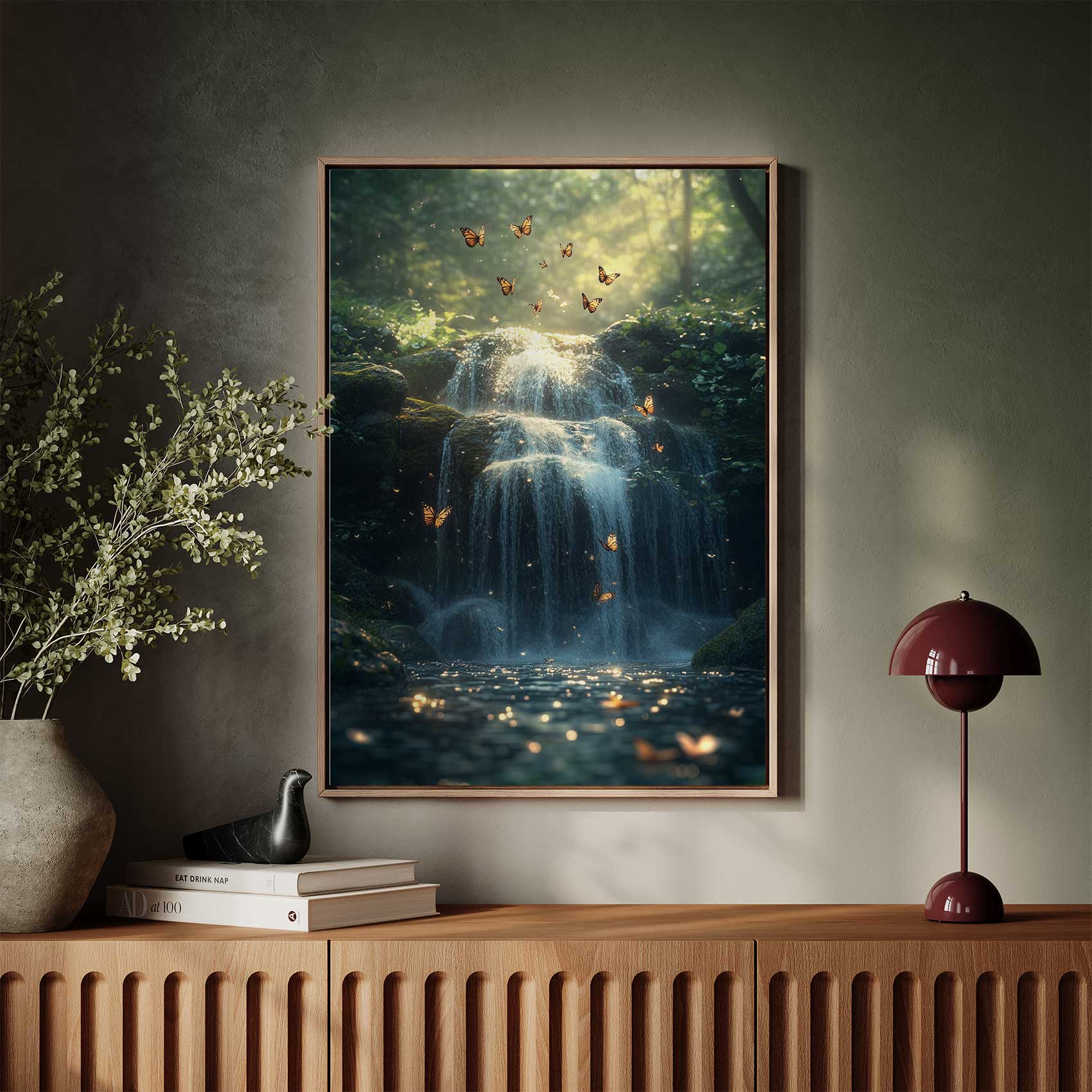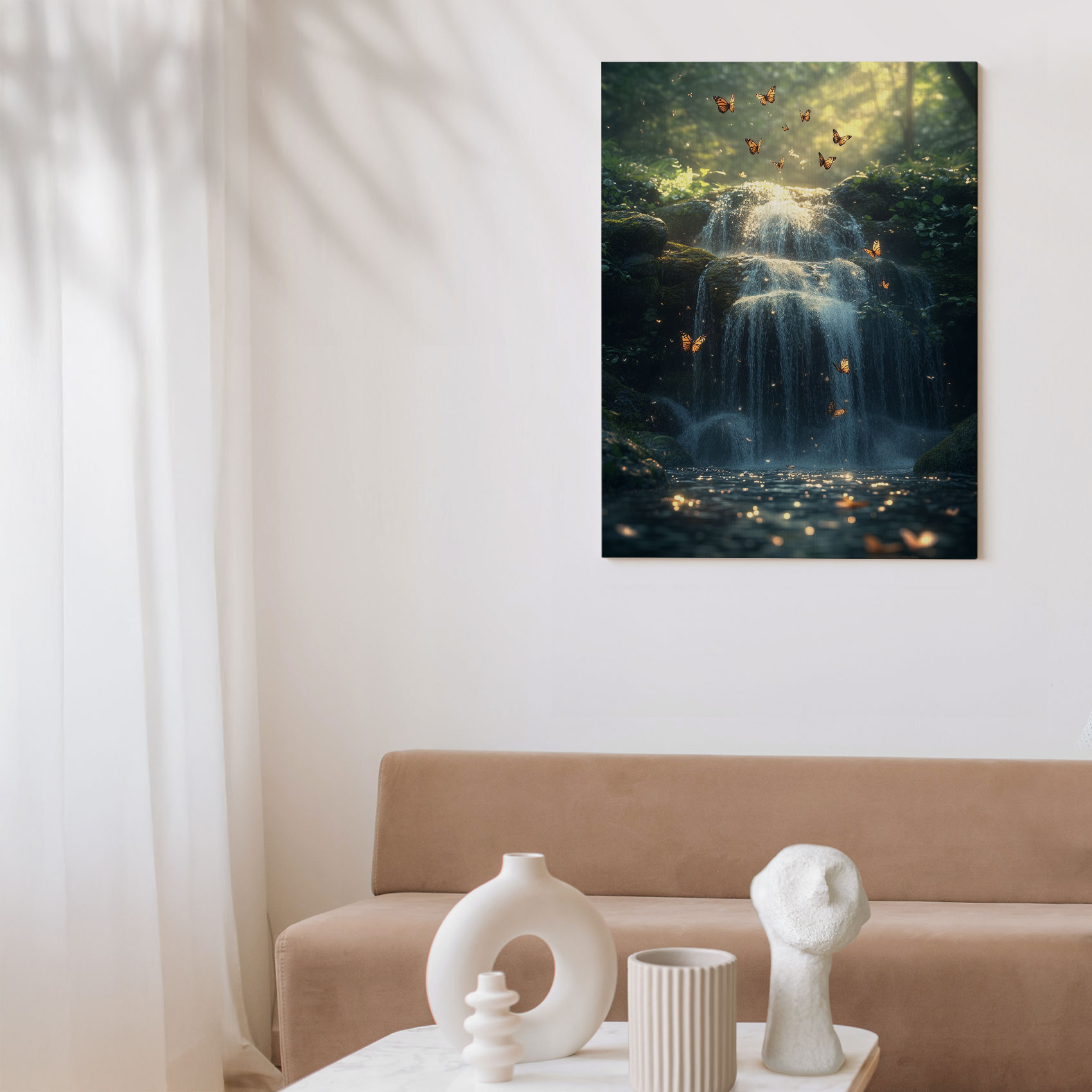 Terug naar collectie / Schilderijen / Bergen Schilderij / Mystieke waterval in sprookjesbos