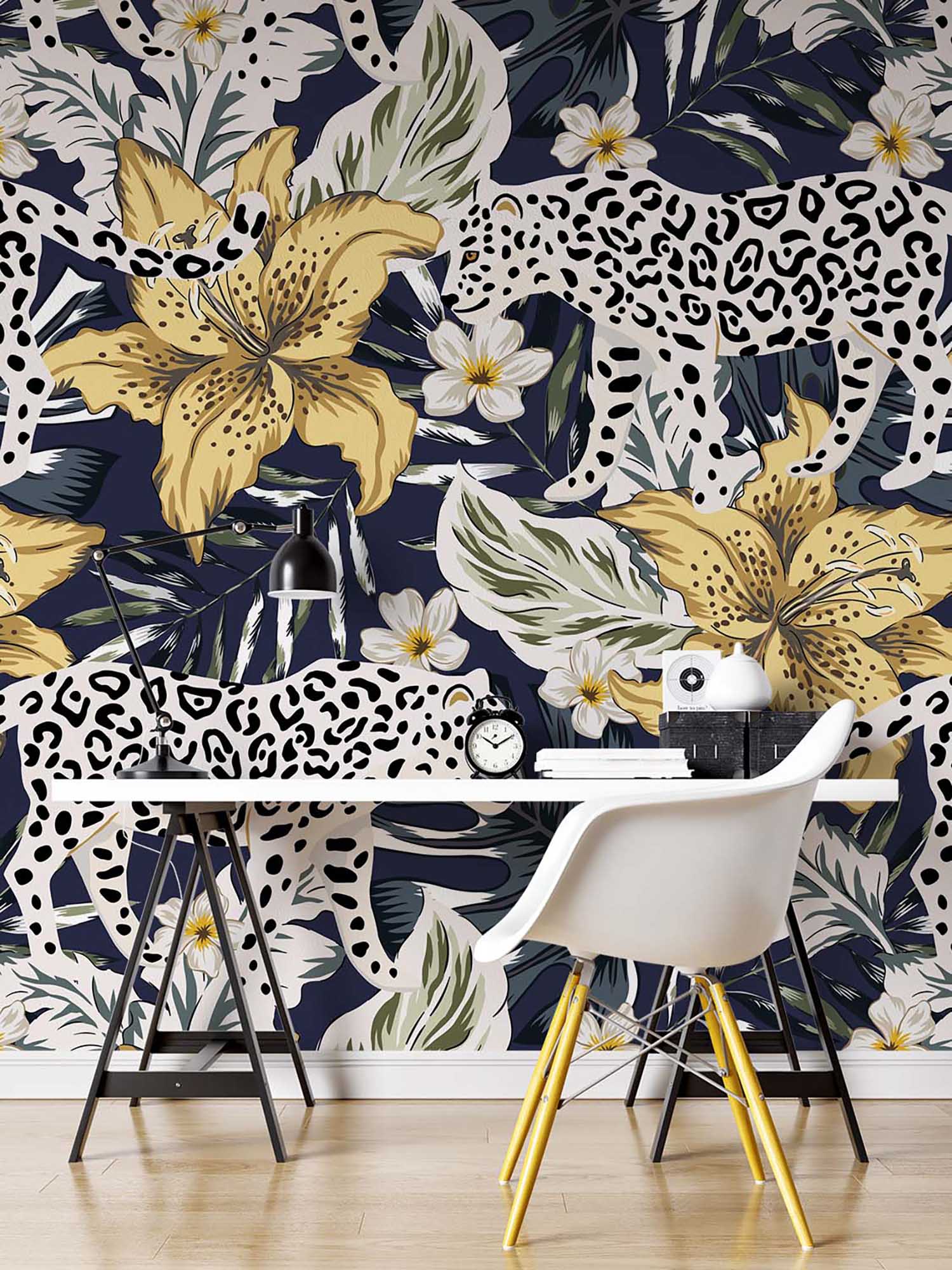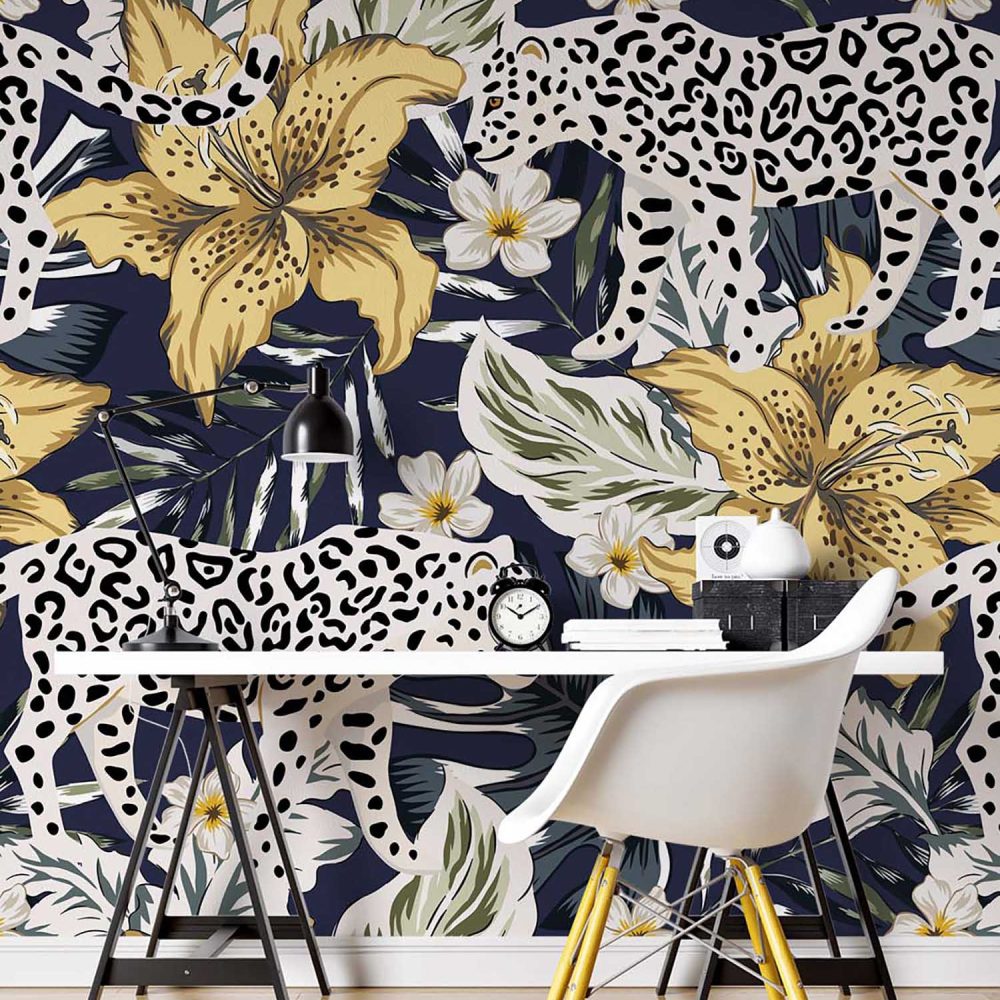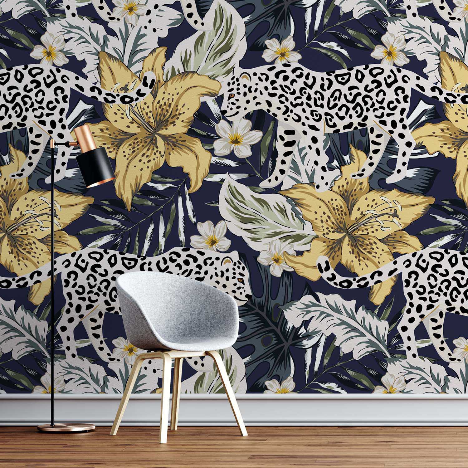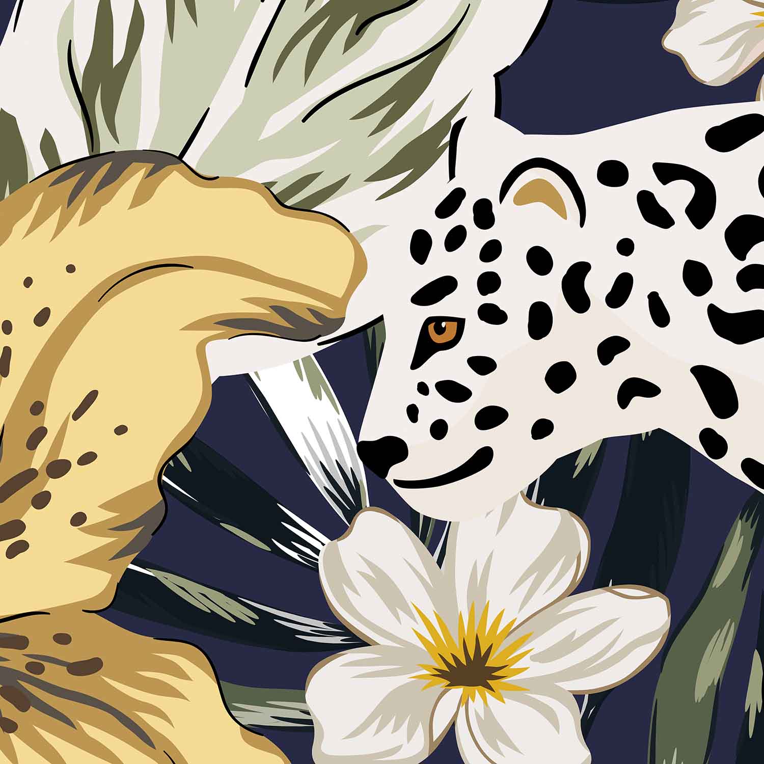 Terug naar collectie / Behang / Abstract behang / Nachtblauw Luipaard Flora Behang