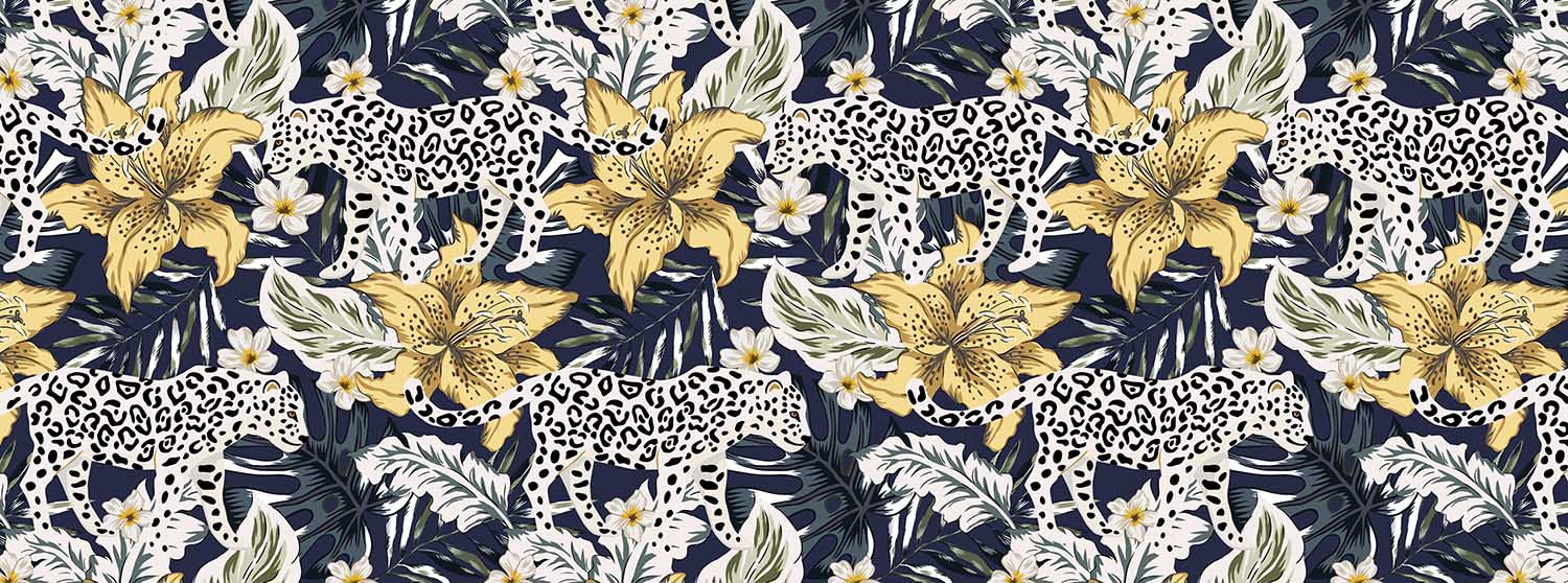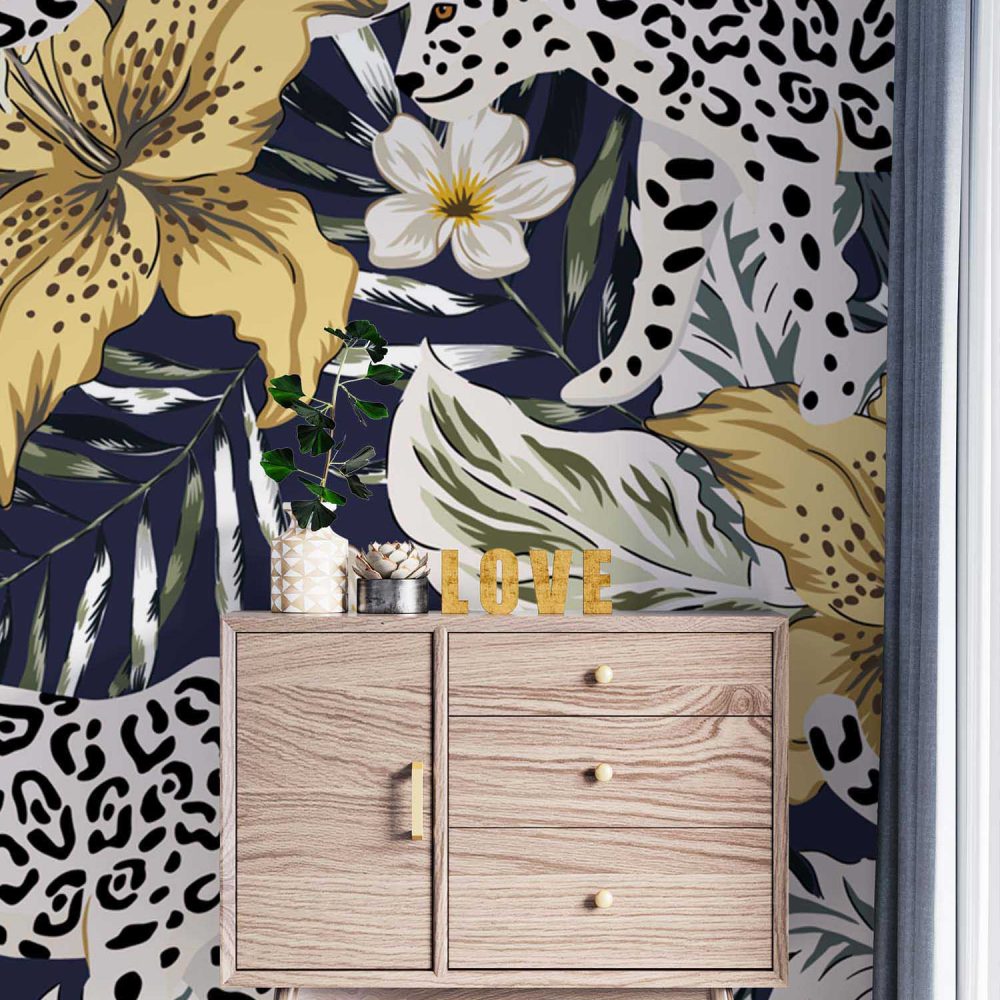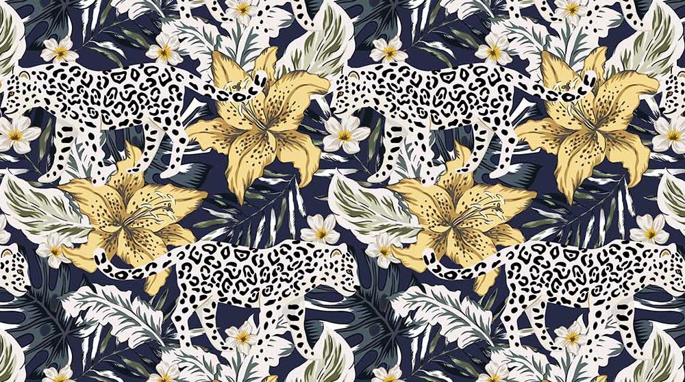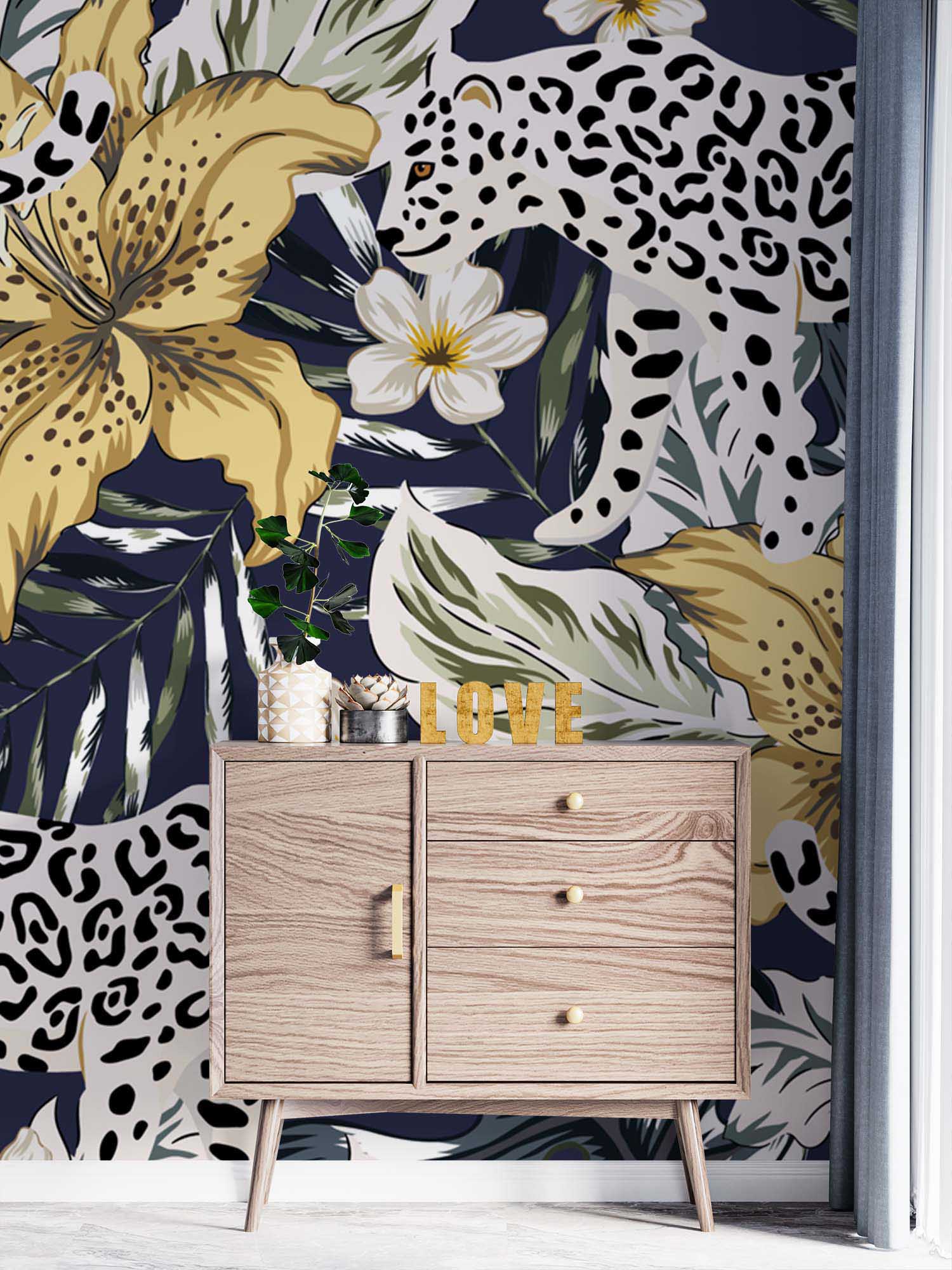 Terug naar collectie / Behang / Abstract behang / Nachtblauw Luipaard Flora Behang