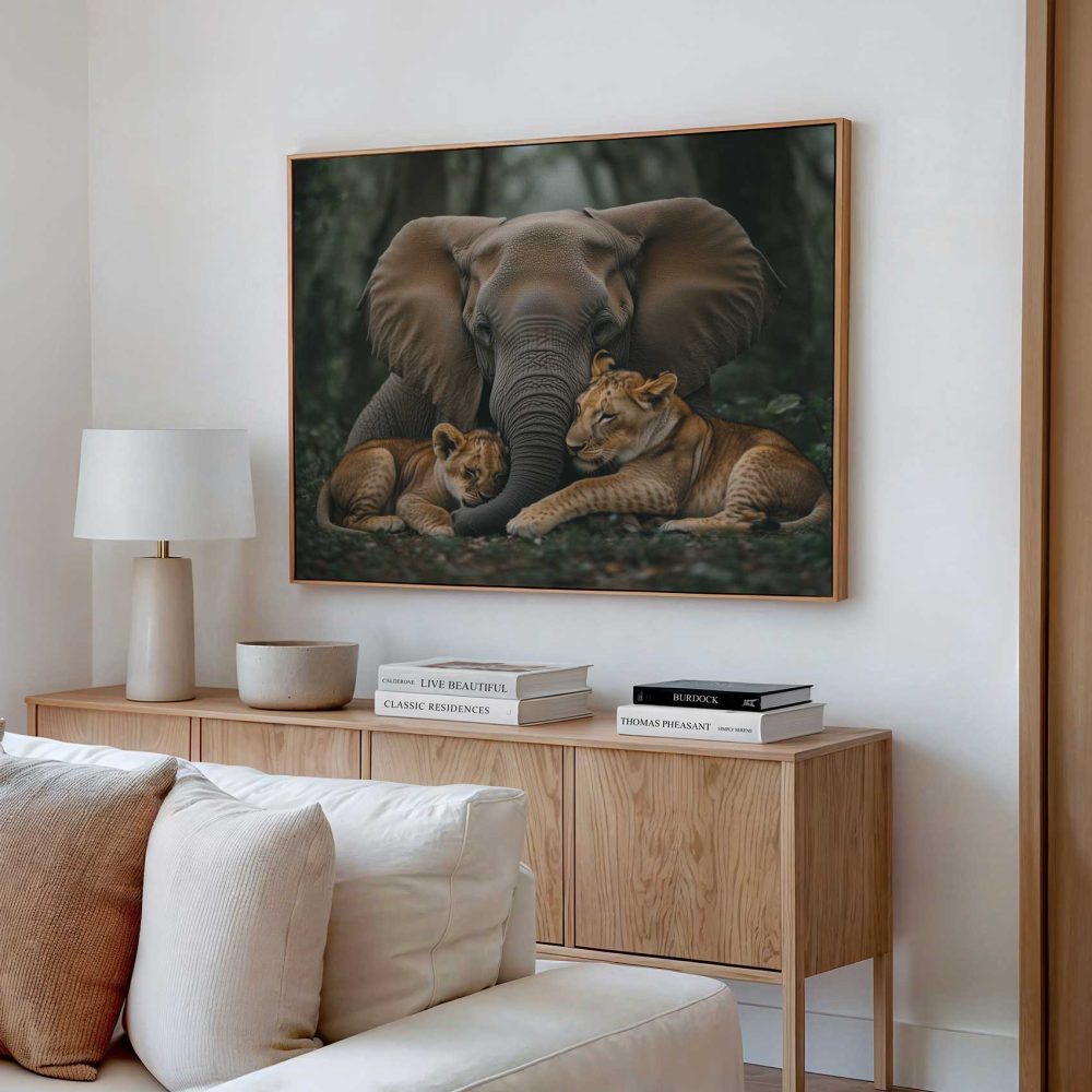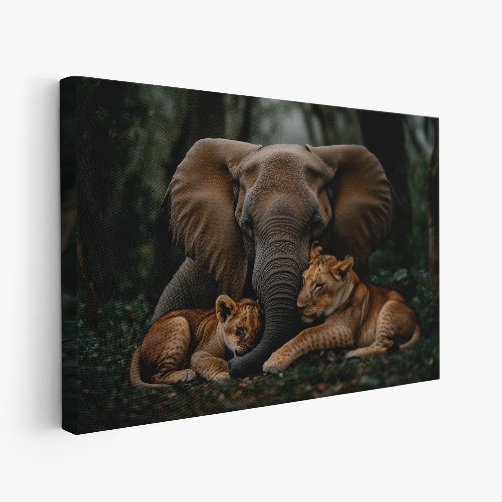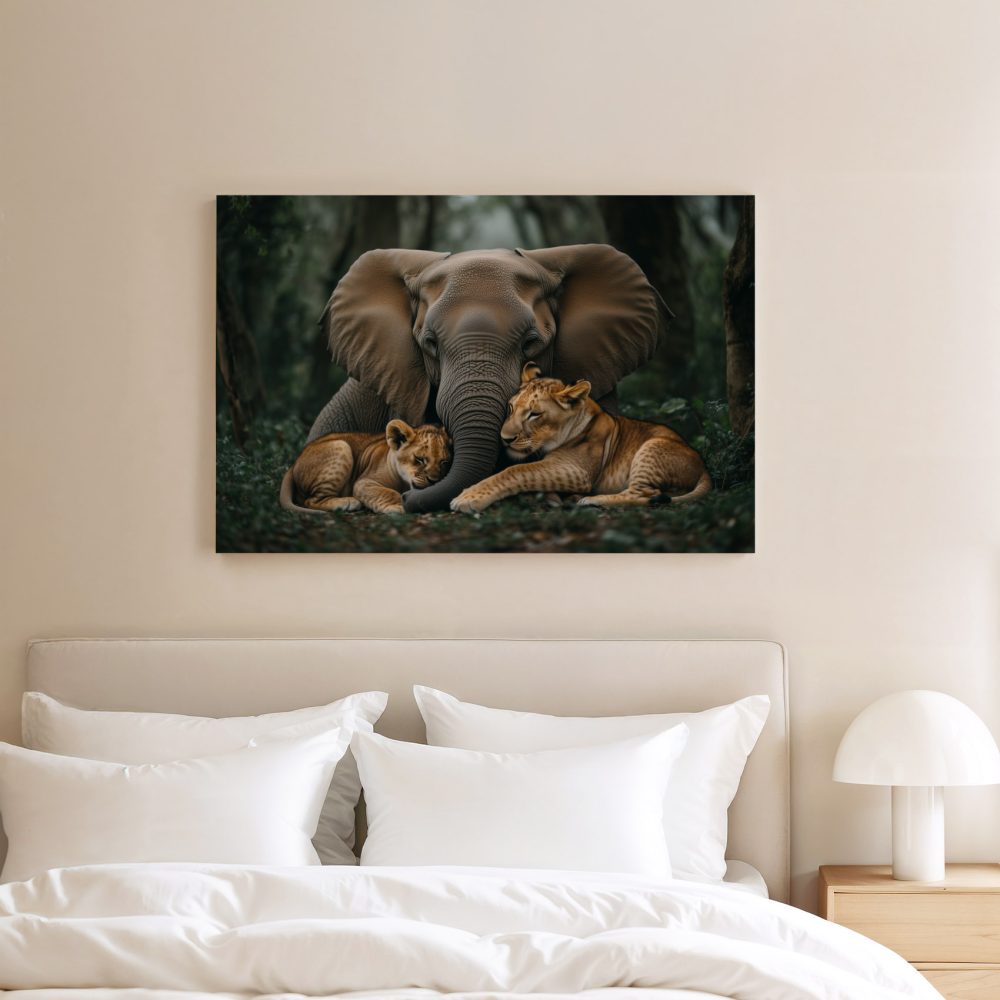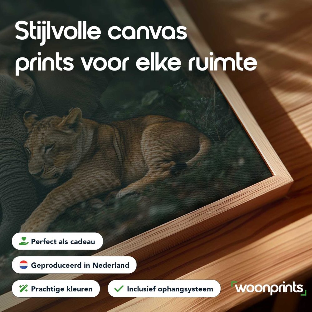 Terug naar collectie / Schilderijen / Bloemen Schilderij / Olifant en leeuwen in jungle
