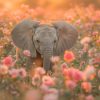 Terug naar collectie / Behang / Olifant omringd door bloemen behang