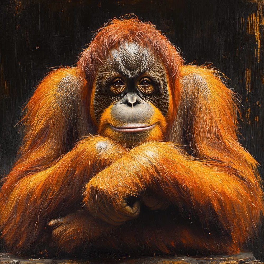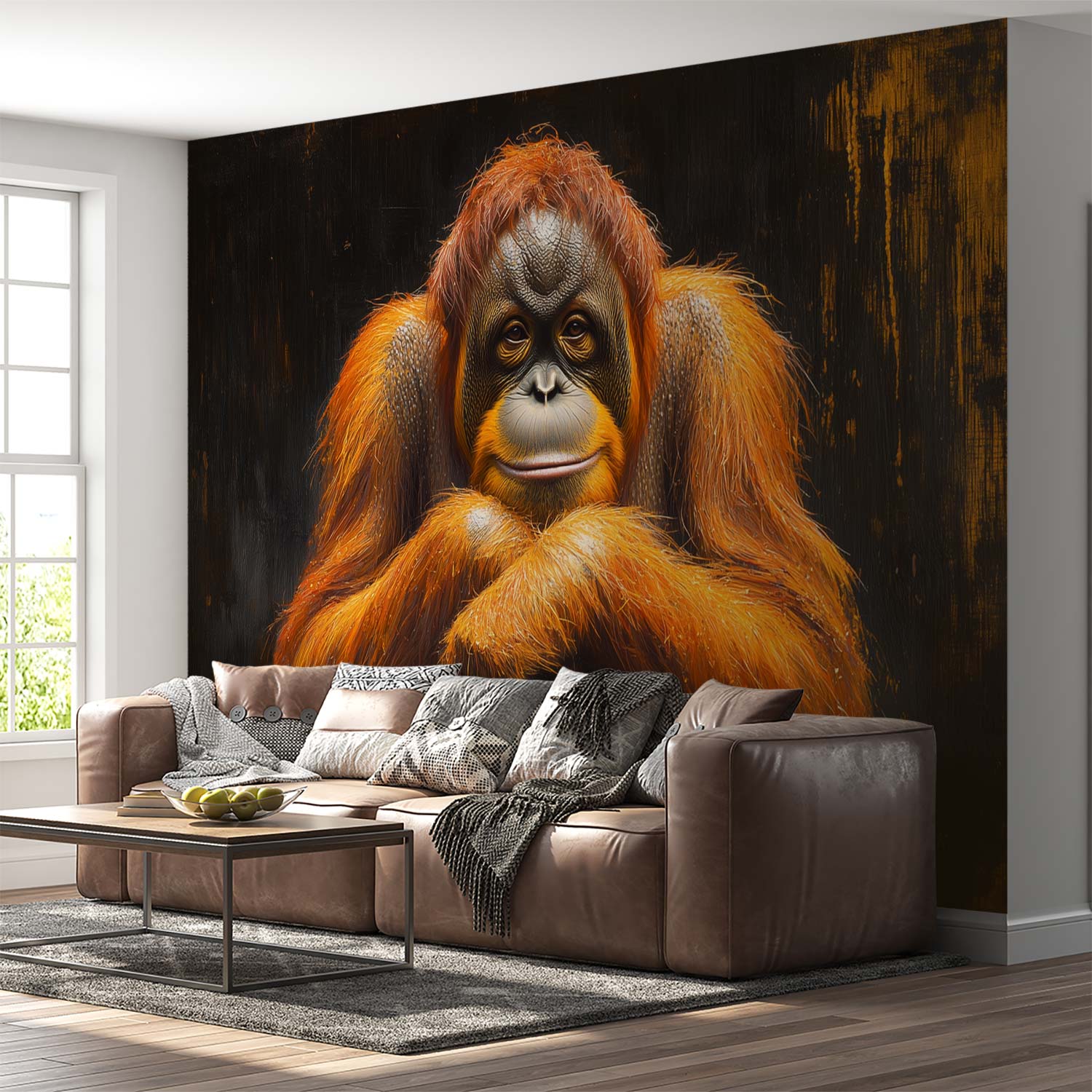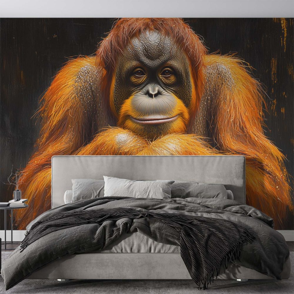 Terug naar collectie / Behang / Ontspannen orangoetan close-up behang