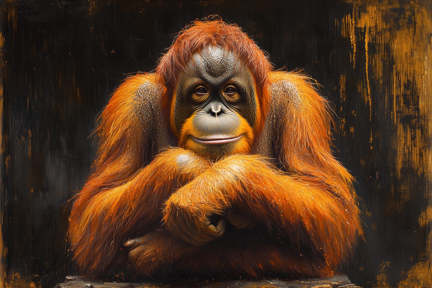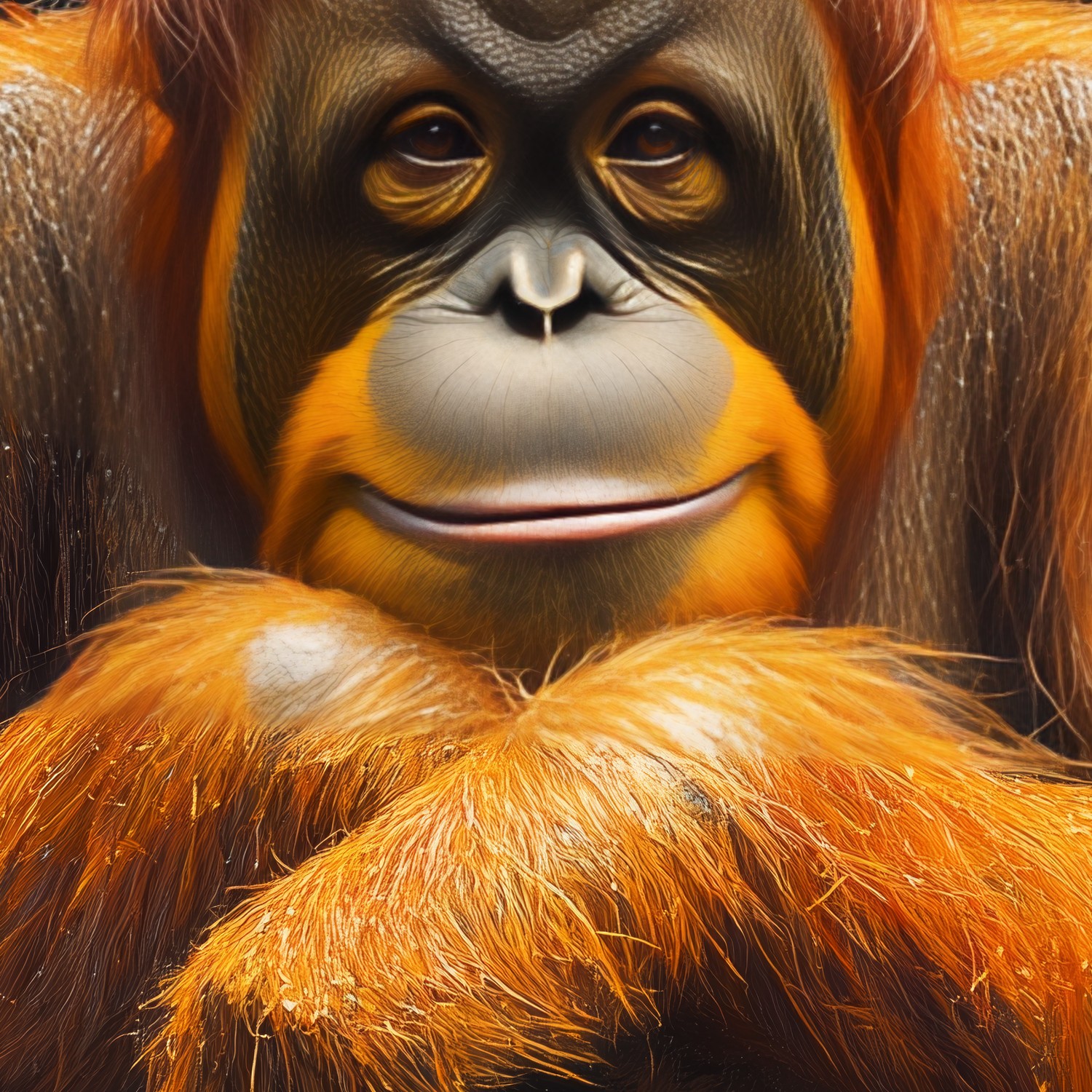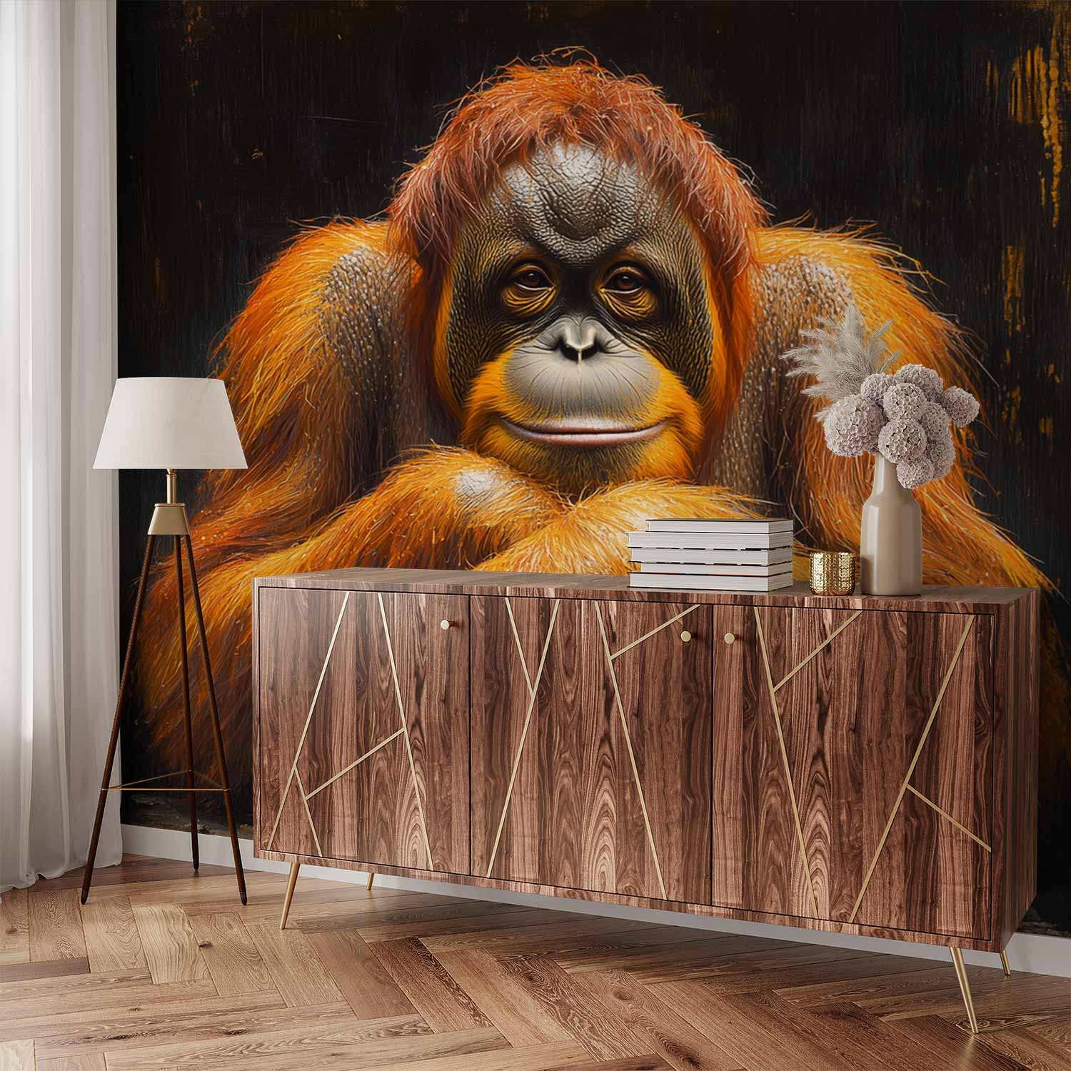 Terug naar collectie / Behang / Ontspannen orangoetan close-up behang