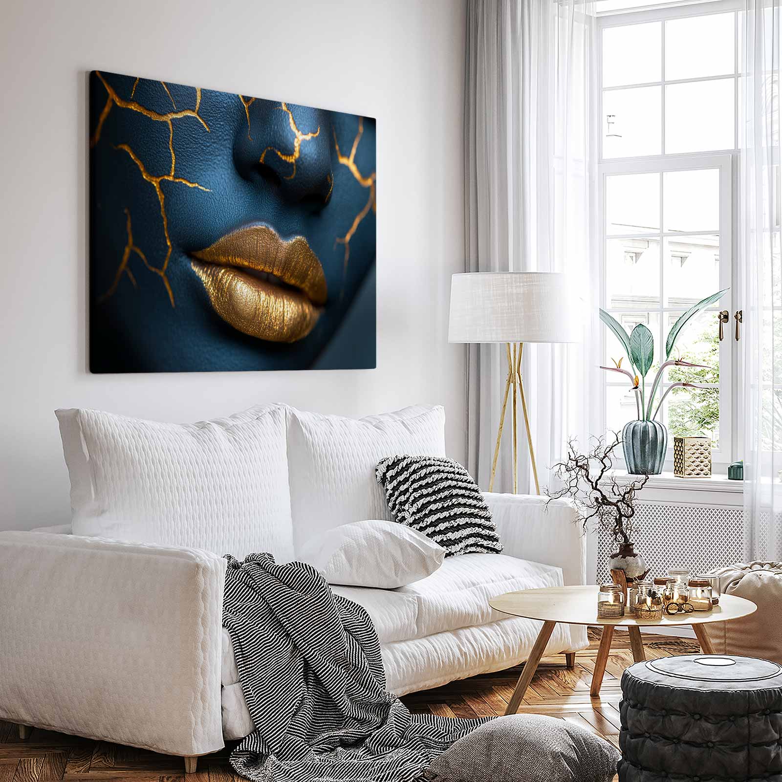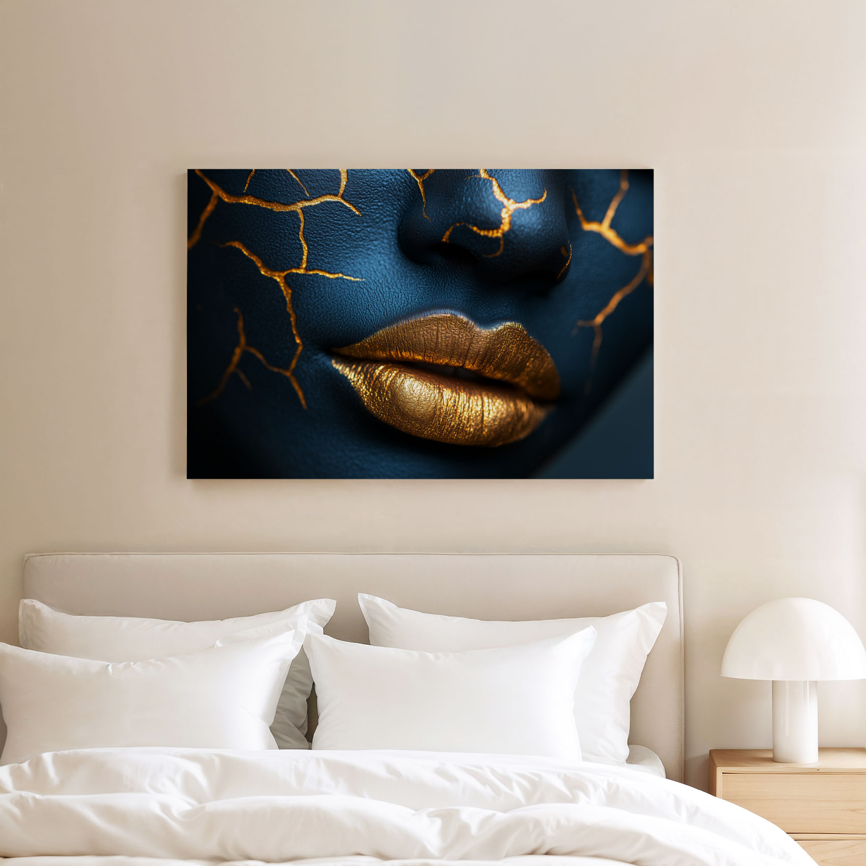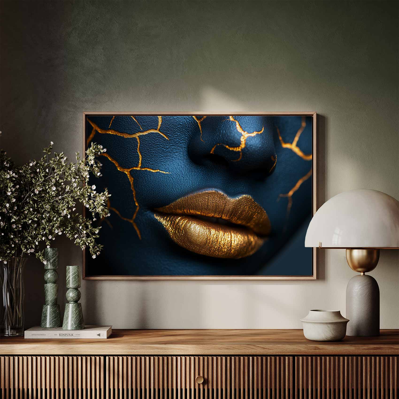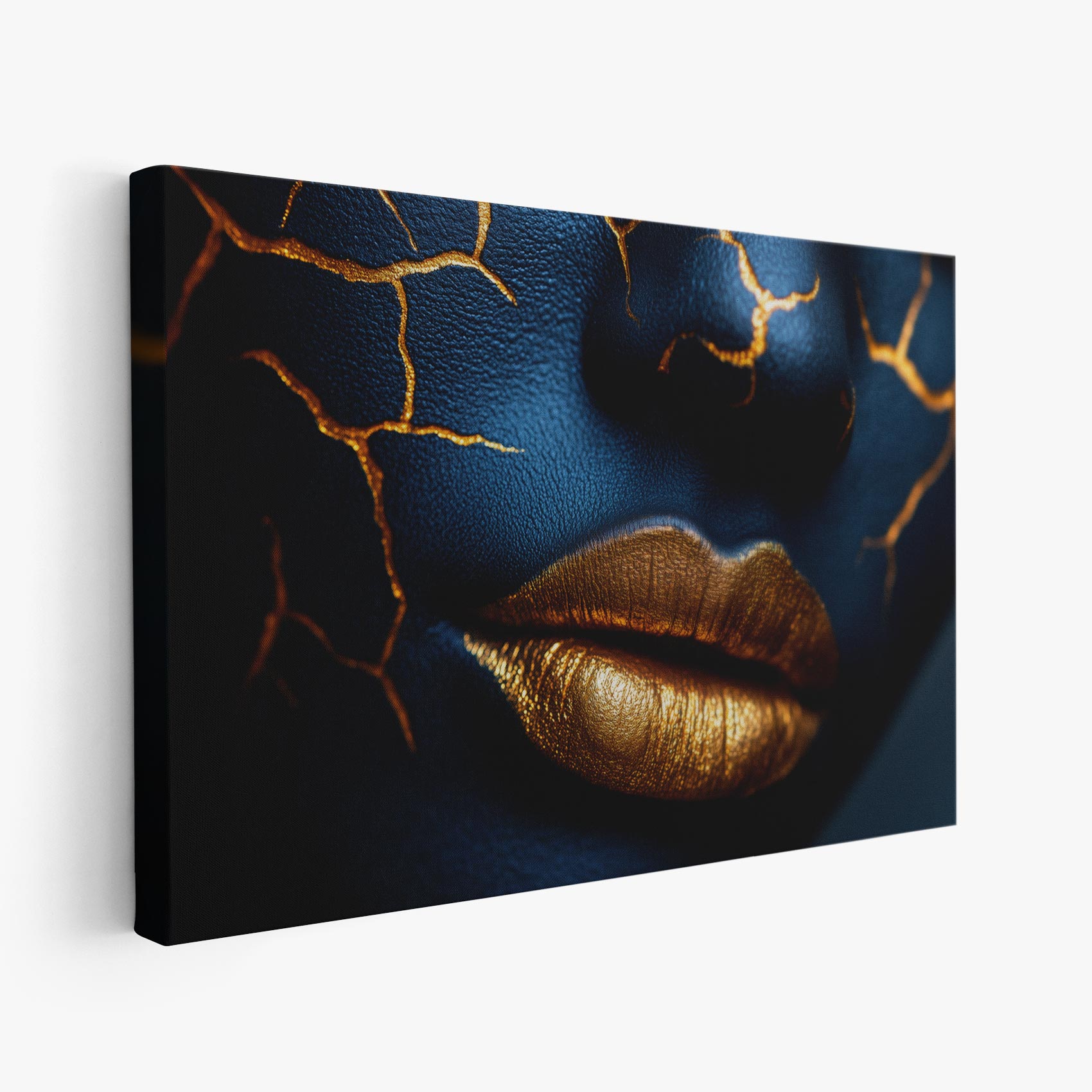 Terug naar collectie / Schilderijen / Abstract Schilderij / Opvallende blauw-gouden make-up