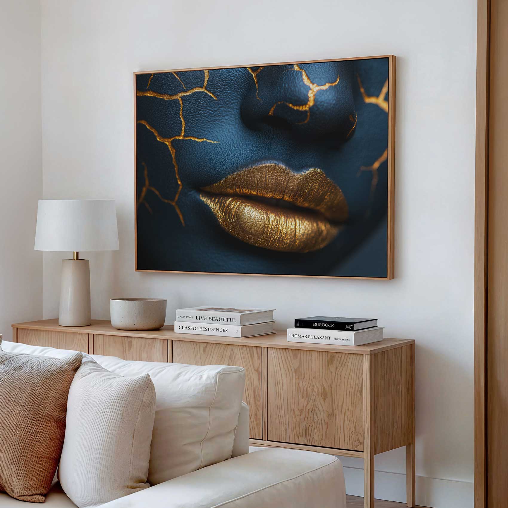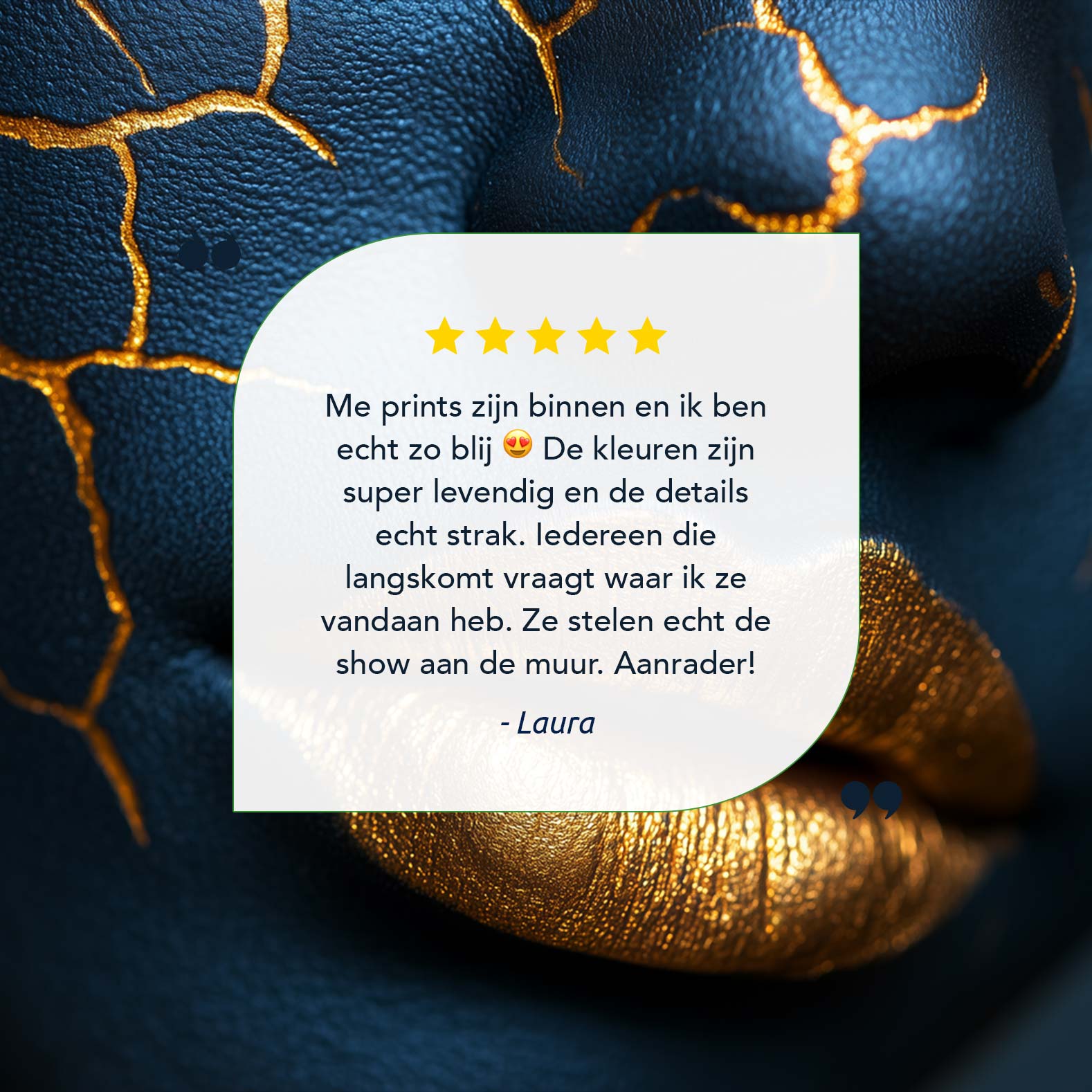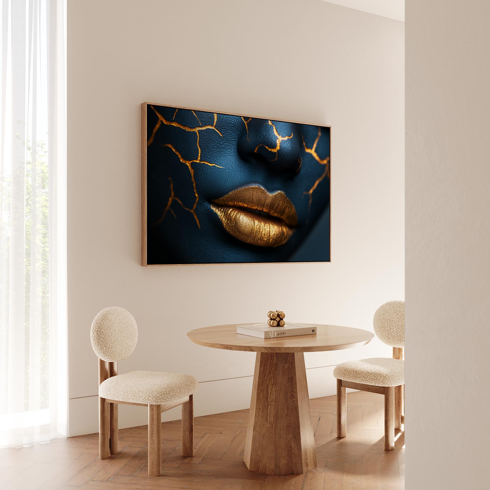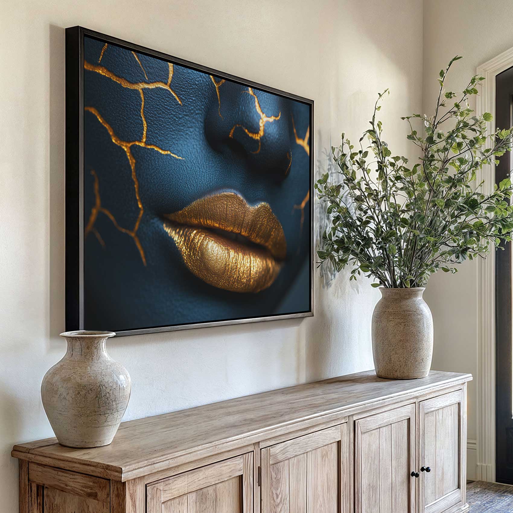 Terug naar collectie / Schilderijen / Abstract Schilderij / Opvallende blauw-gouden make-up