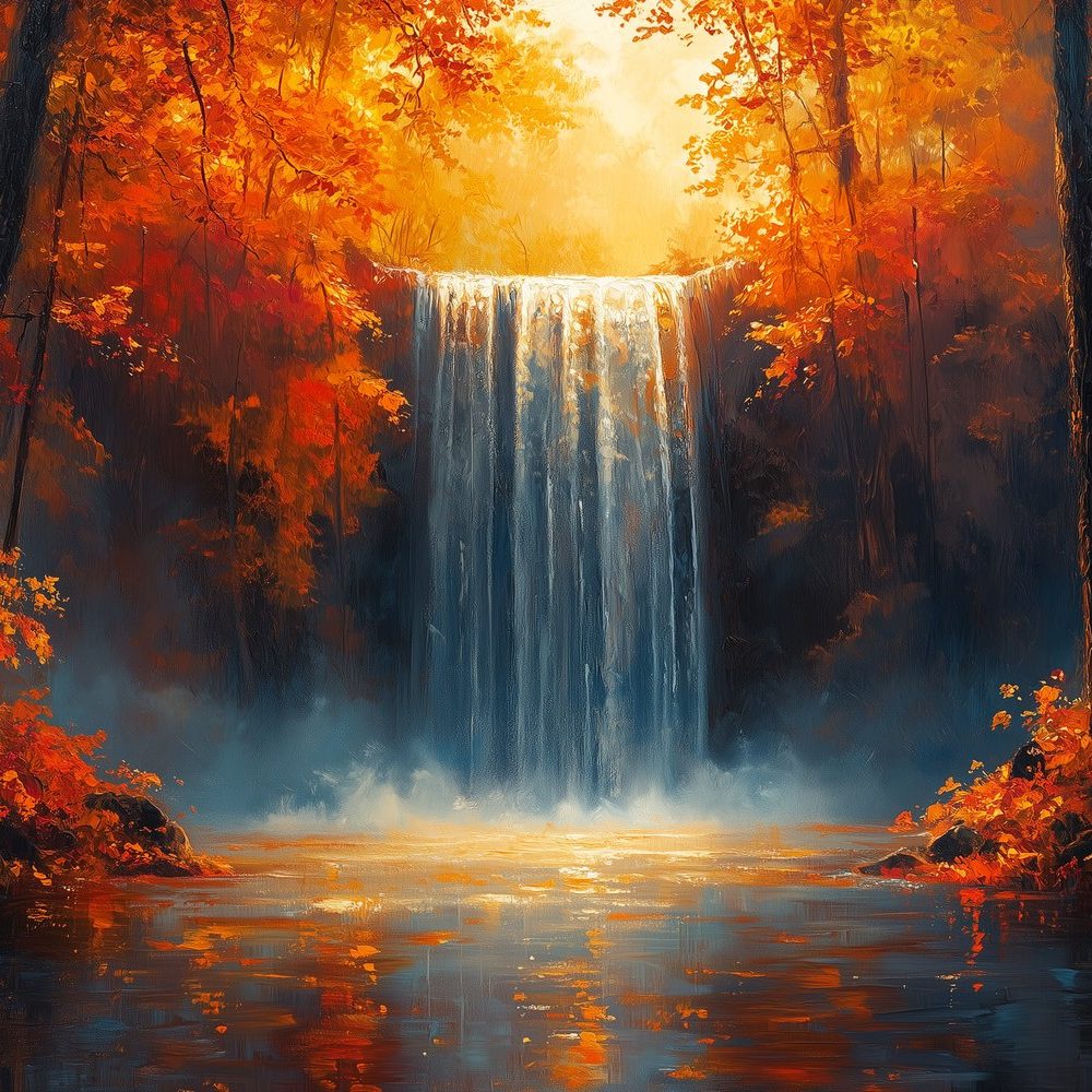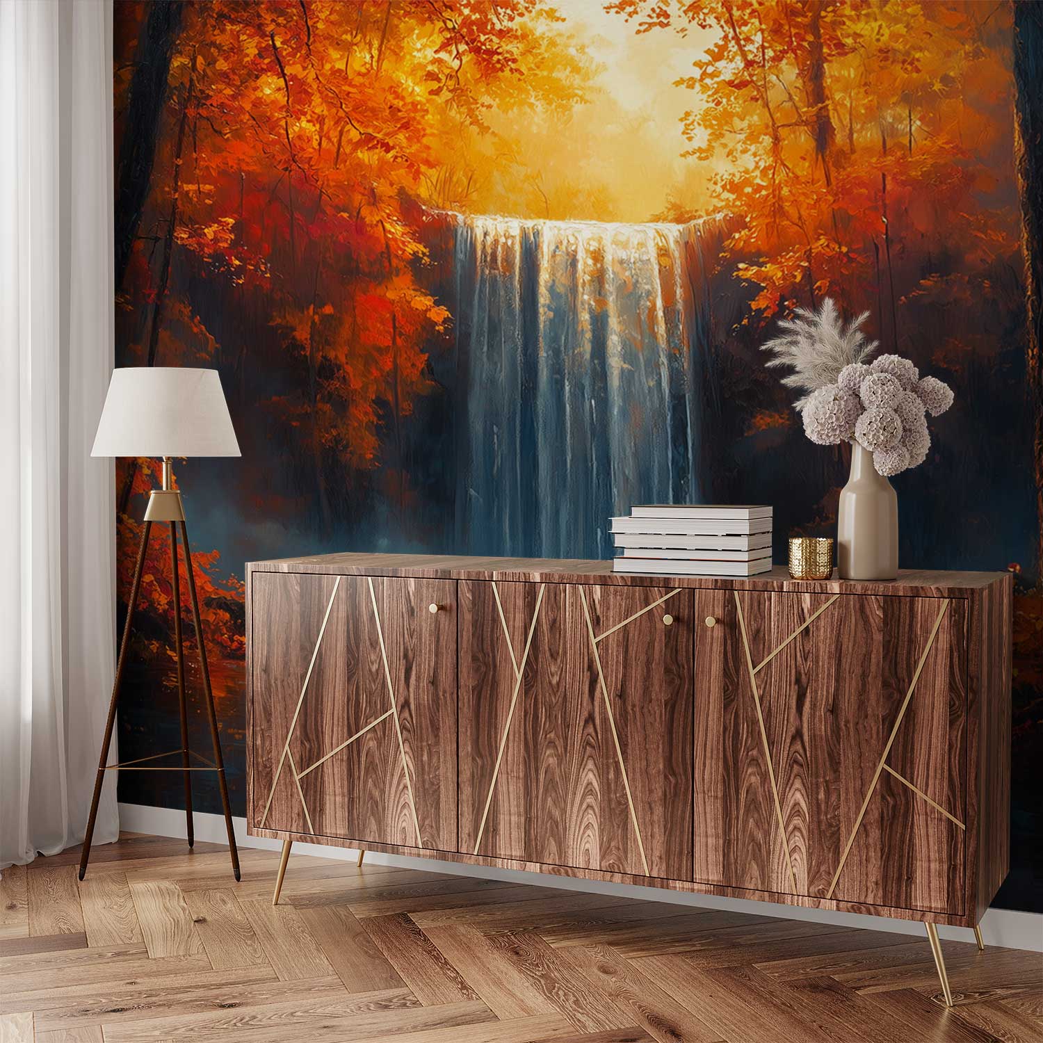 Terug naar collectie / Behang / Oranje waterval bos behang