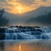 Oranje waterval in bos behang