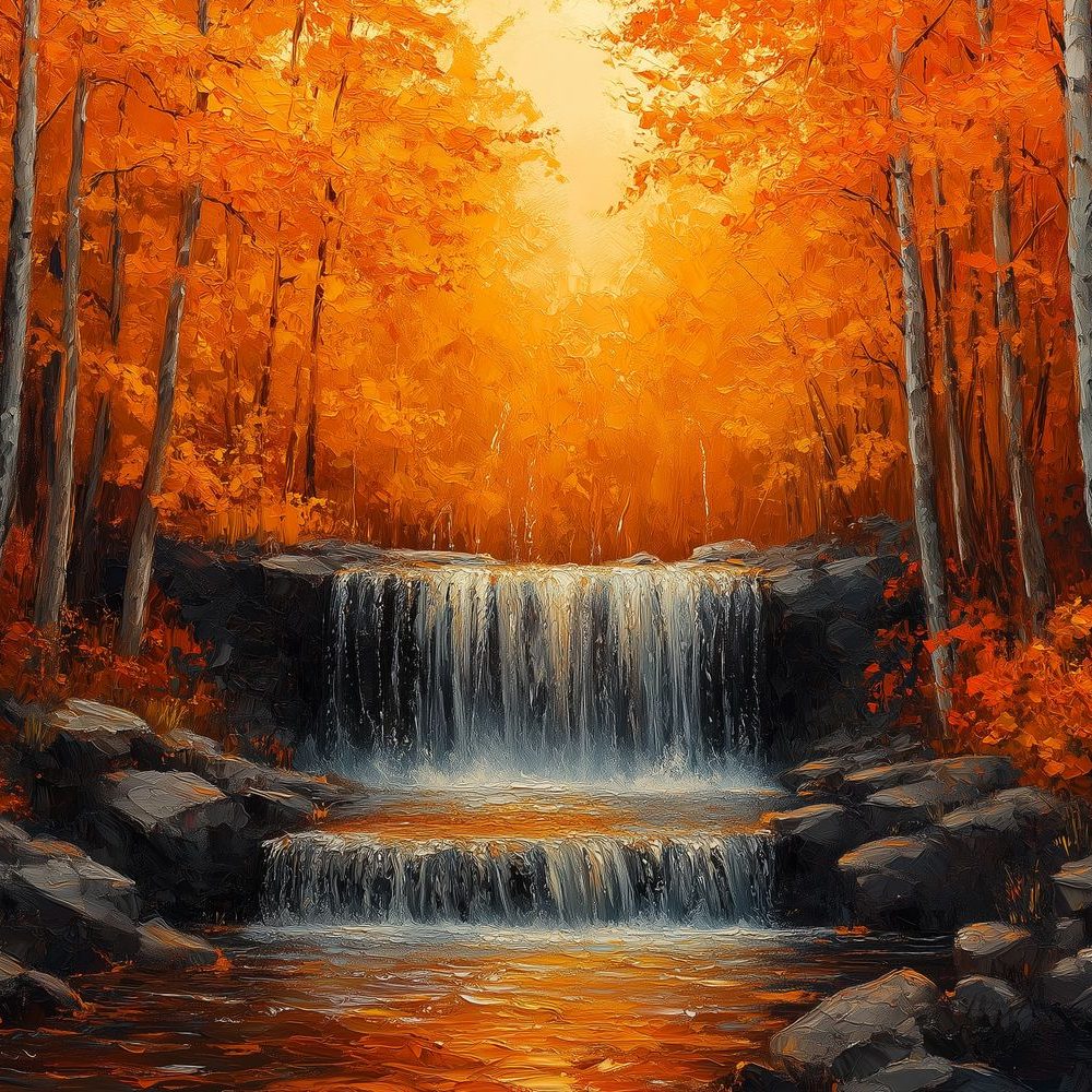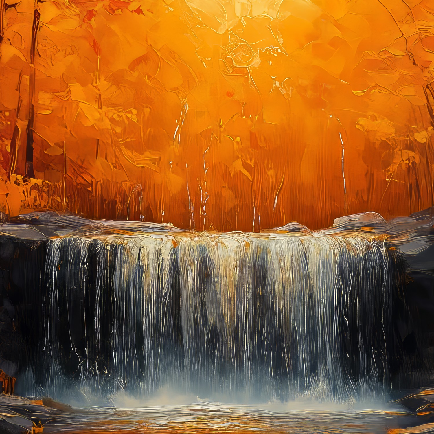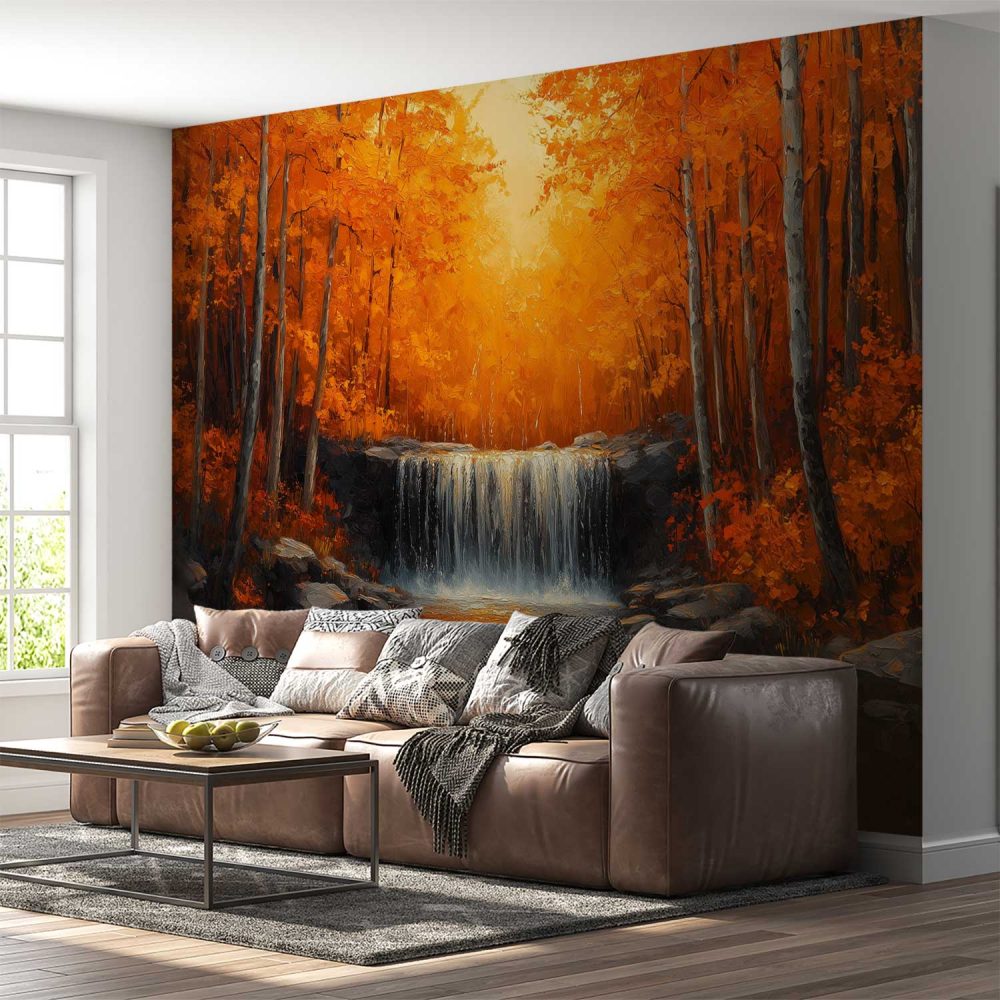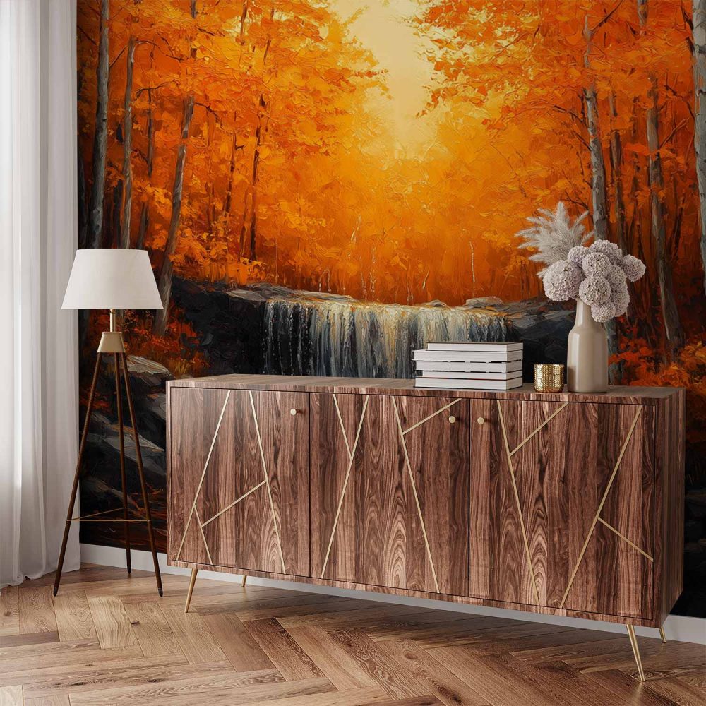 Terug naar collectie / Behang / Oranje waterval in bos behang