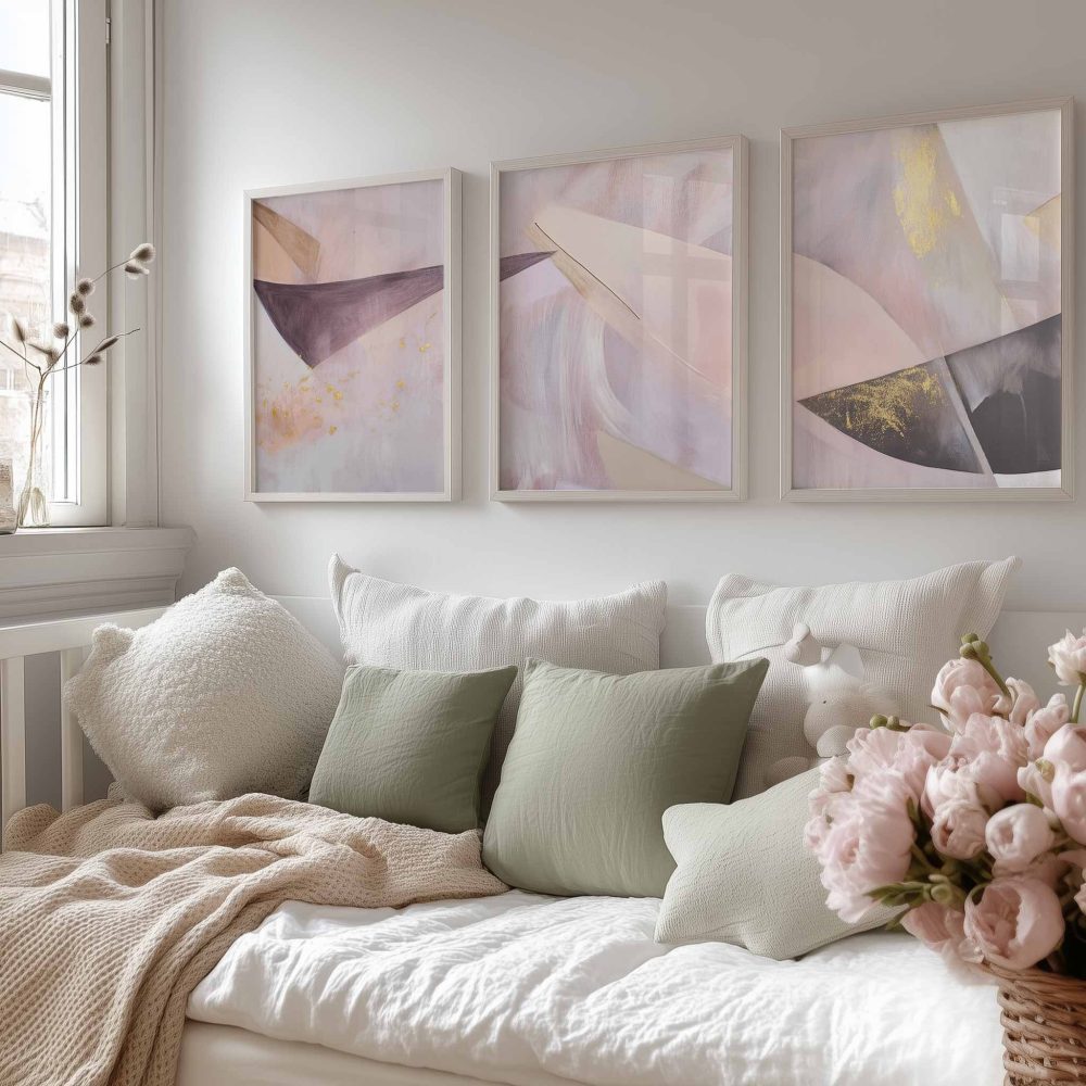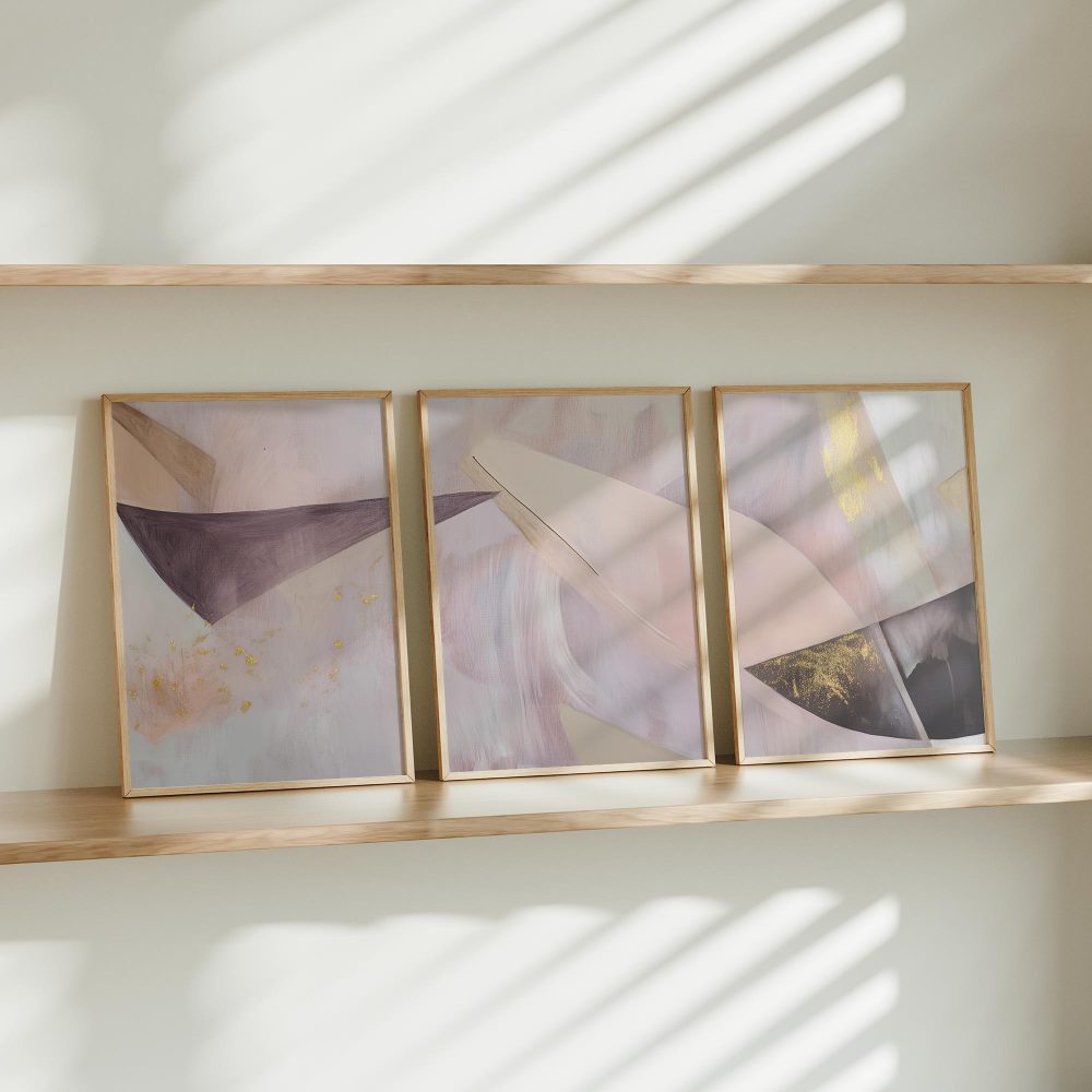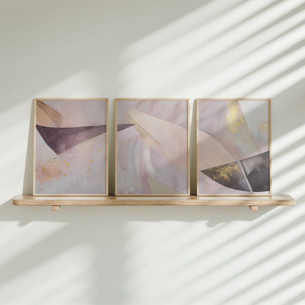 Terug naar collectie / Kinderkamer posters / Pastel Dromen: Speelse Abstracte Vormen in Roze en Goud