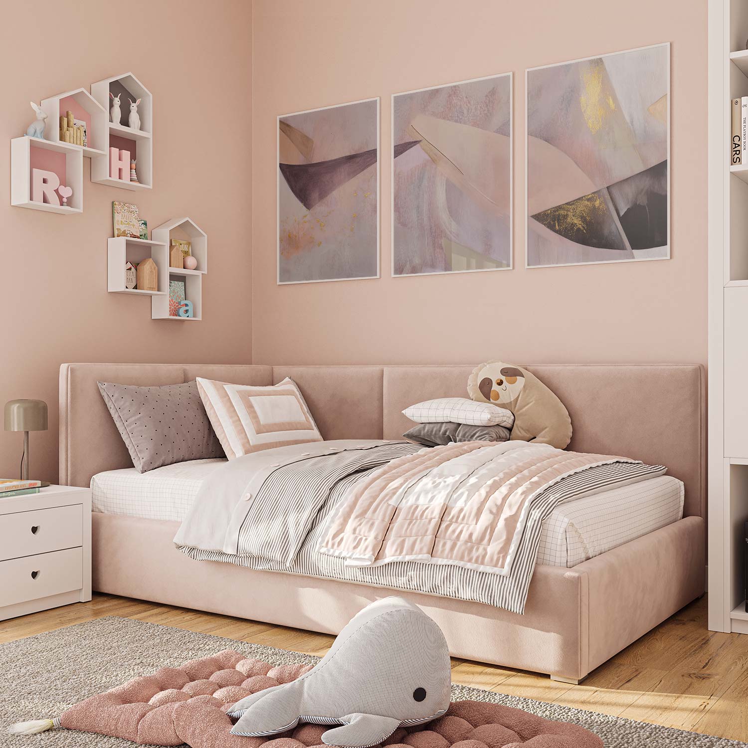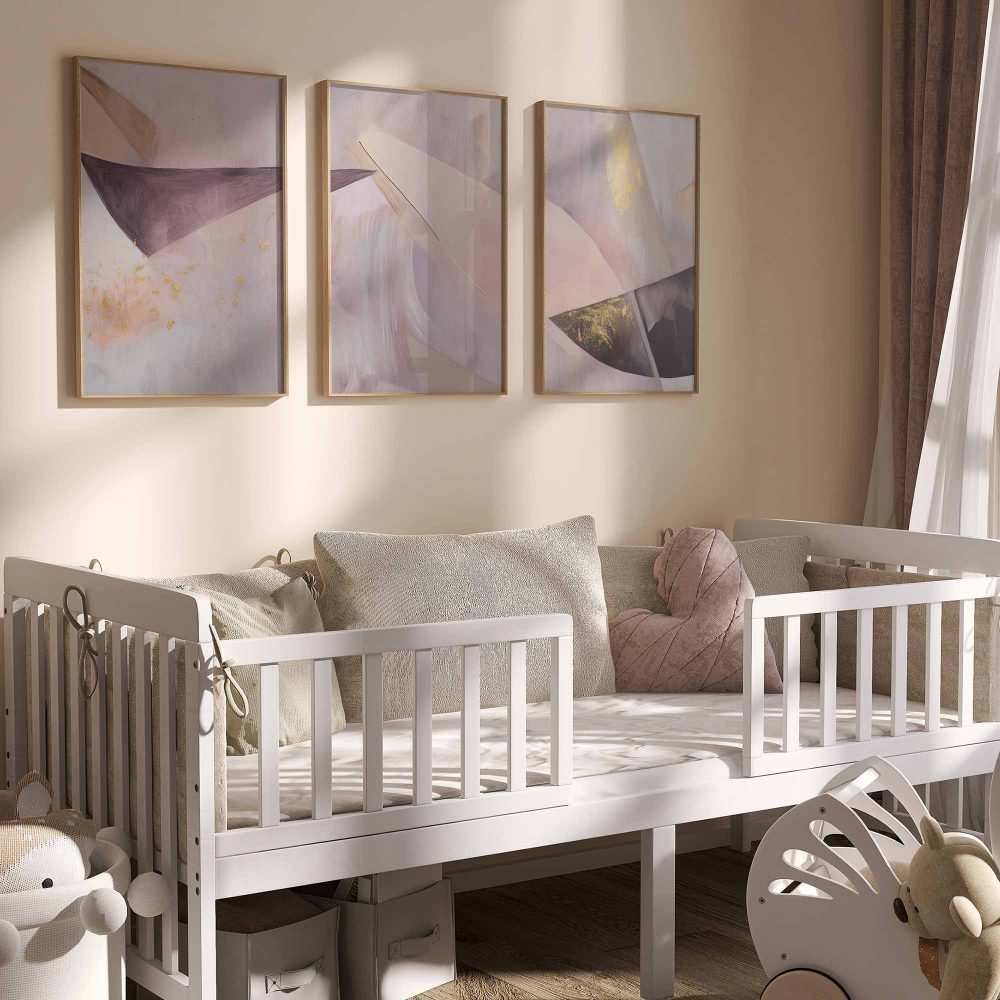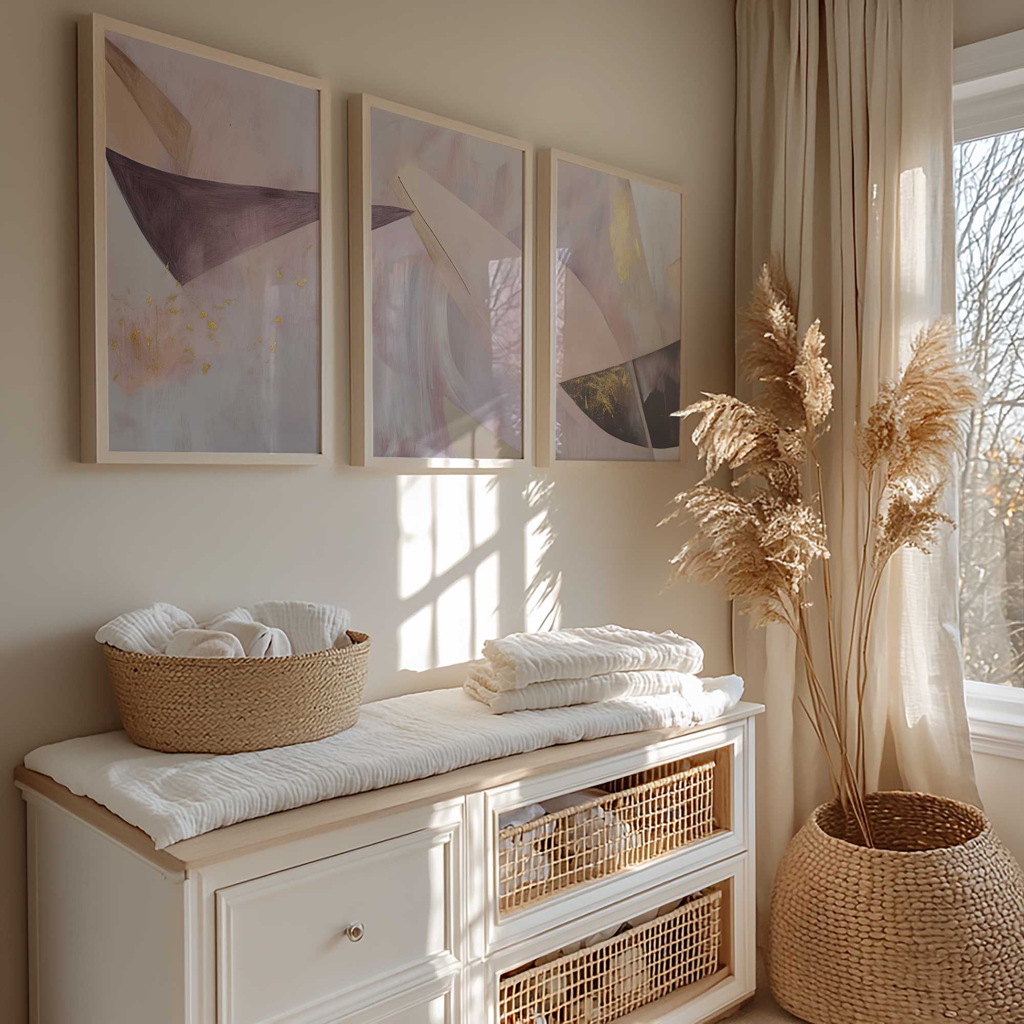 Terug naar collectie / Kinderkamer posters / Pastel Dromen: Speelse Abstracte Vormen in Roze en Goud