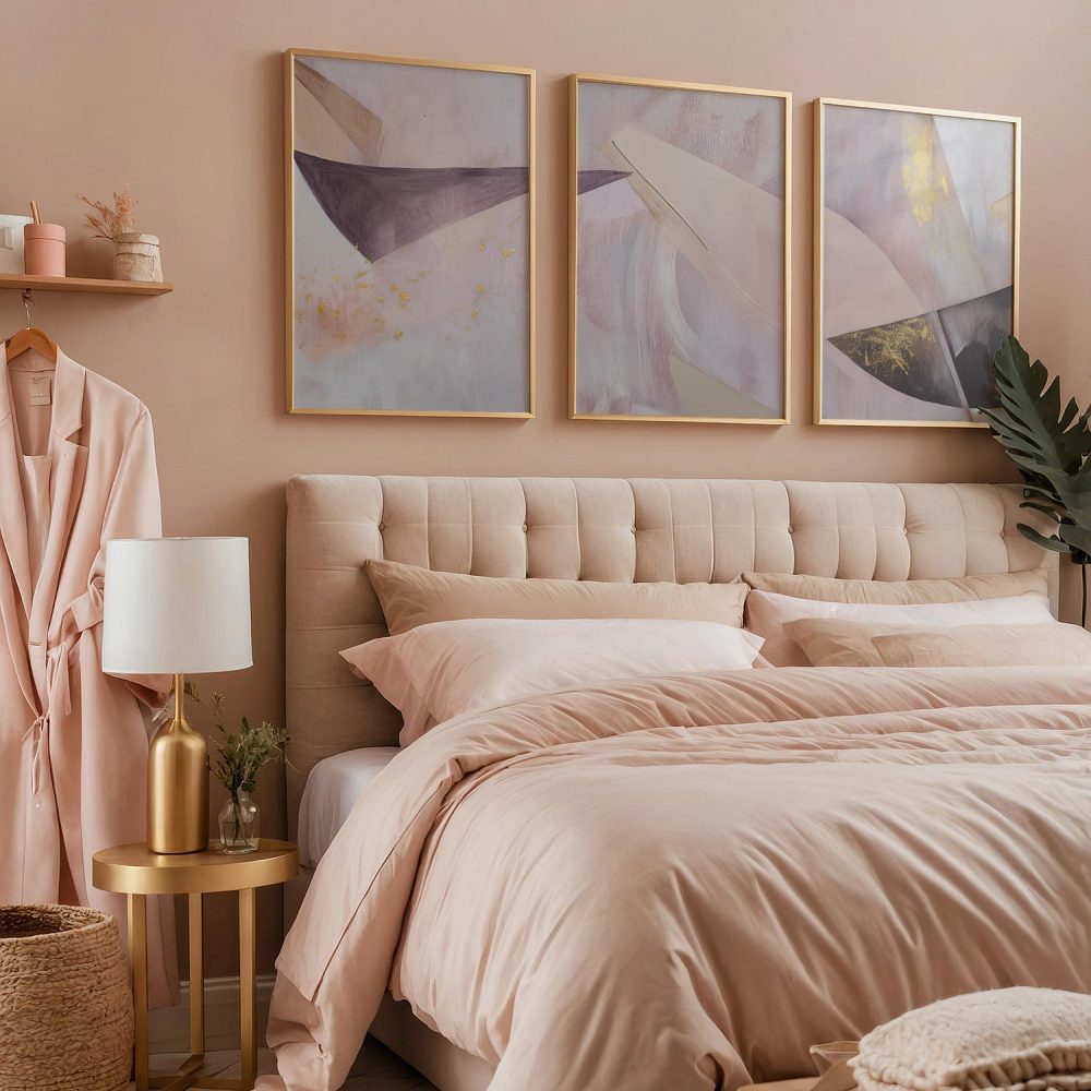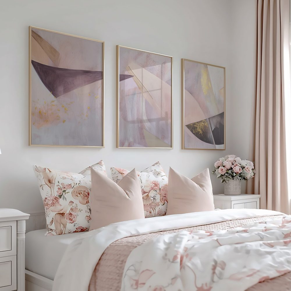 Pastel Dromen: Speelse Abstracte Vormen in Roze en Goud