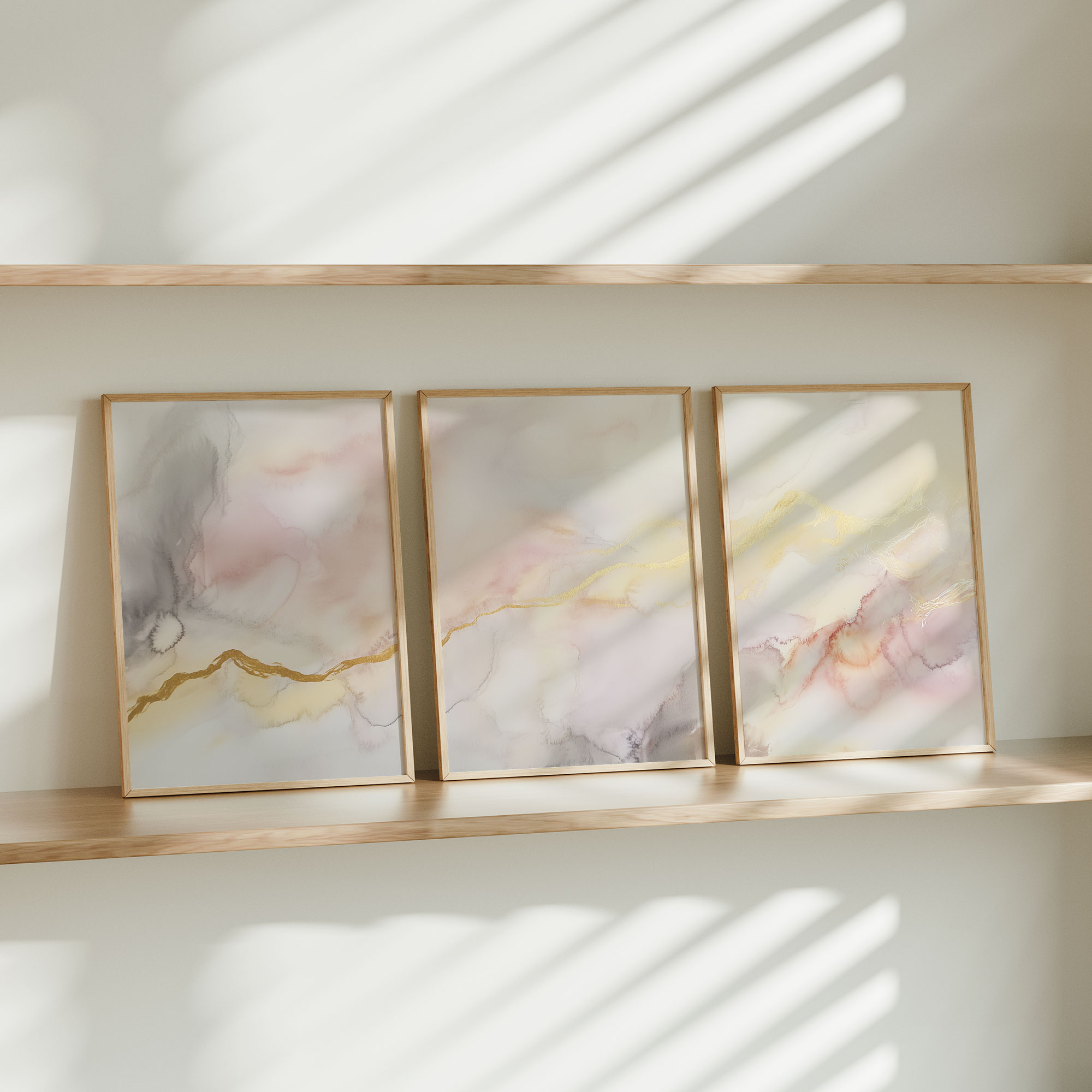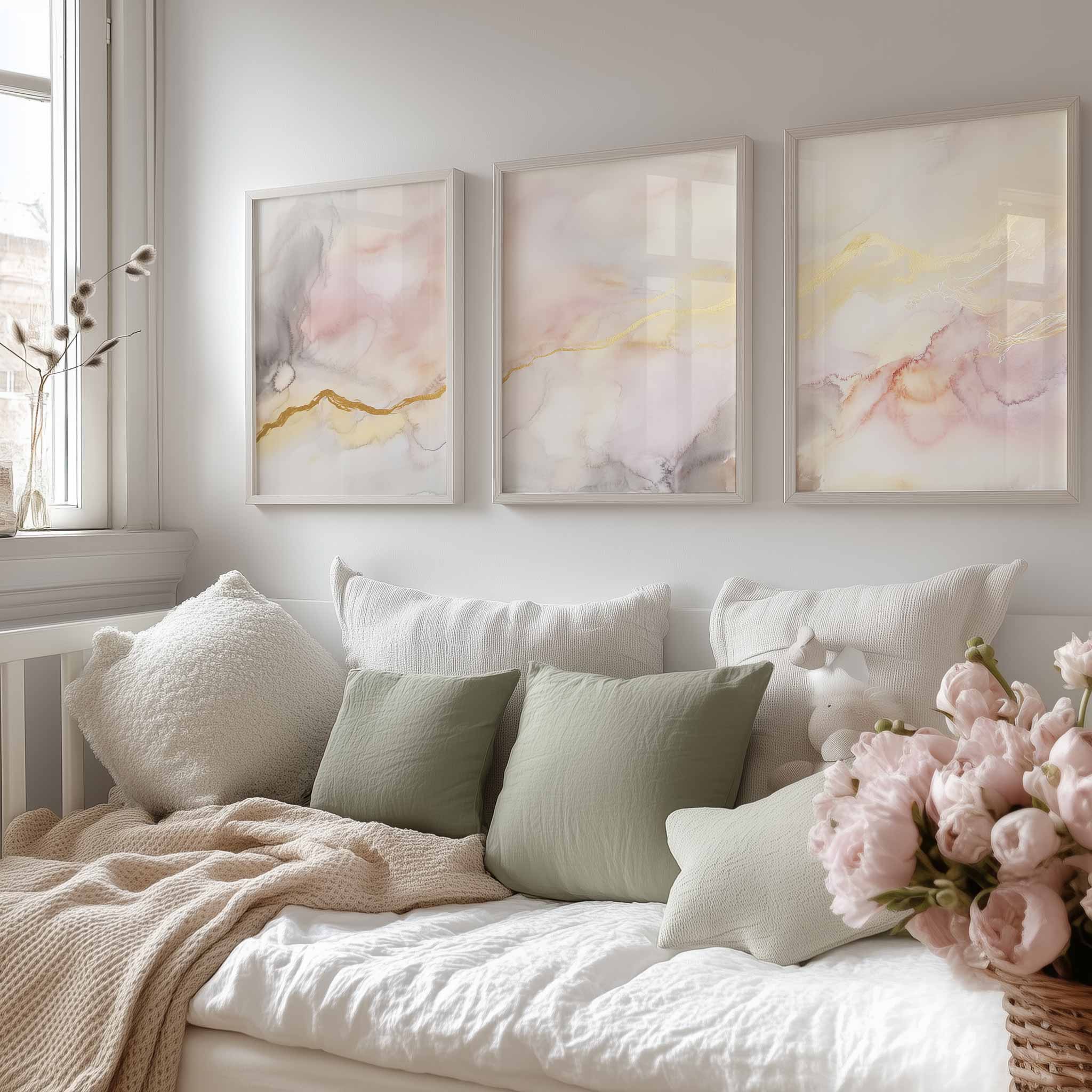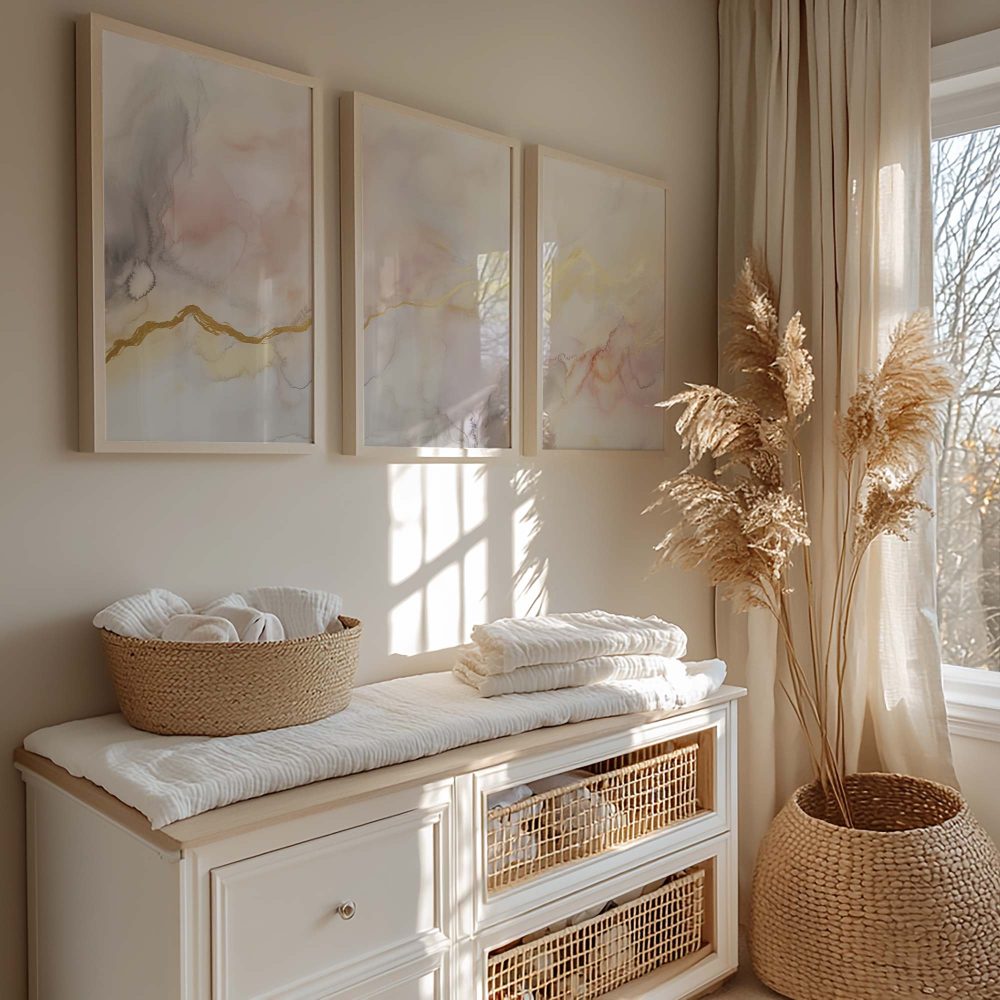 Terug naar collectie / Kinderkamer posters / Pastel Dromen: Speelse Abstracte Wanddecoratie in Wit en Goud
