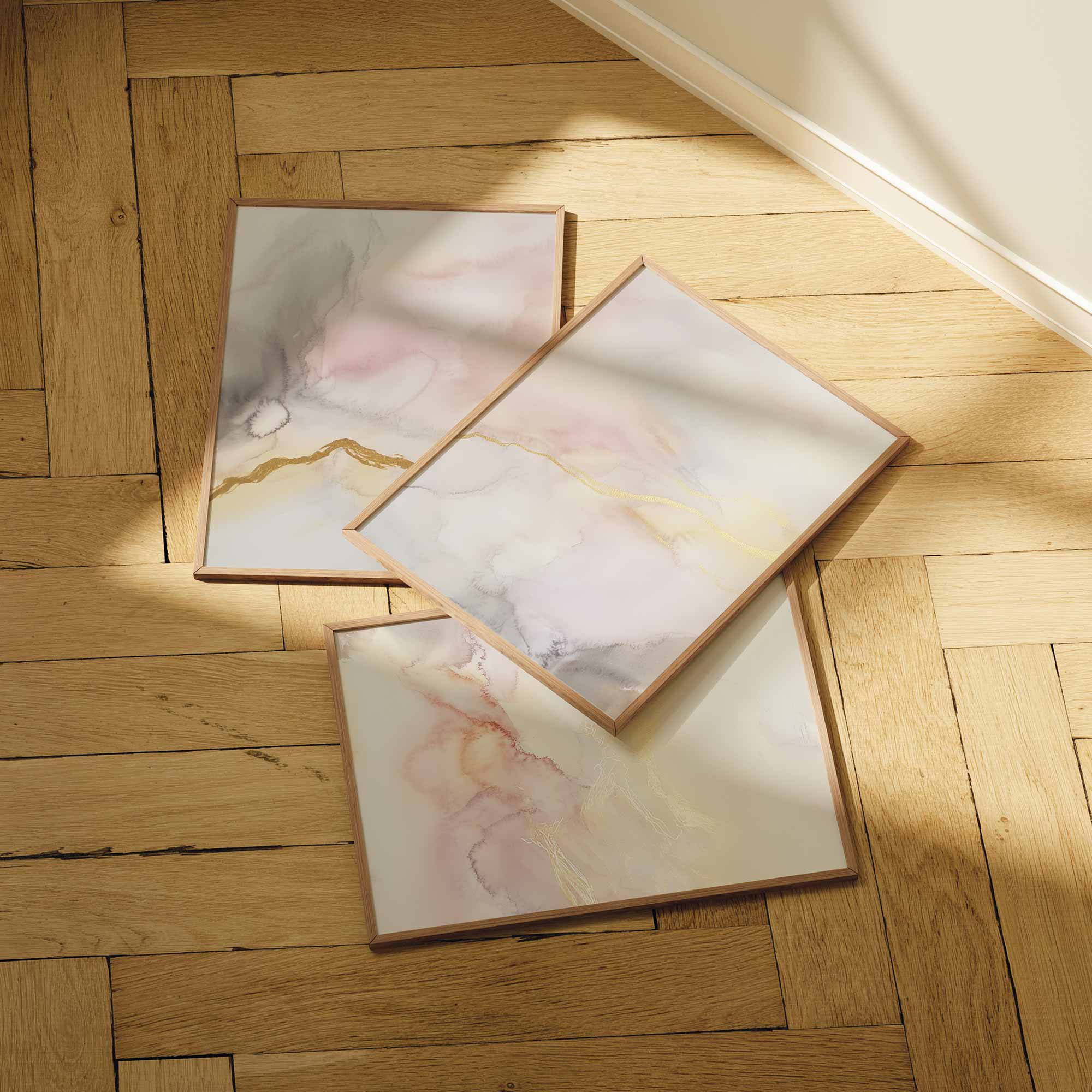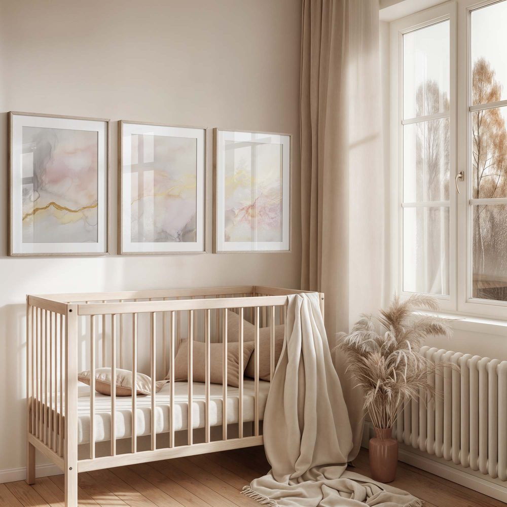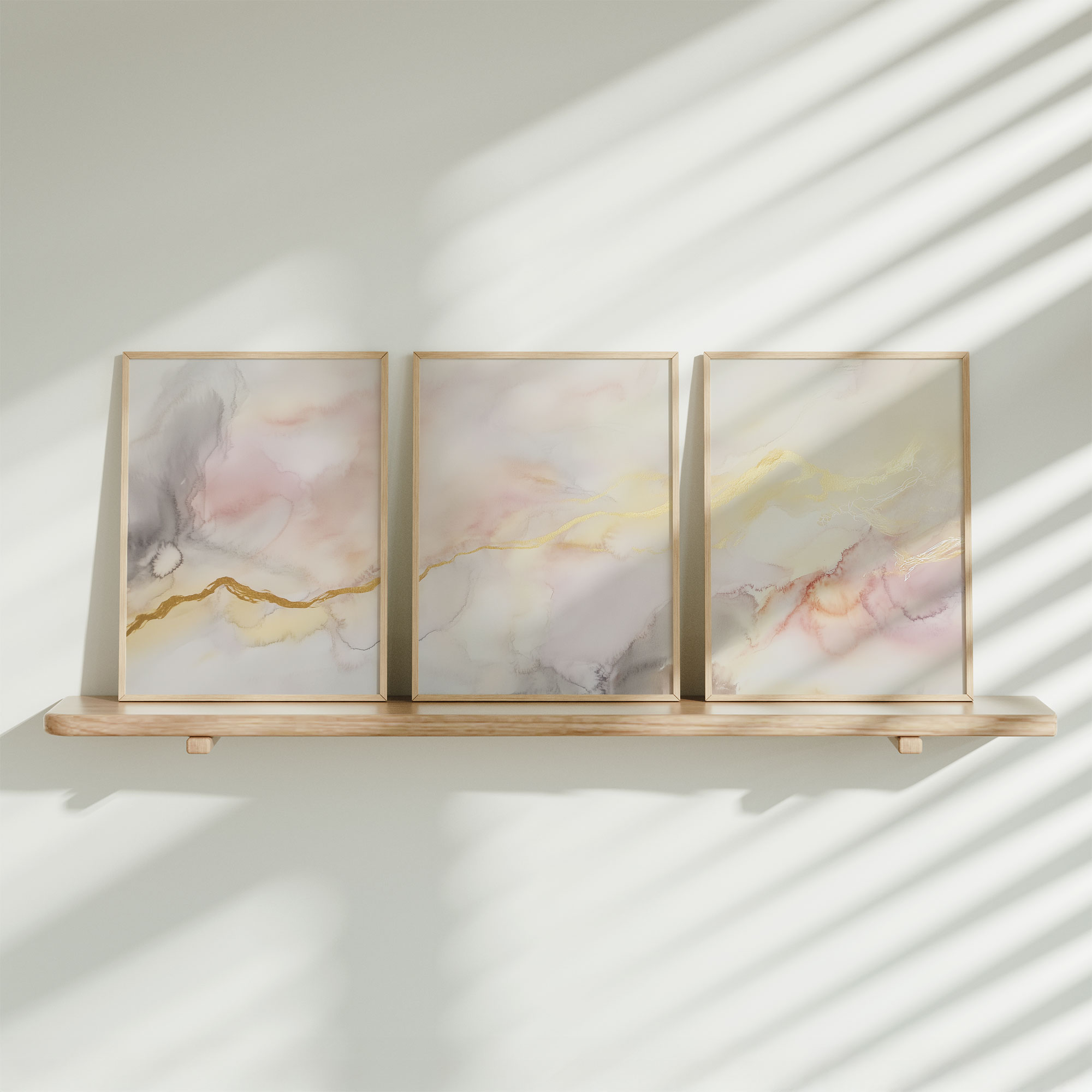 Terug naar collectie / Kinderkamer posters / Pastel Dromen: Speelse Abstracte Wanddecoratie in Wit en Goud