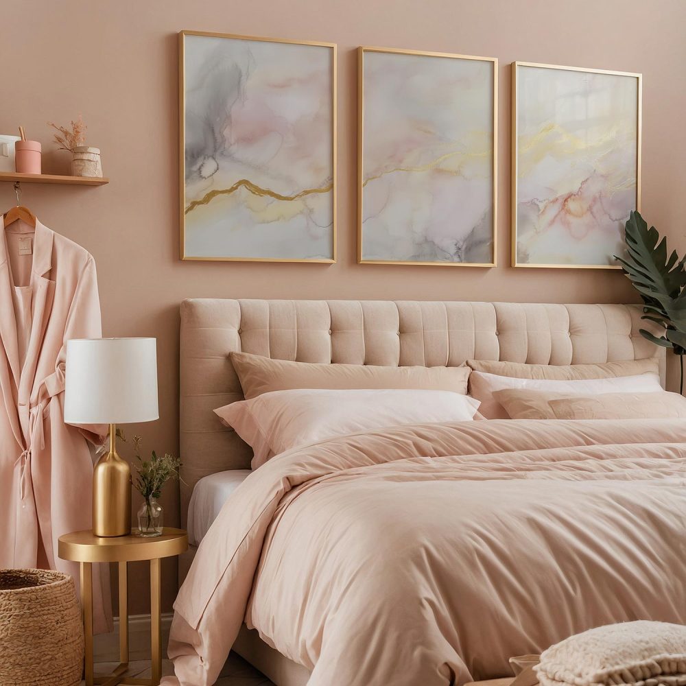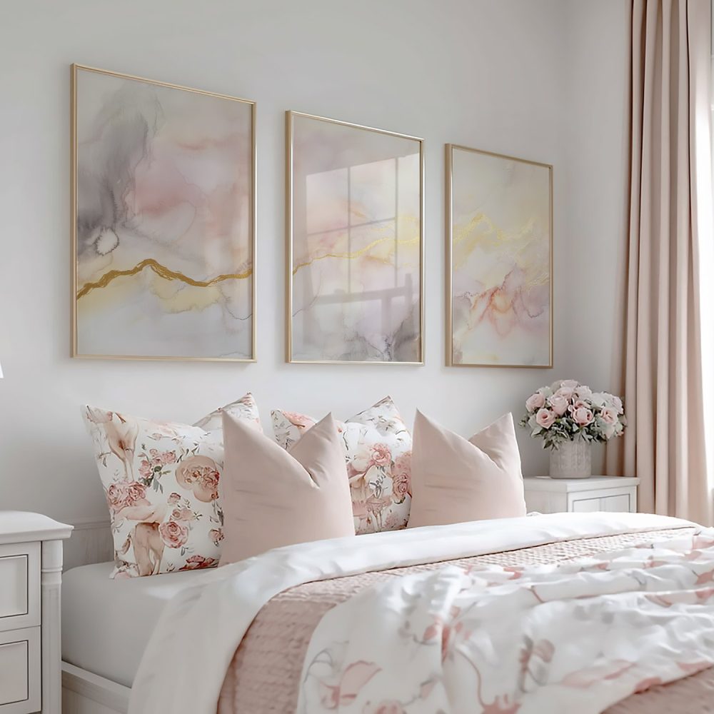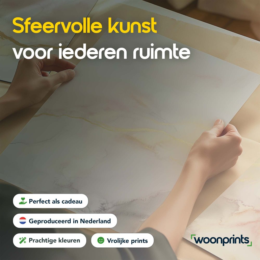 Pastel Dromen: Speelse Abstracte Wanddecoratie in Wit en Goud