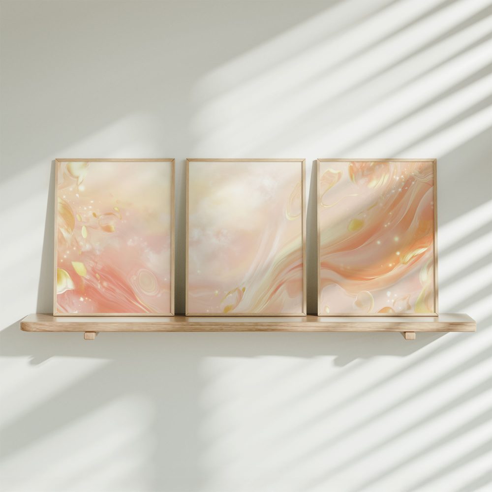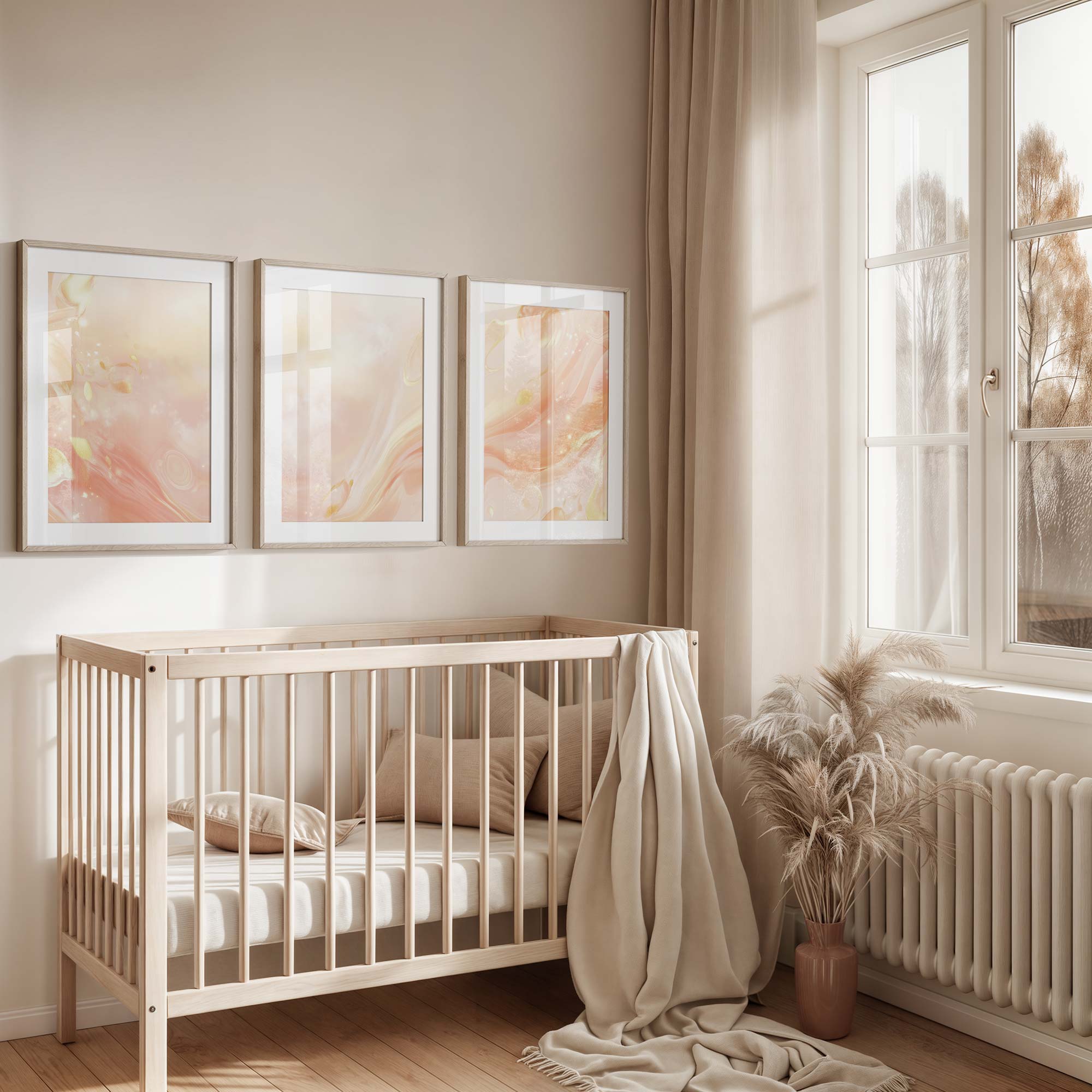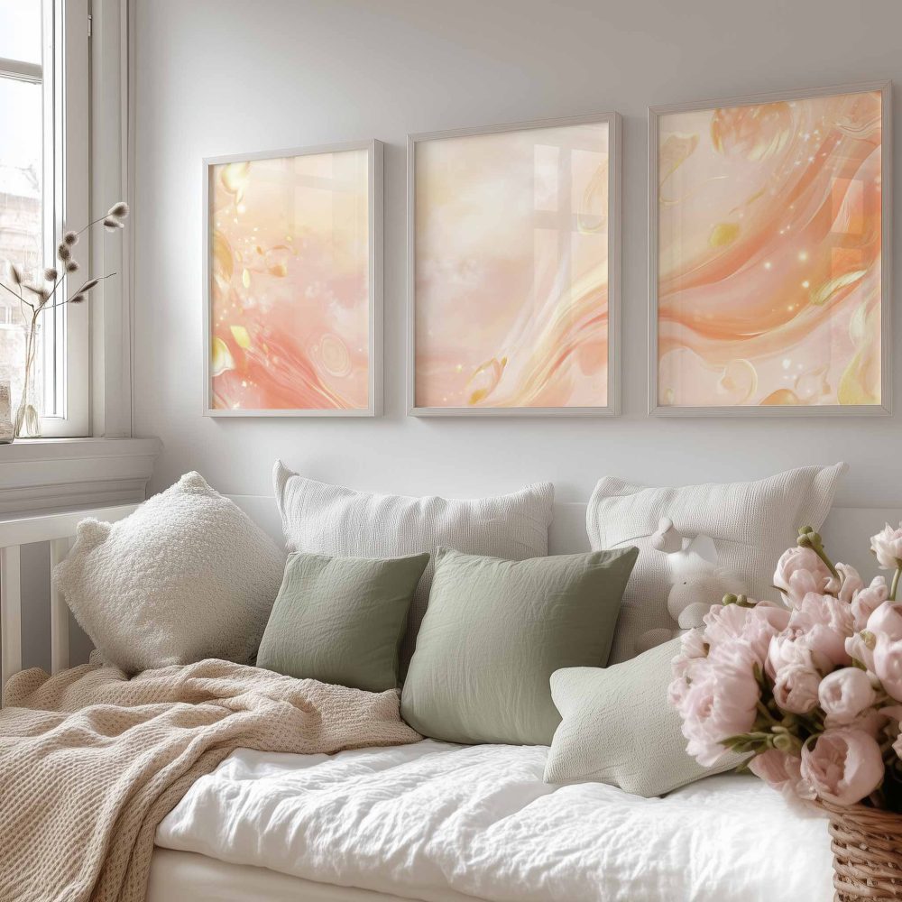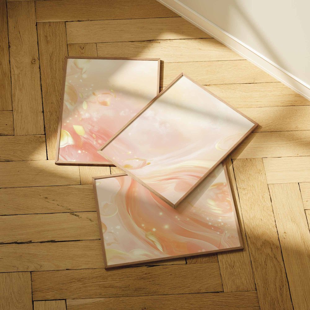 Terug naar collectie / Kinderkamer posters / Pastel Dromen: Speelse Swirls in Roze, Oranje & Geel