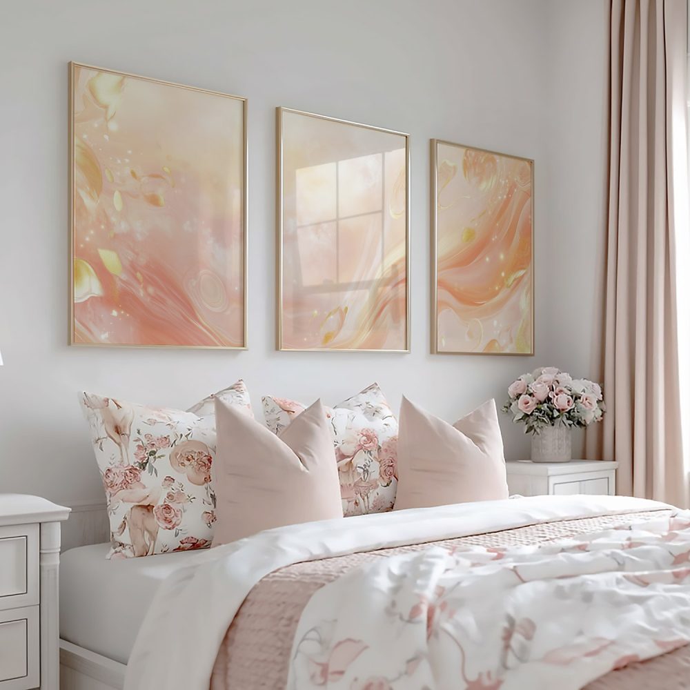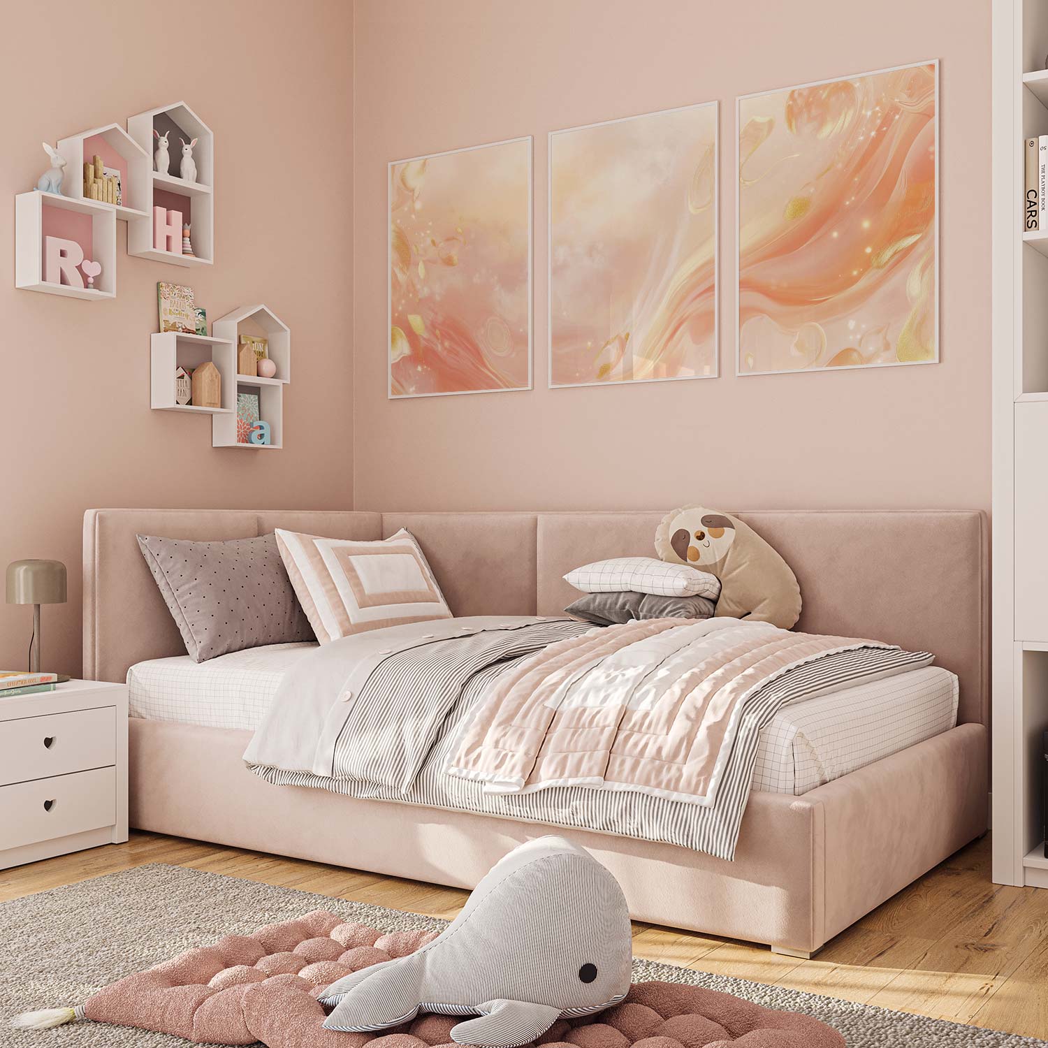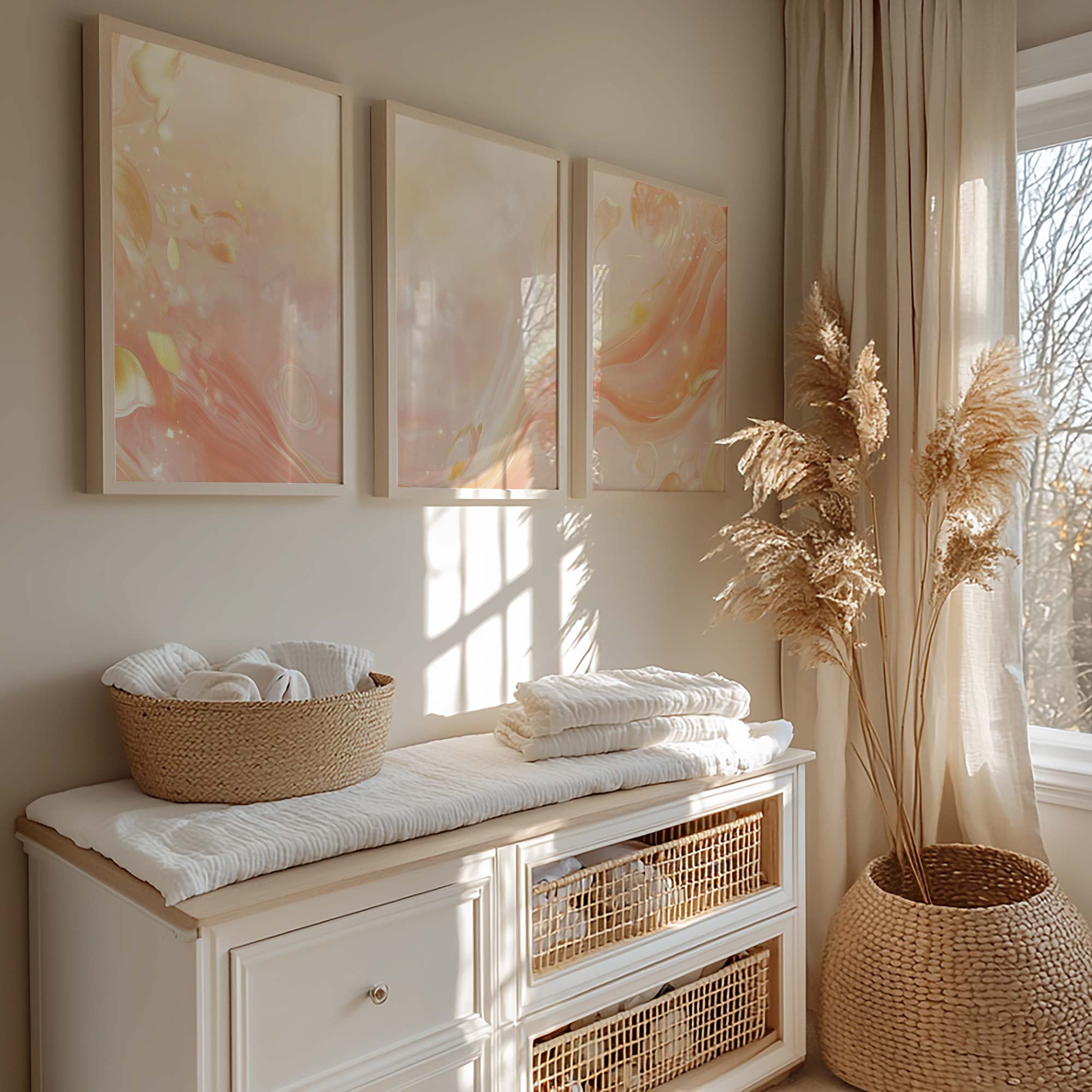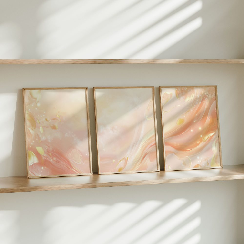 Terug naar collectie / Kinderkamer posters / Pastel Dromen: Speelse Swirls in Roze, Oranje & Geel
